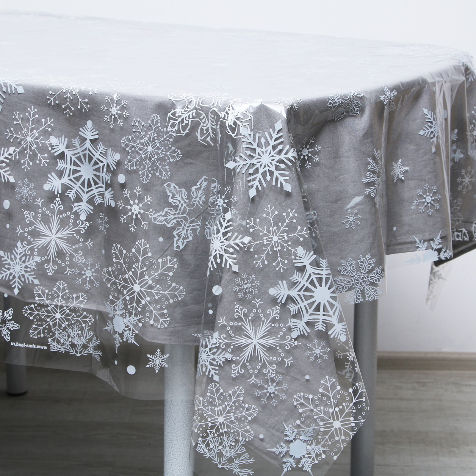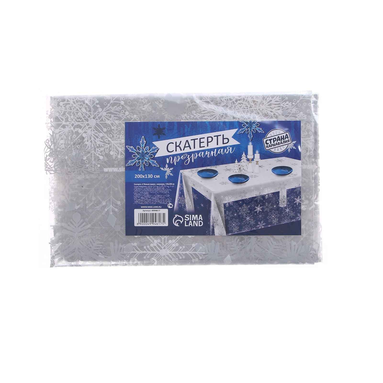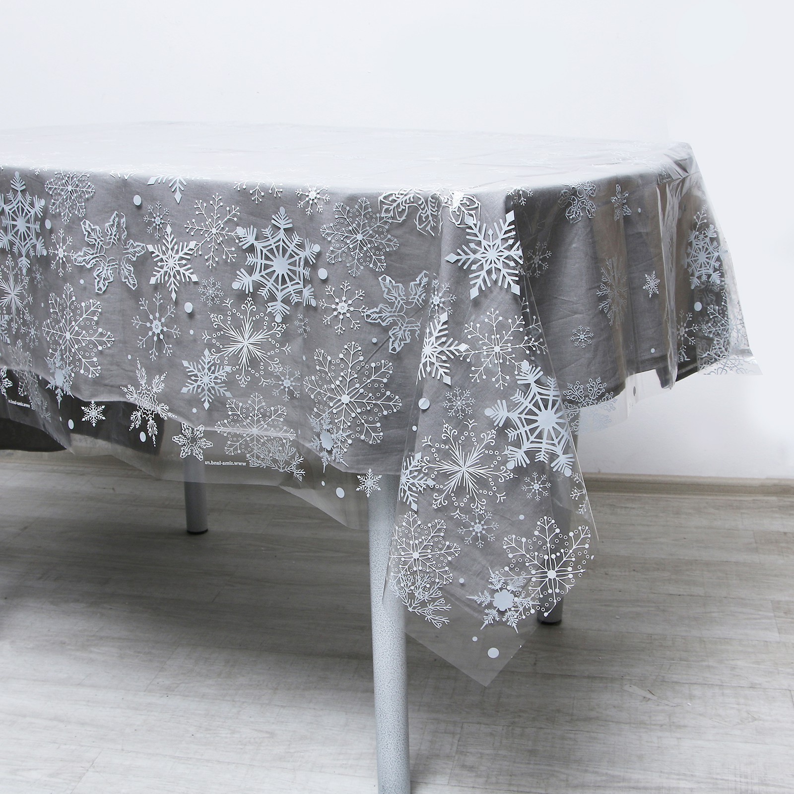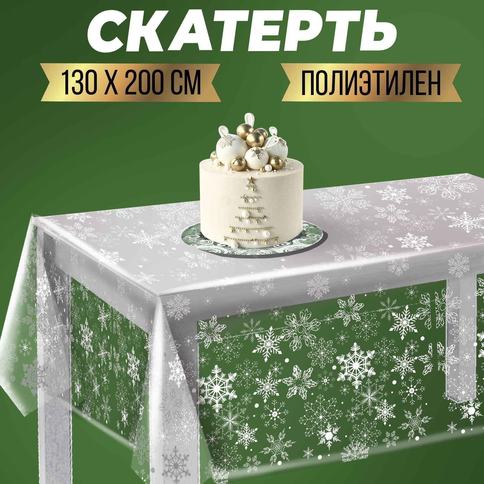 Новогодняя скатерть одноразовая «с новым годом», снежинки, 130х200 см