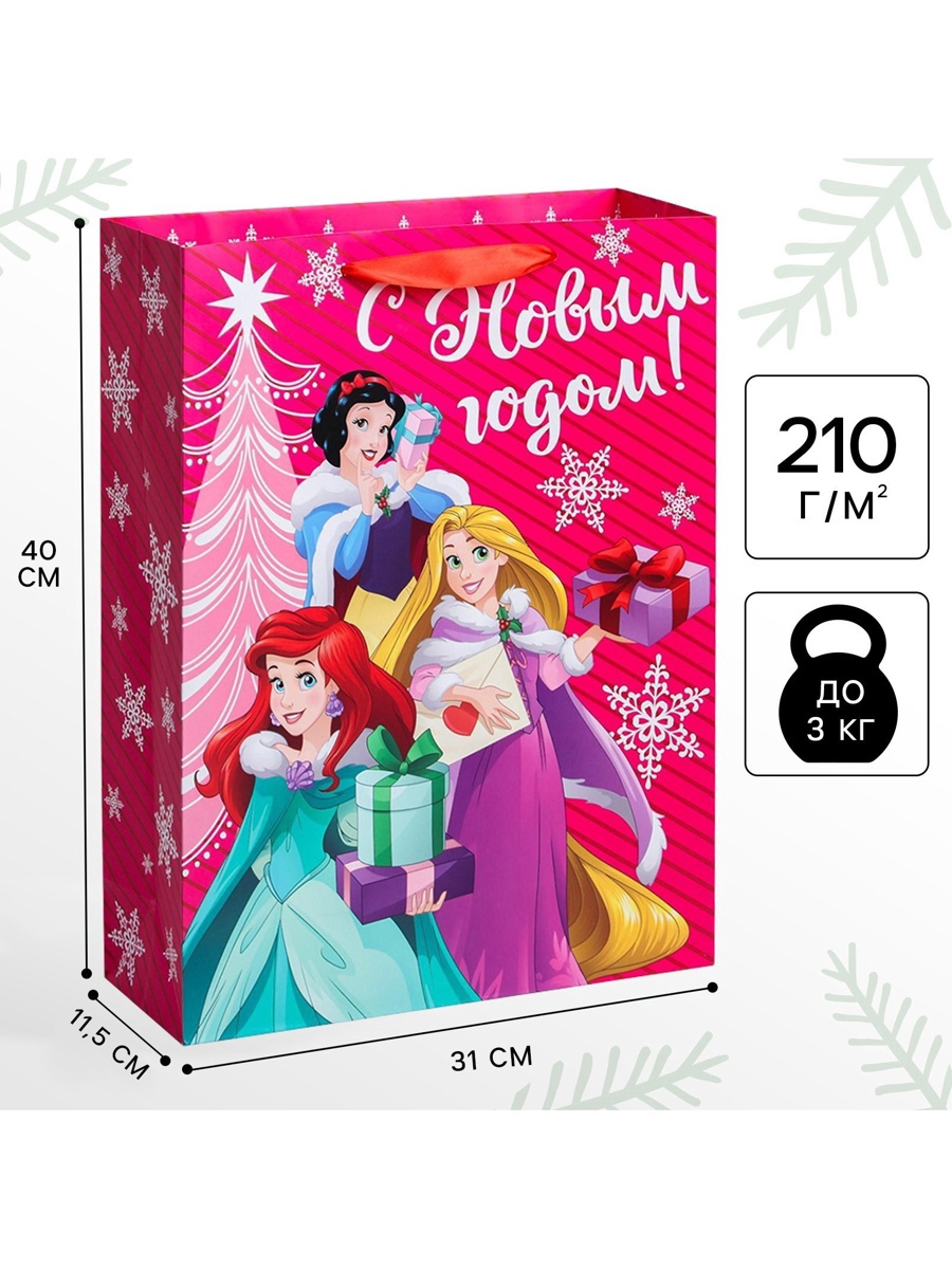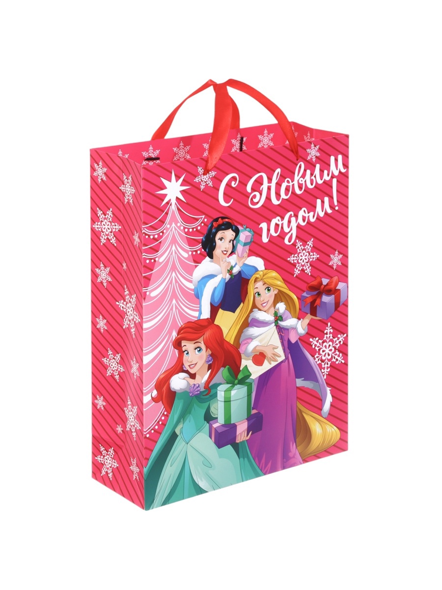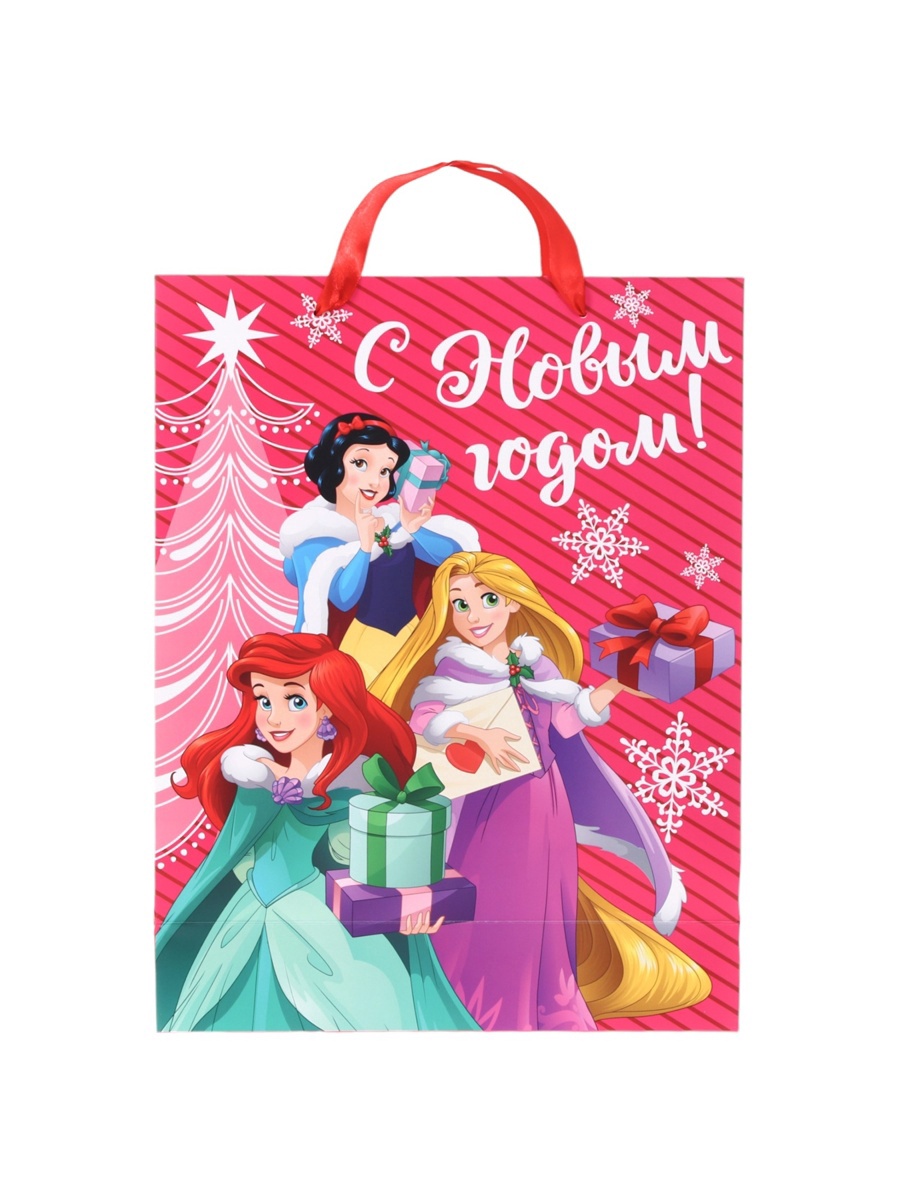 Пакет подарочный новогодний «с новым годом!», 31 х 40 х 11.5 см, упаковка, принцессы. Цвет:Розовый|Для кого:Для девочки|Плотность, г/м :250|Размер, см:31 х 40|Допустимый вес вложения, г:3000|Тематика:Детская|Тематика:Мультфильмы|Тематика:Новогодняя|Символ года:Нет|Тематика праздника:Новый год|Материал:Картон|Отделка пакета:Ламинация|Расширение:Боковая складка|Вид ручки:Ручка-лента|Особенности:Без особенностей|Страна:Китай  развернуть описание ▼