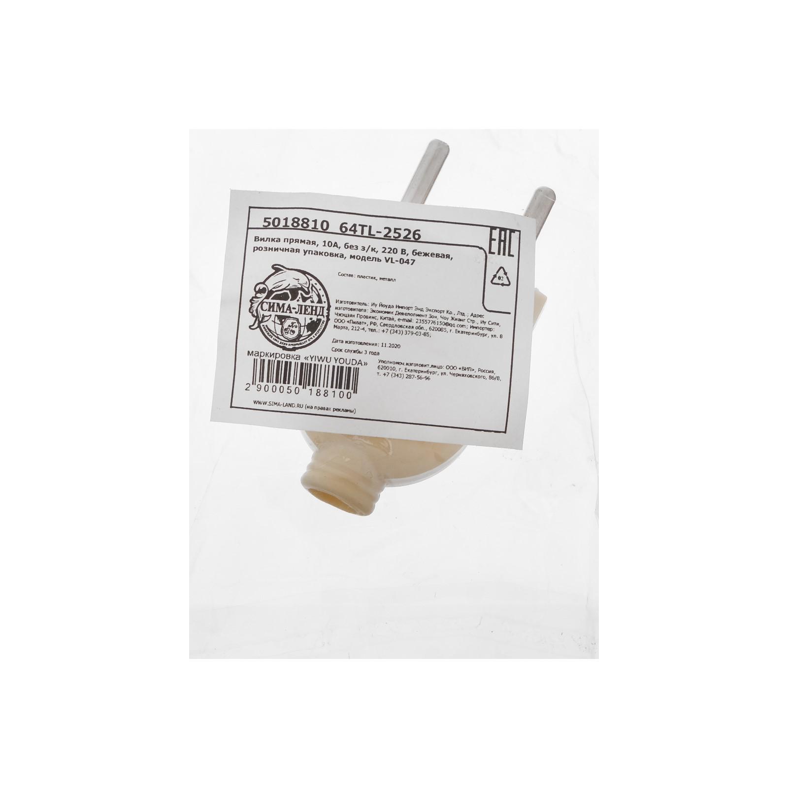 Вилка прямая, 10 а, без заземления, 220 в, бежевая