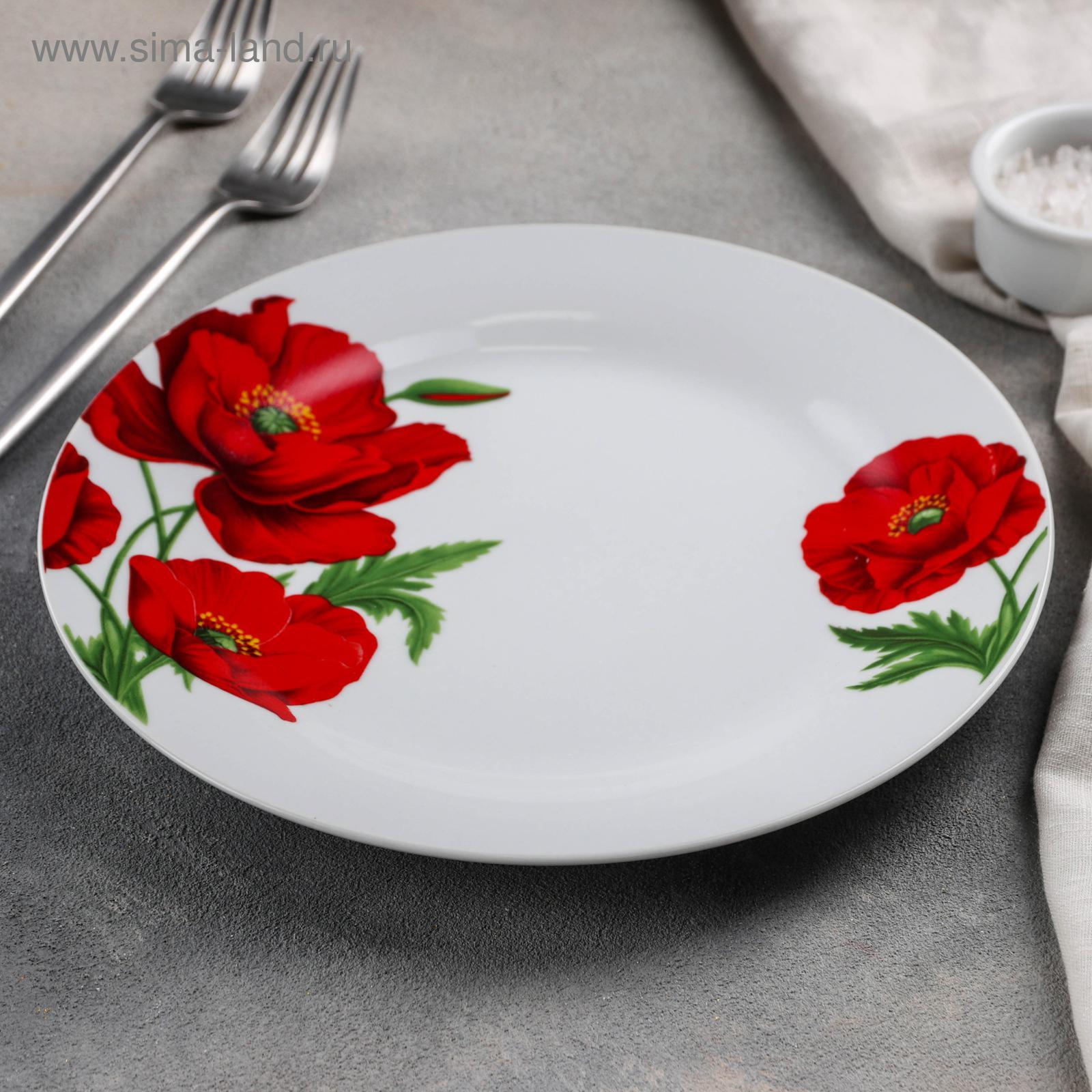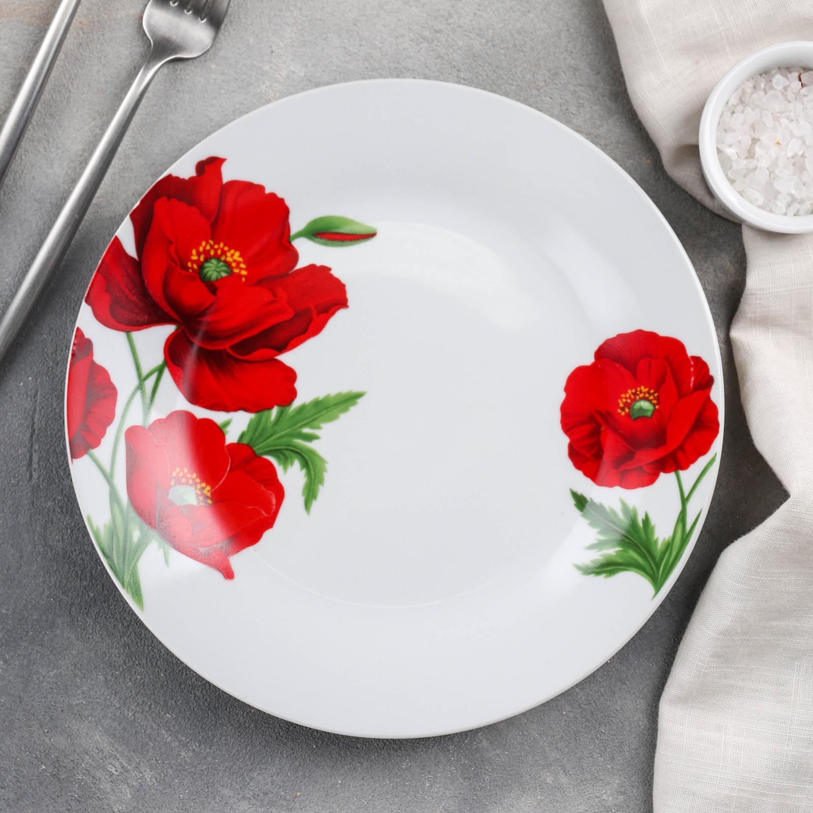 Тарелка керамическая обеденная доляна «маки», D=23 см, цвет белый