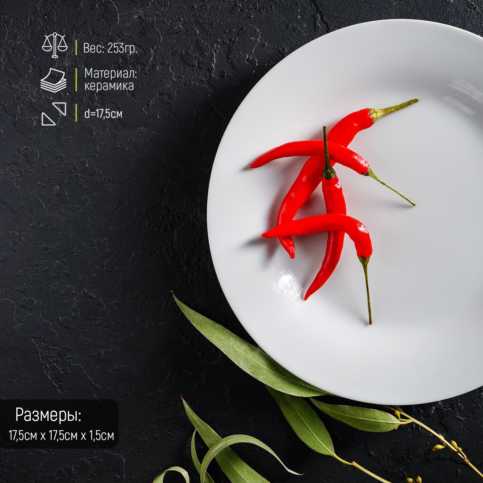 Тарелка керамическая пирожковая доляна «моника», D=17,5 см, цвет белый