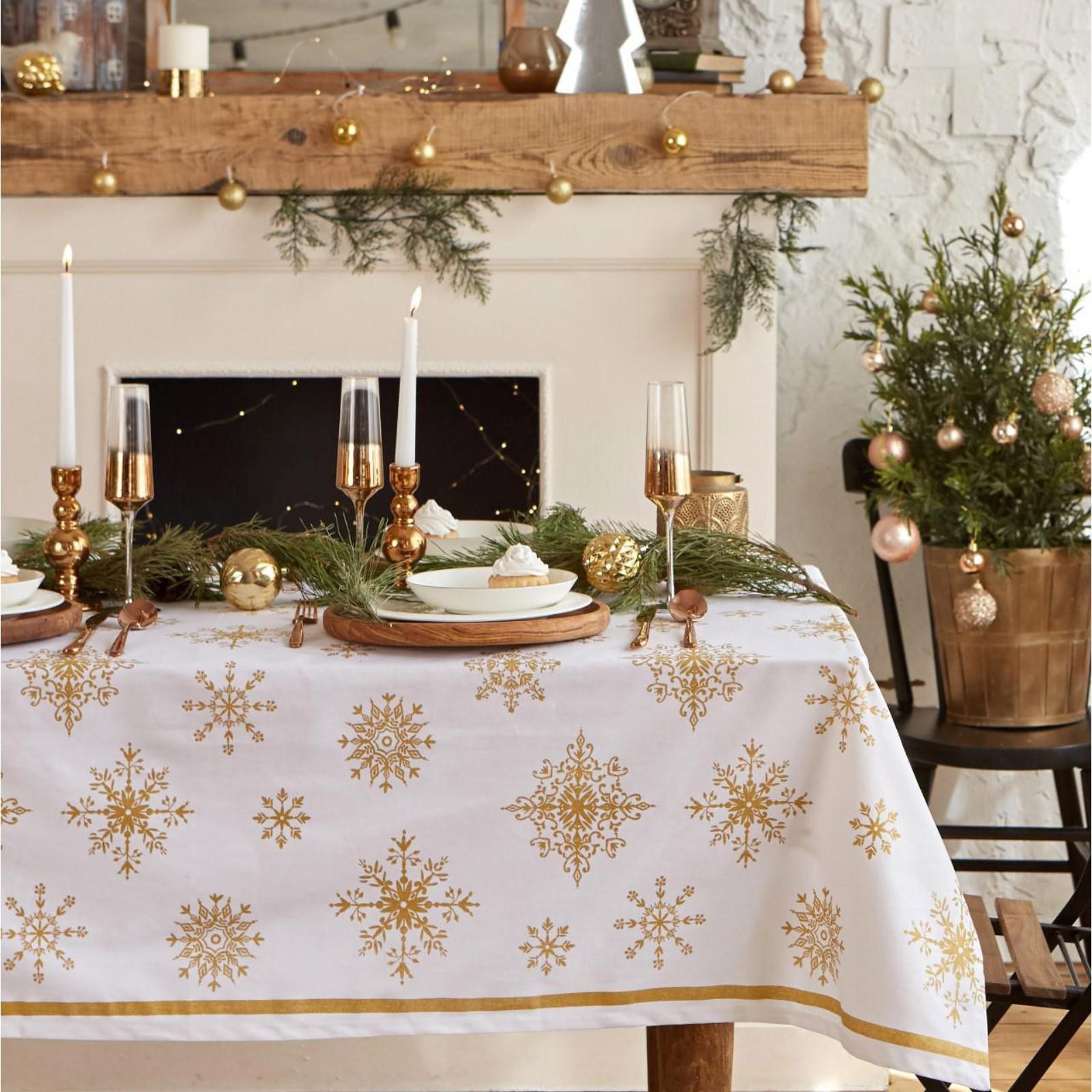 Скатерть "этель" золотые снежинки 149х250+/- 3см, 100% хлопок, 190 г/м2