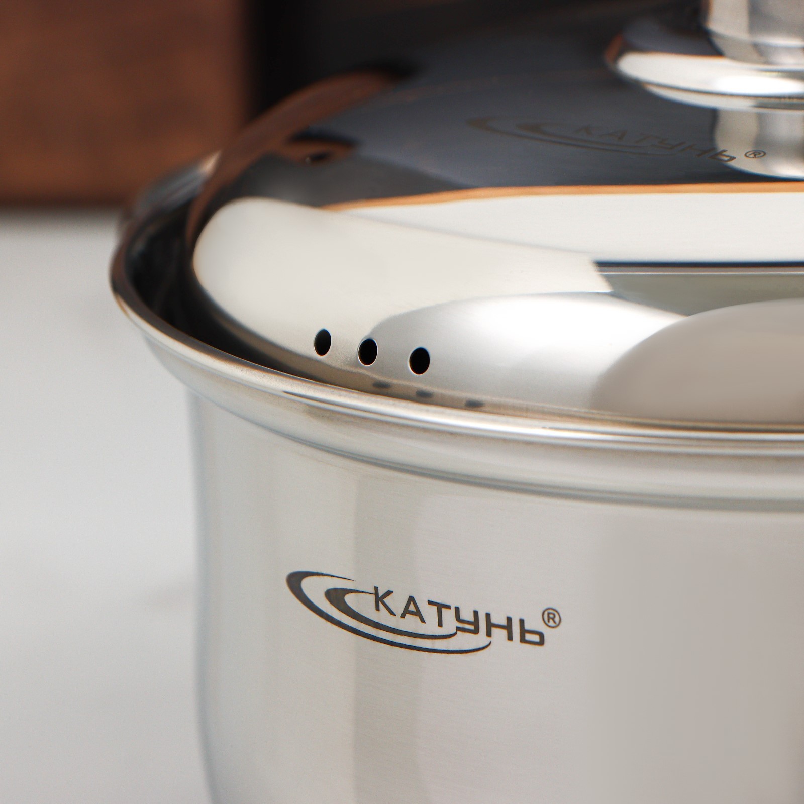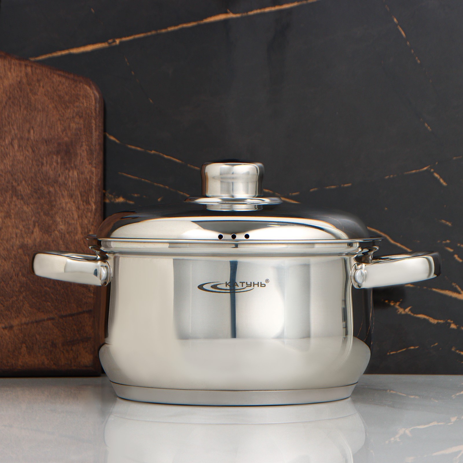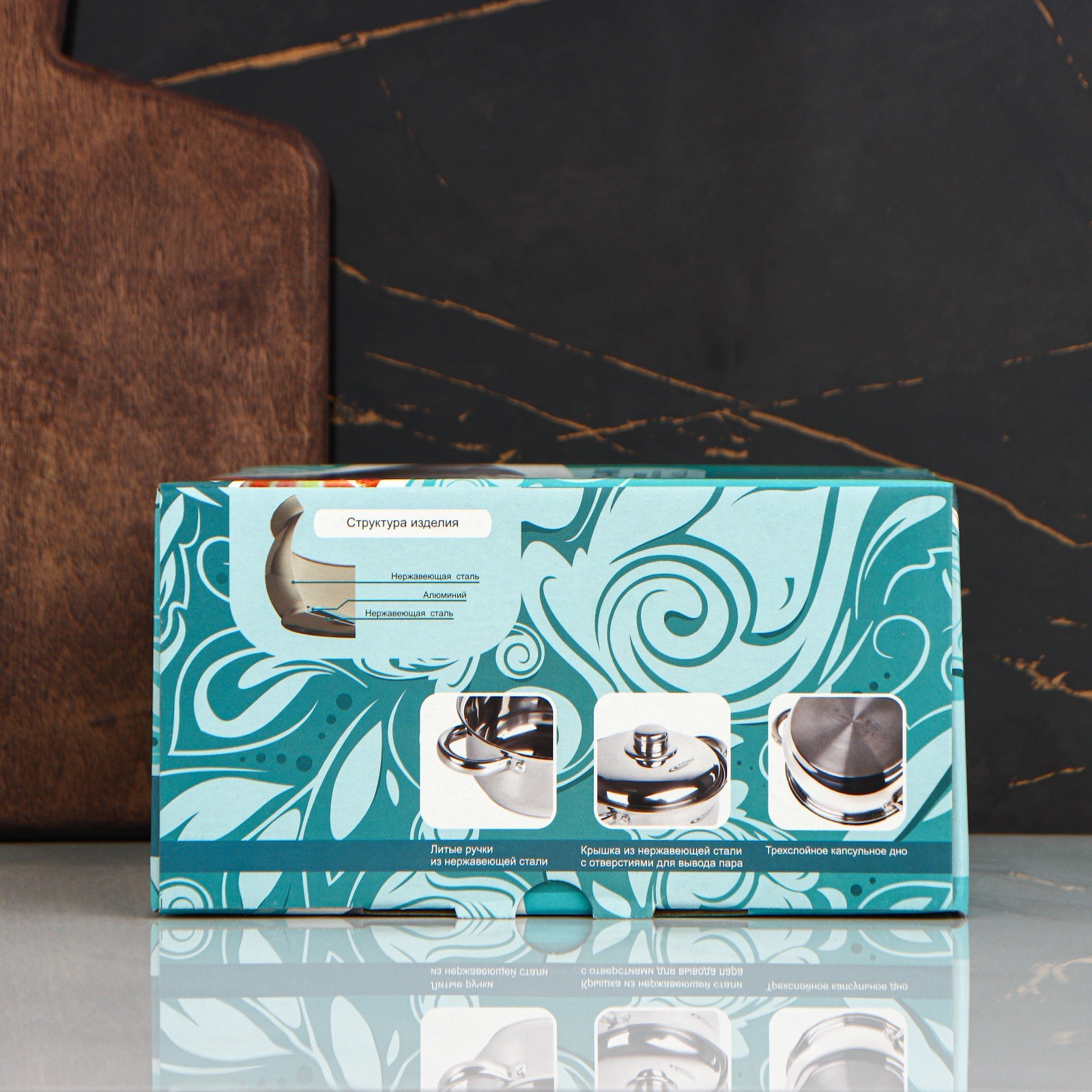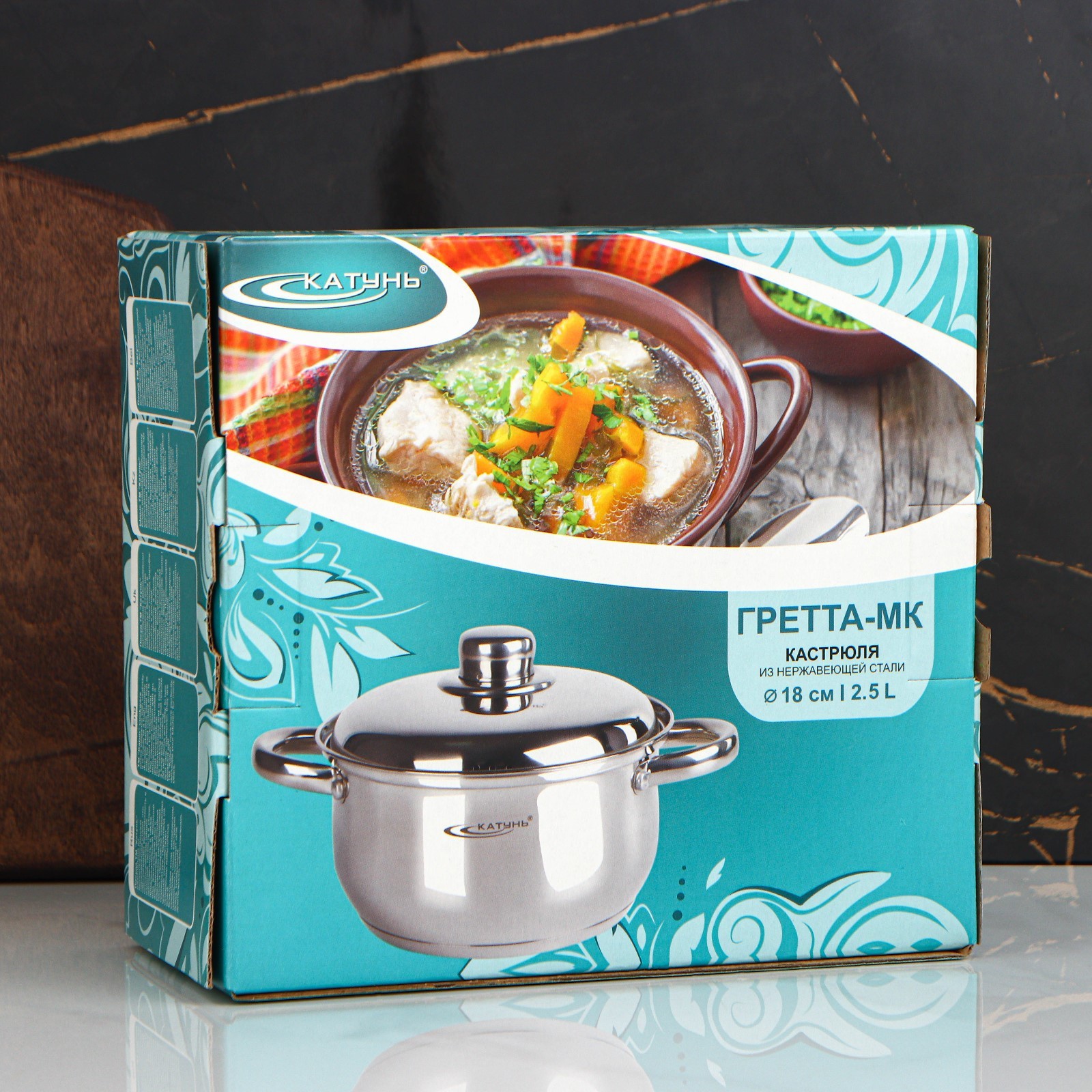 Кастрюля «гретта», 2,5 л, D=18 см, капсульное дно, металлическая крышка, индукция