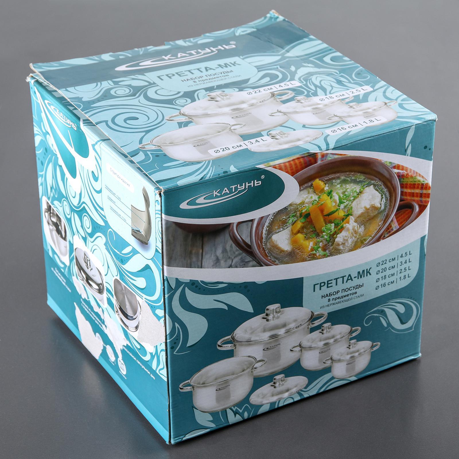 Набор кастрюль «гретта», 4 предмета: 1,8 л, 2,5 л, 3,4 л, 4,5 л, металлические крышки, индукция