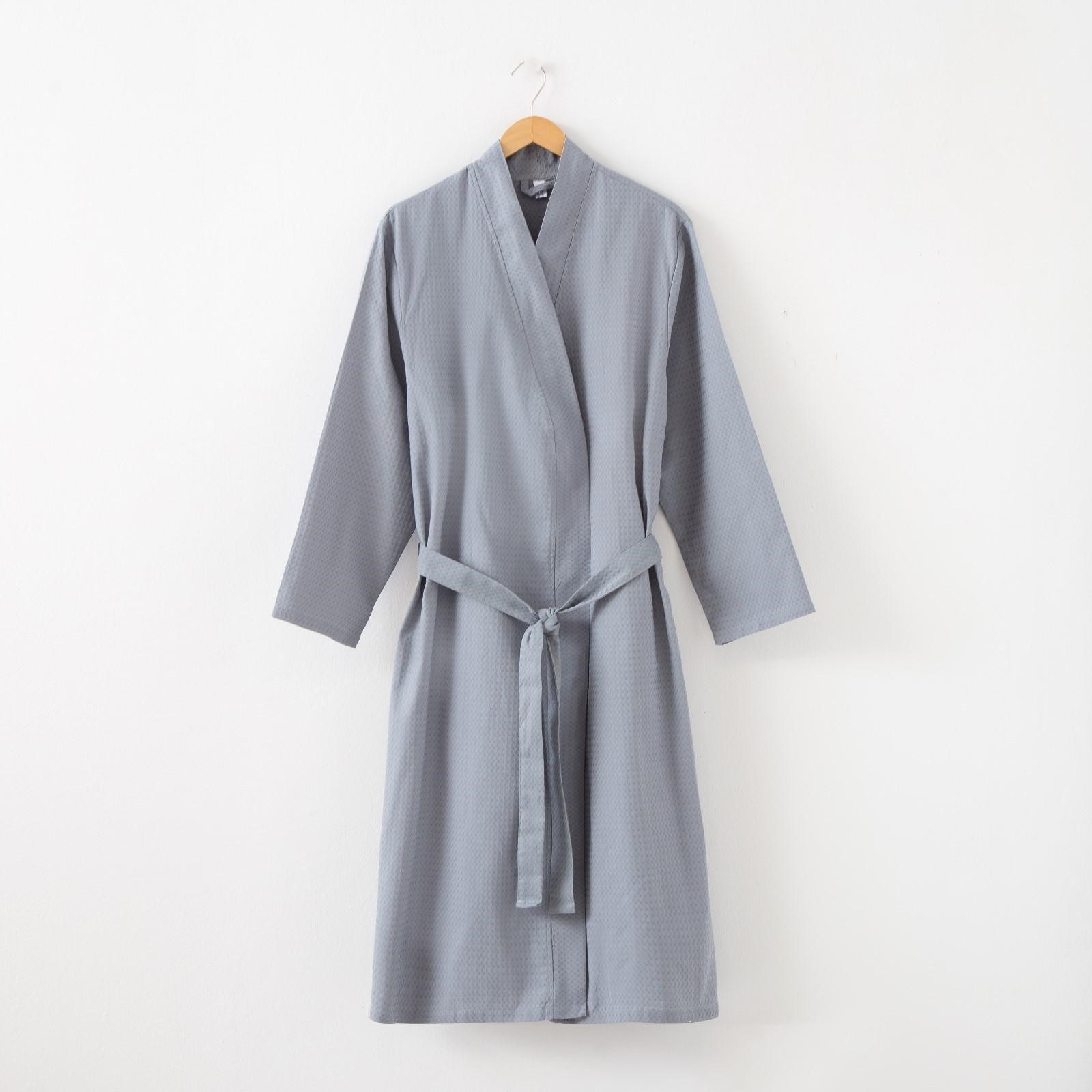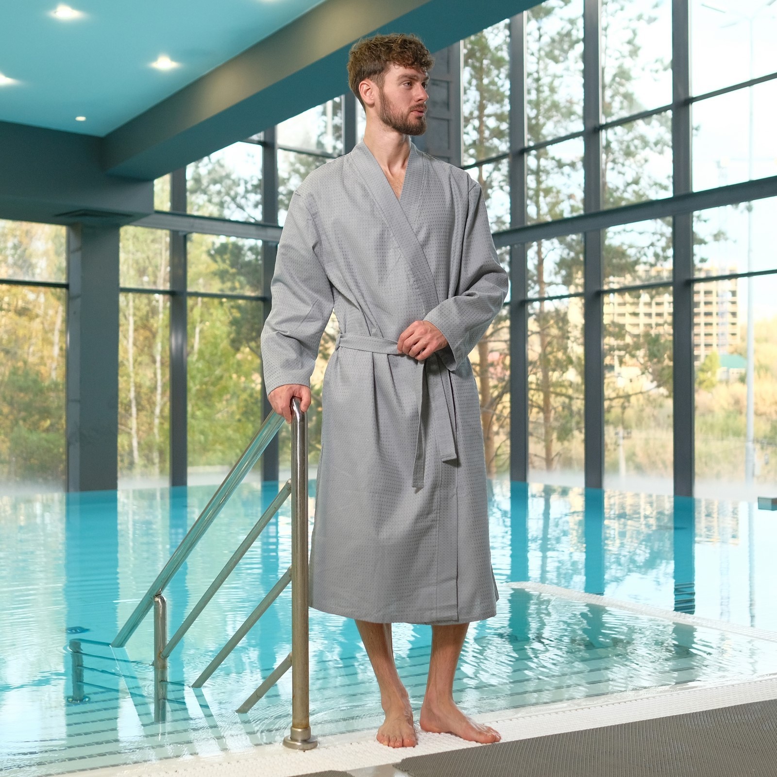 Халат вафельный мужской удлинённый экономь и я размер 46-48, цвет серый, 100% хлопок, 200г/м2