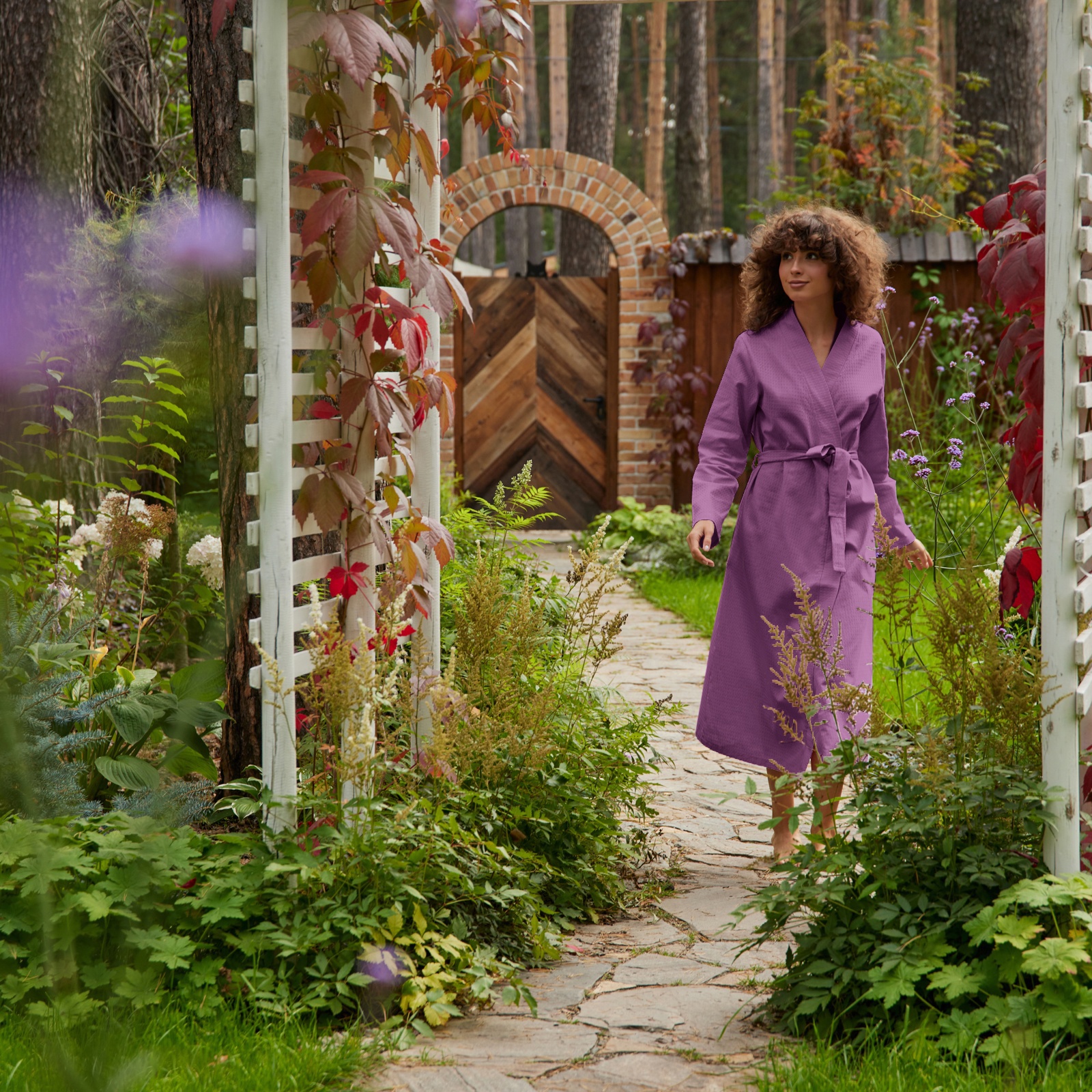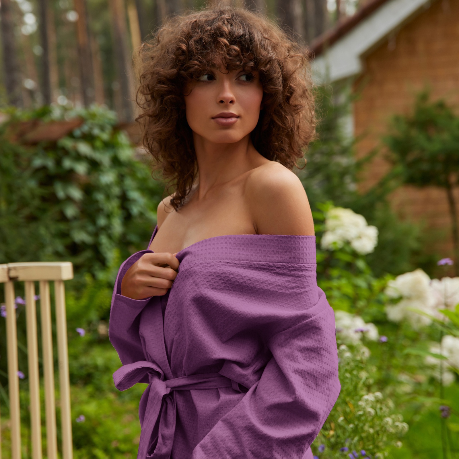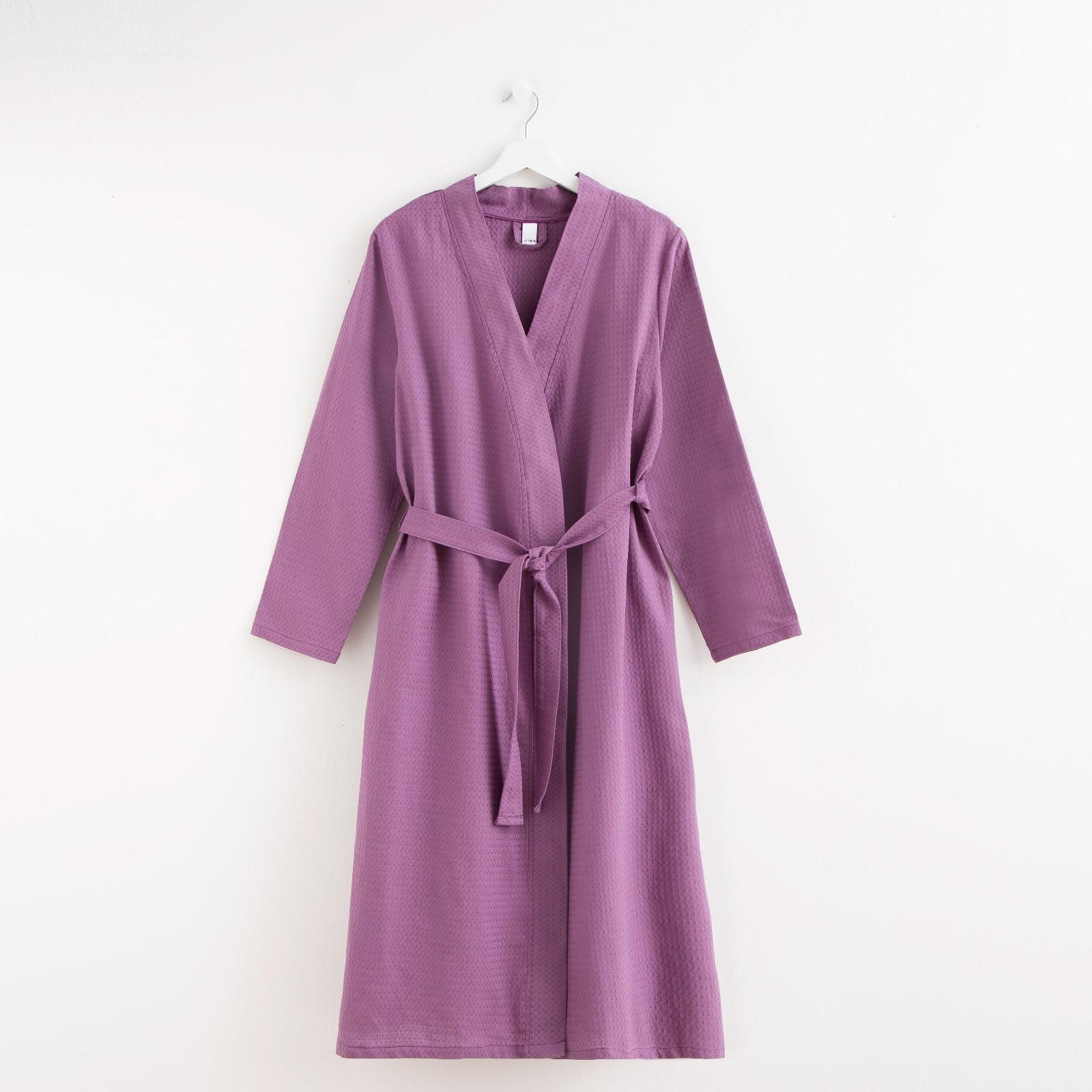 Халат вафельный женский удлинённый экономь и я размер 42-44, цвет лаванда, 100% хлопок, 200г/м2