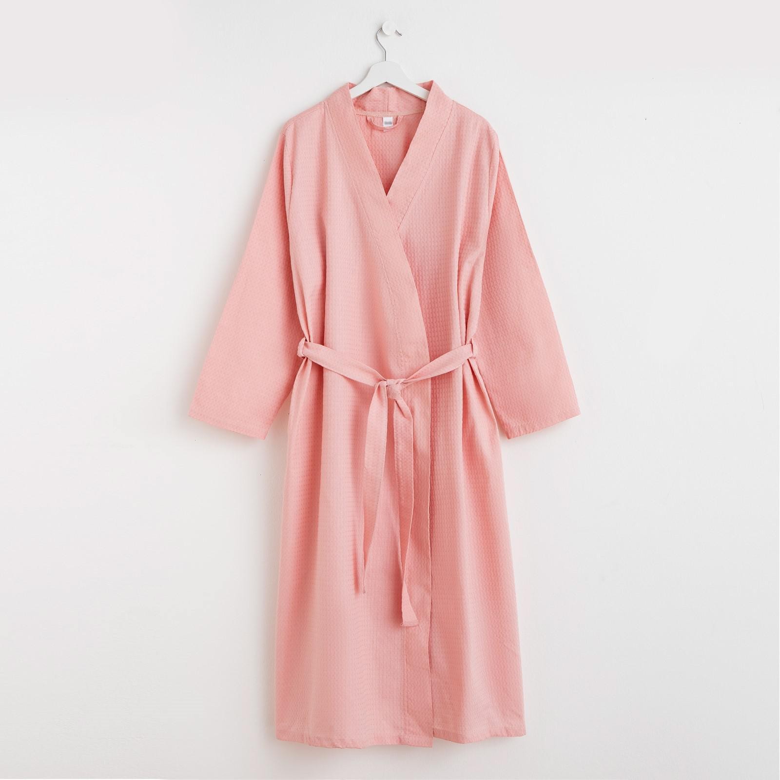 Халат вафельный женский удлинённый экономь и я размер 42-44, цвет пудра, 100% хлопок, 200г/м2
