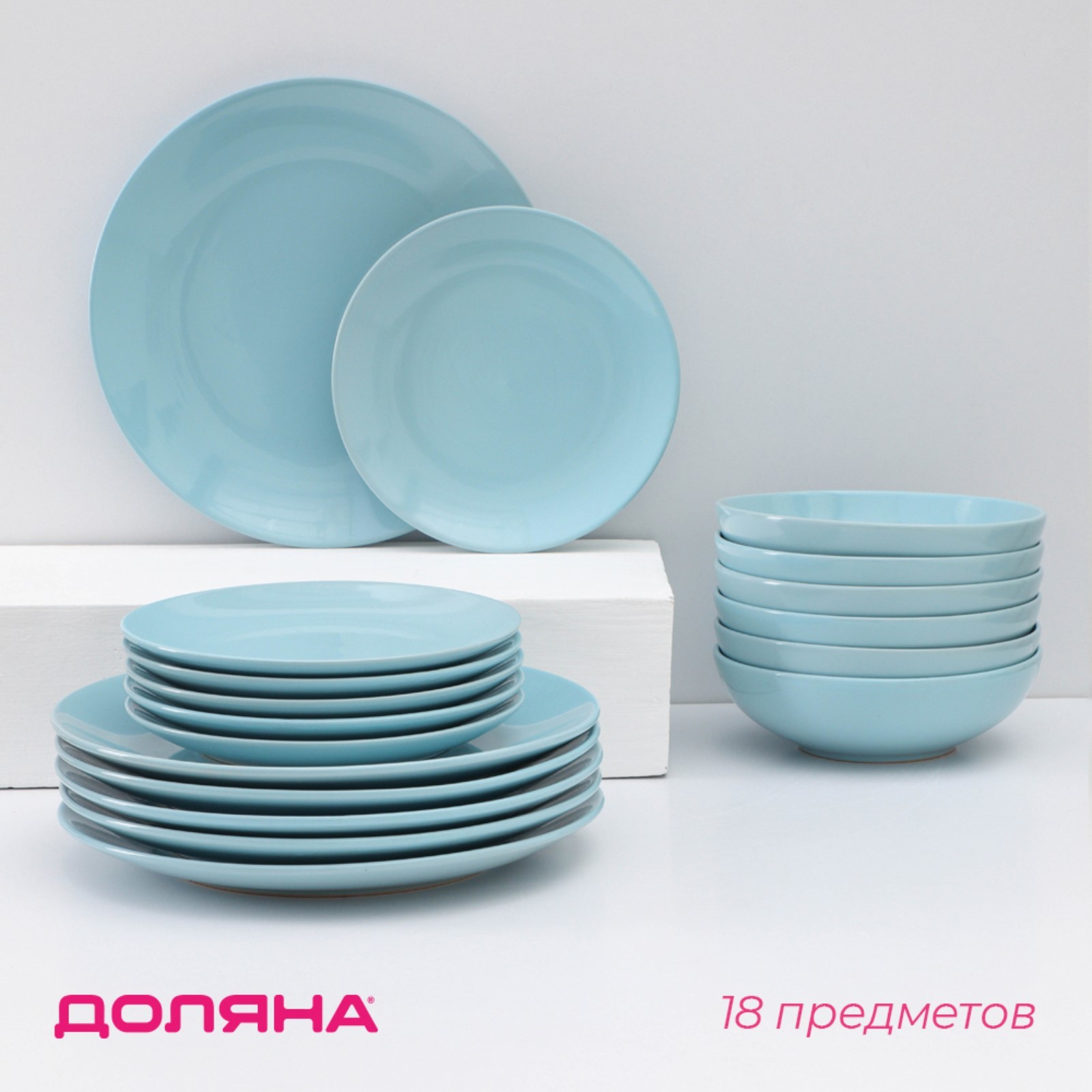Набор тарелок керамических доляна «пастель», 18 предметов: 6 тарелок D=19 см, 6 тарелок D=27 см, 6 мисок D=19 см, цвет голубой
