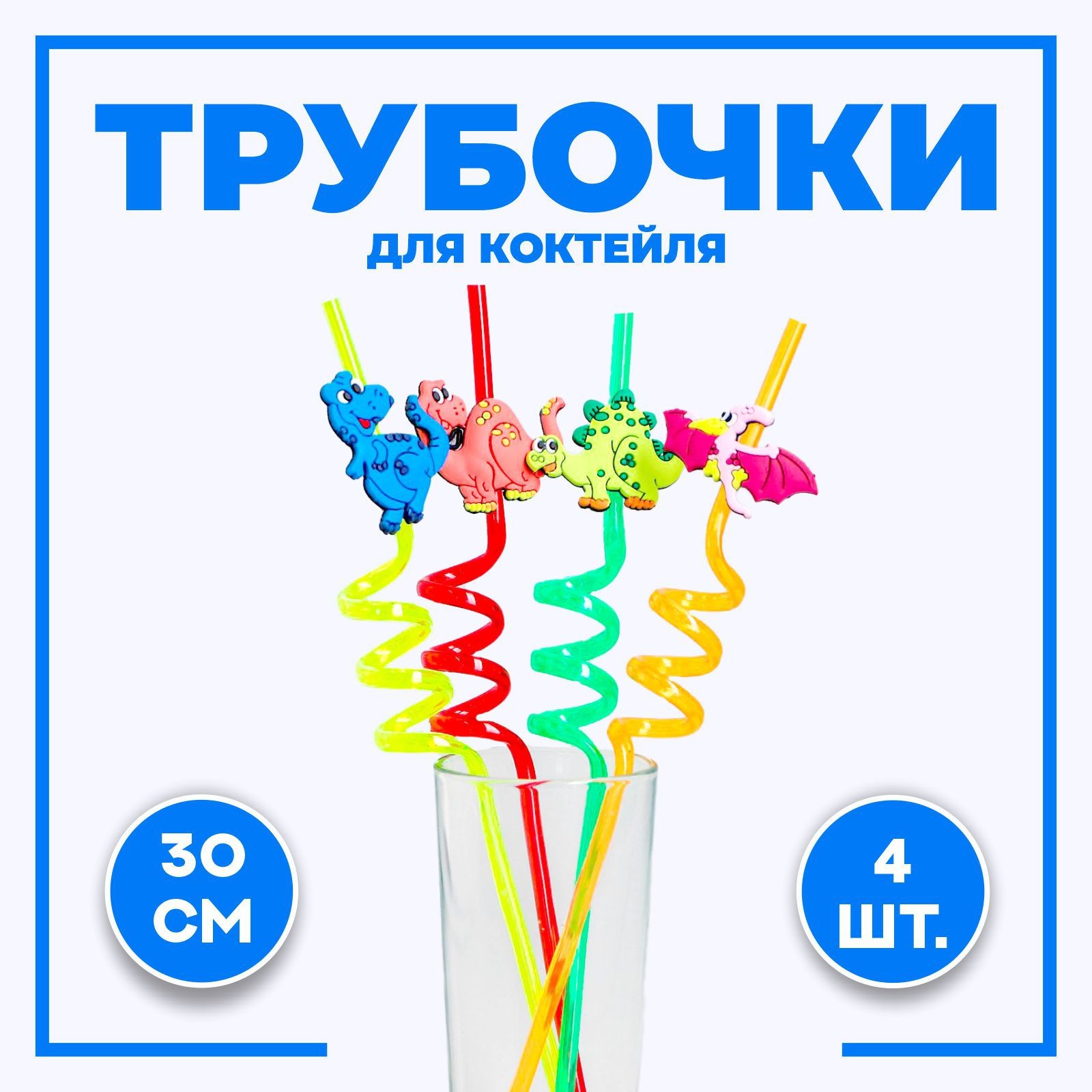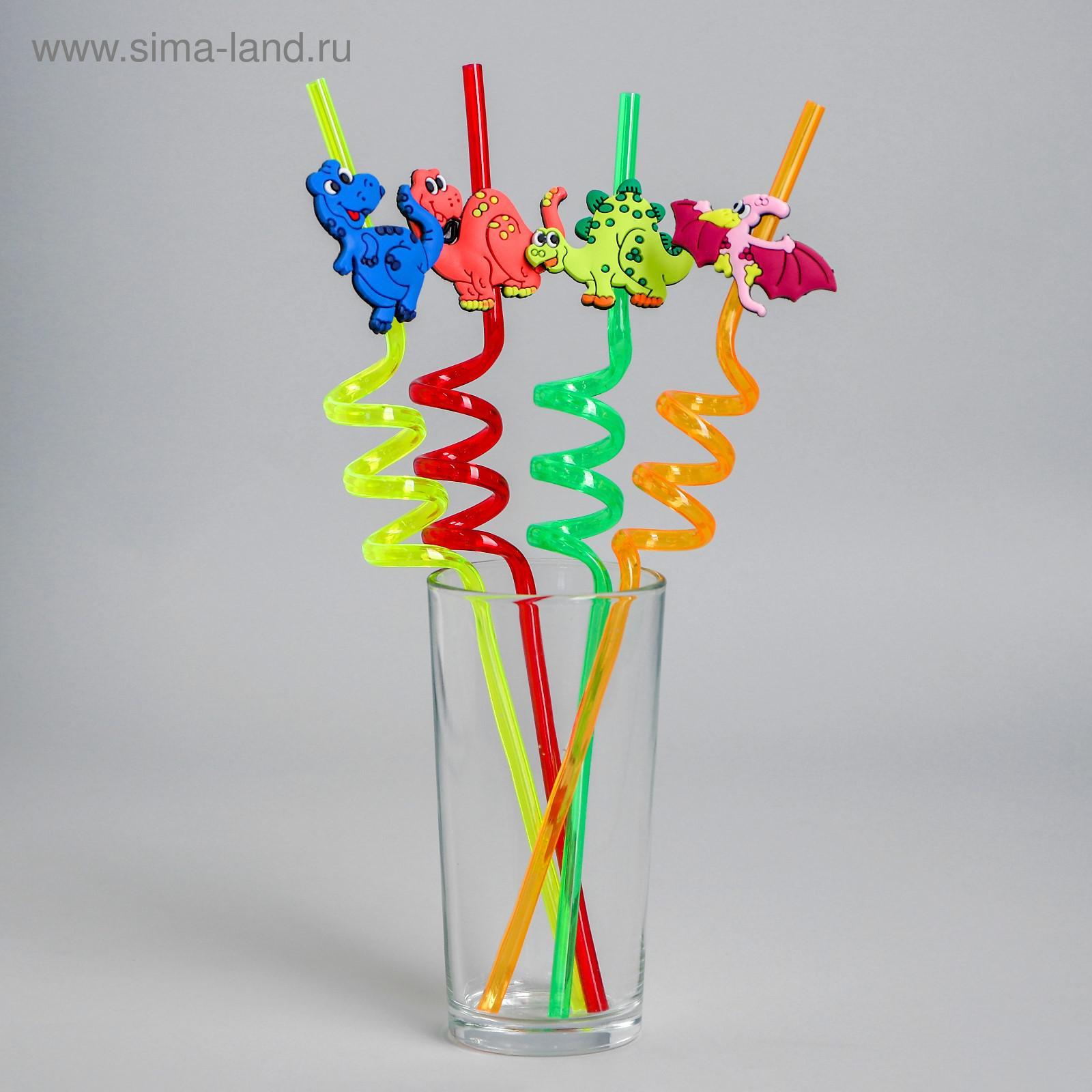Трубочка из пластика «динозавр», набор 4 шт., микс