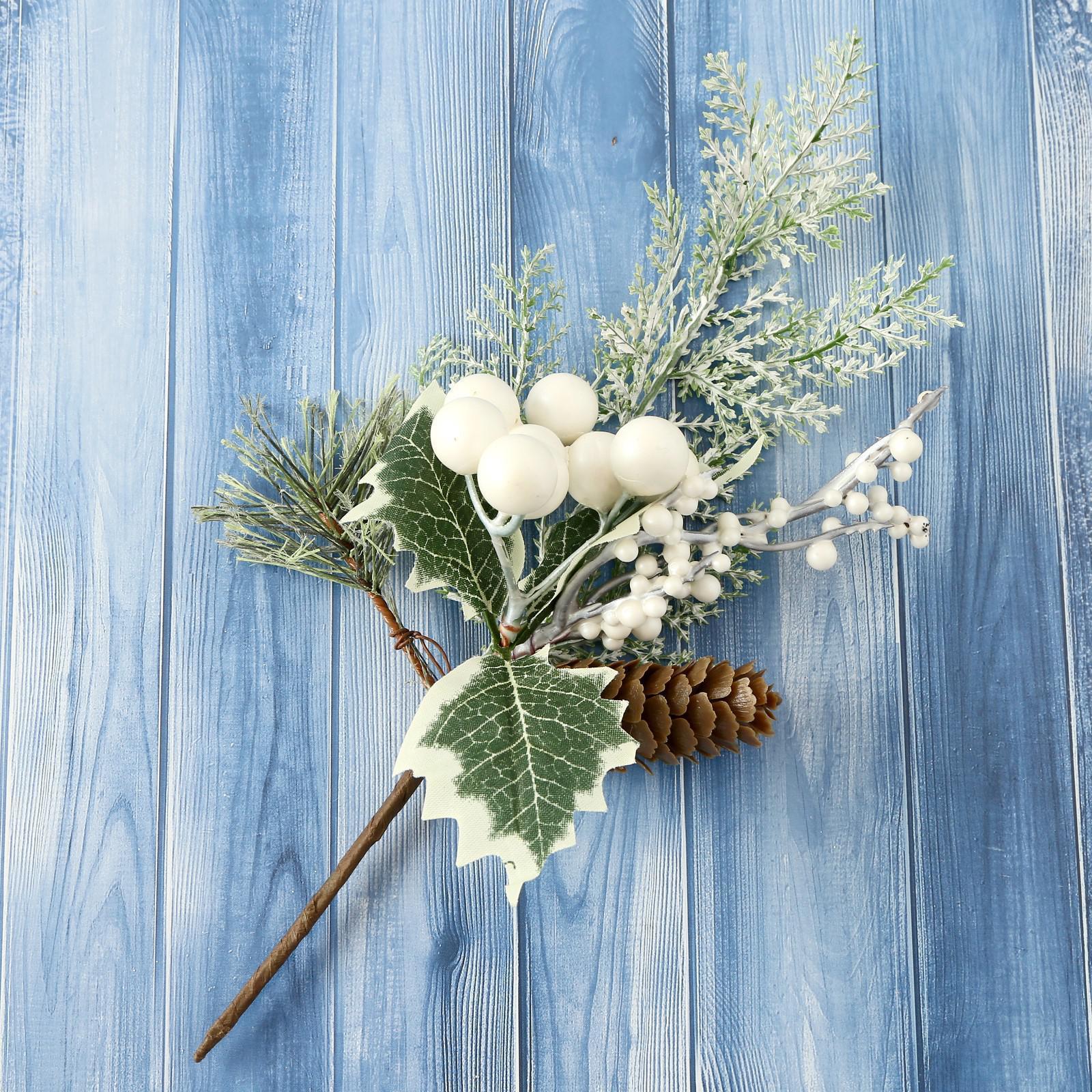 Новогодняя ветка декоративная «зимнее волшебство. очарование», пластик, шишка, шарики, зелень, 22 см Новогодняя ветка декоративная «зимнее волшебство. очарование», пластик, шишка, шарики, зелень, 22 см Новогодняя ветка декоративная «зимнее волшебство. очарование», пластик, шишка, шарики, зелень, 22 см
