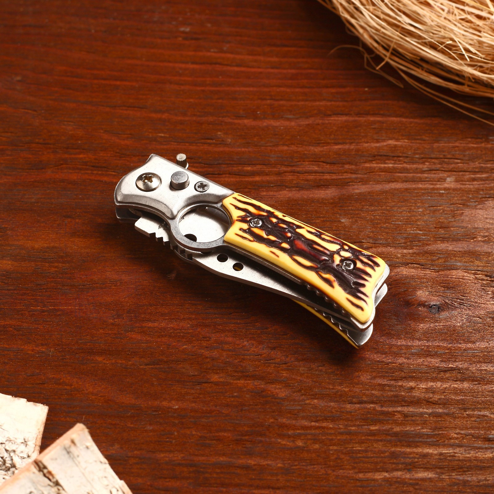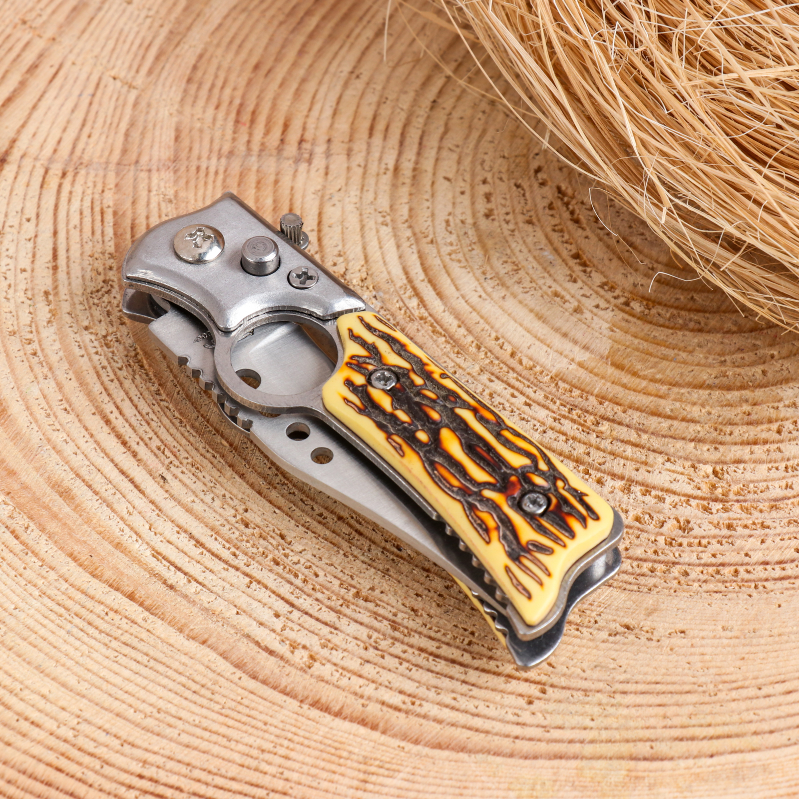 Нож складной "ружье" 15см, клинок 66мм/1,4мм. Длина лезвия, см: 6.5 Твёрдость лезвия, HRC: 56 Материал ручки: Пластик Фиксатор: Да Сталь: 3CR13 Тип ножа: Складной автоматический  развернуть описание ▼