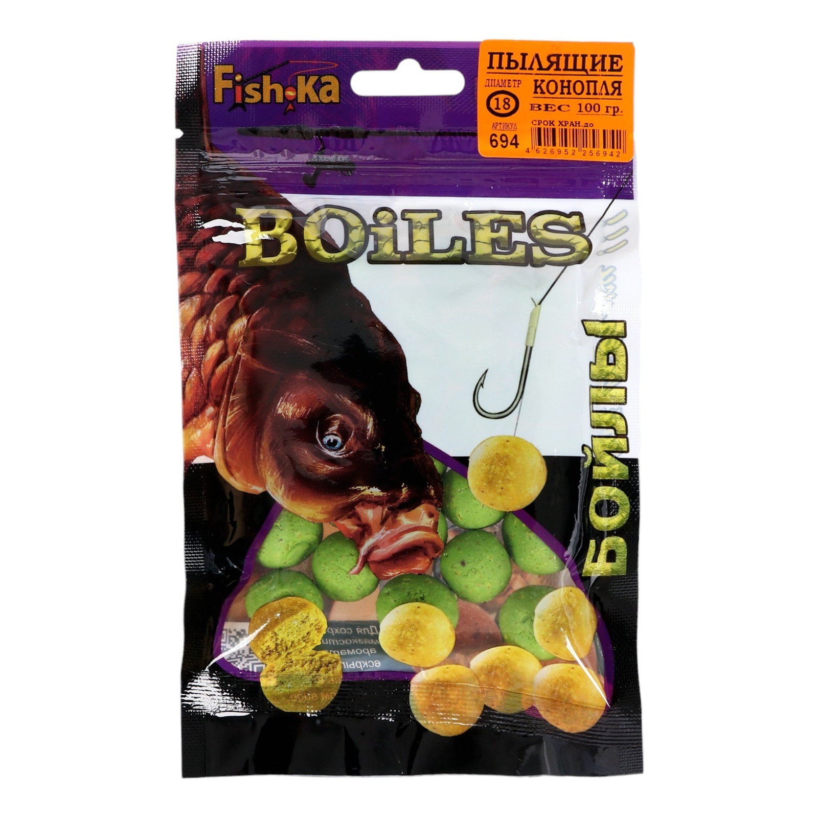 Бойлы fish.ka пылящие, конопля, 18 мм, 100 г. Рыболовная насадка рекомендуется для ловли карповых видов рыб. Бойлы изготавливаются из различных компонентов, включающих измельчённые зёрна злаковых, семенных культур, муки разных видов в том числе рыбной, ароматизаторы, красители, связующие вещества с добавлением патоки. Пылящие бойлы больше работают по привлечению и обеспечению «фона». Они долго размываются в воде, отдавая слой за слоем вкусовую многокомпонентную составляющую бойла. parts count: 0 Вес, г/Объём, мл: 100 Сезон: Всесезонный Вид: Гранулированная Температурное ограничение: Нет Тип насадки: Бойлы  развернуть описание ▼