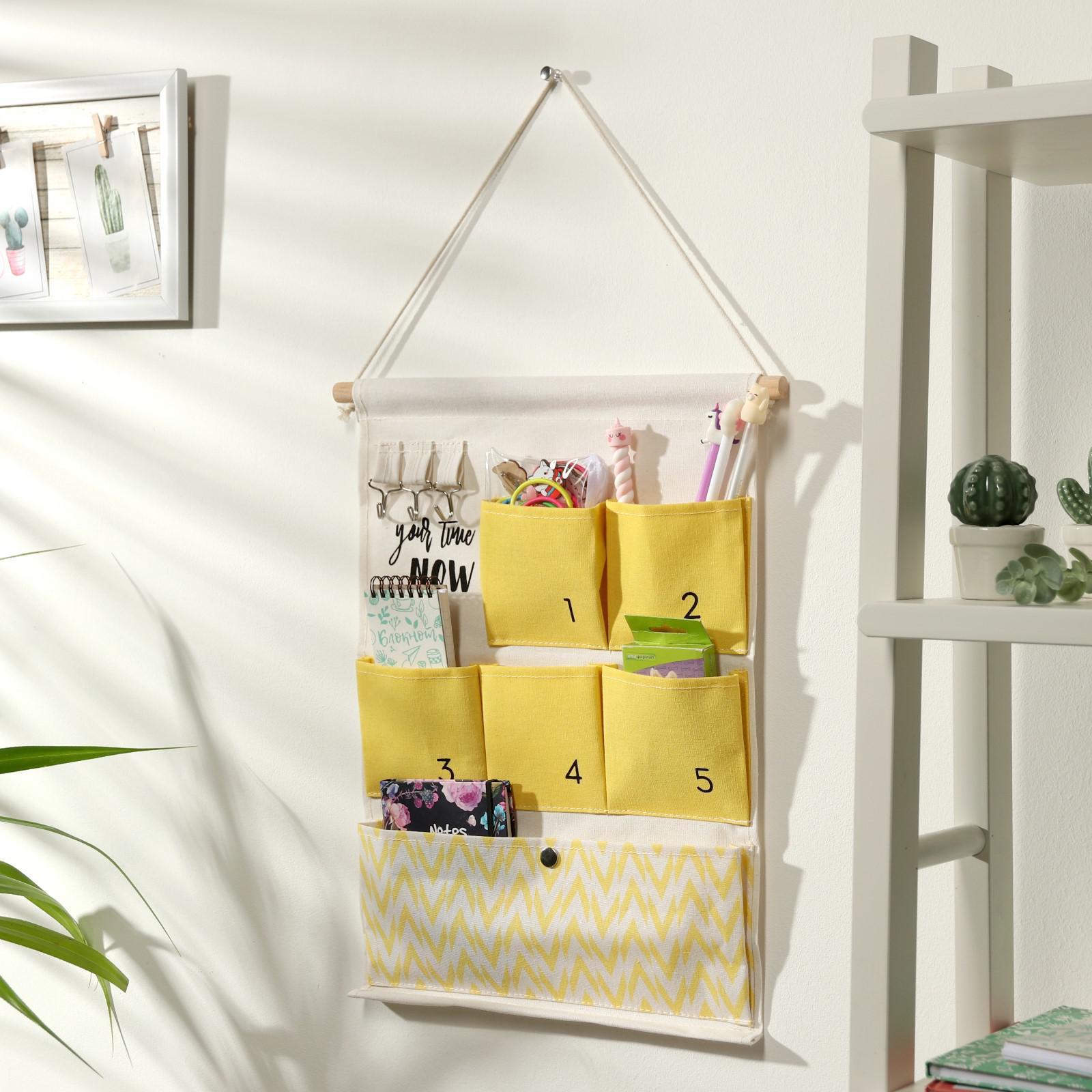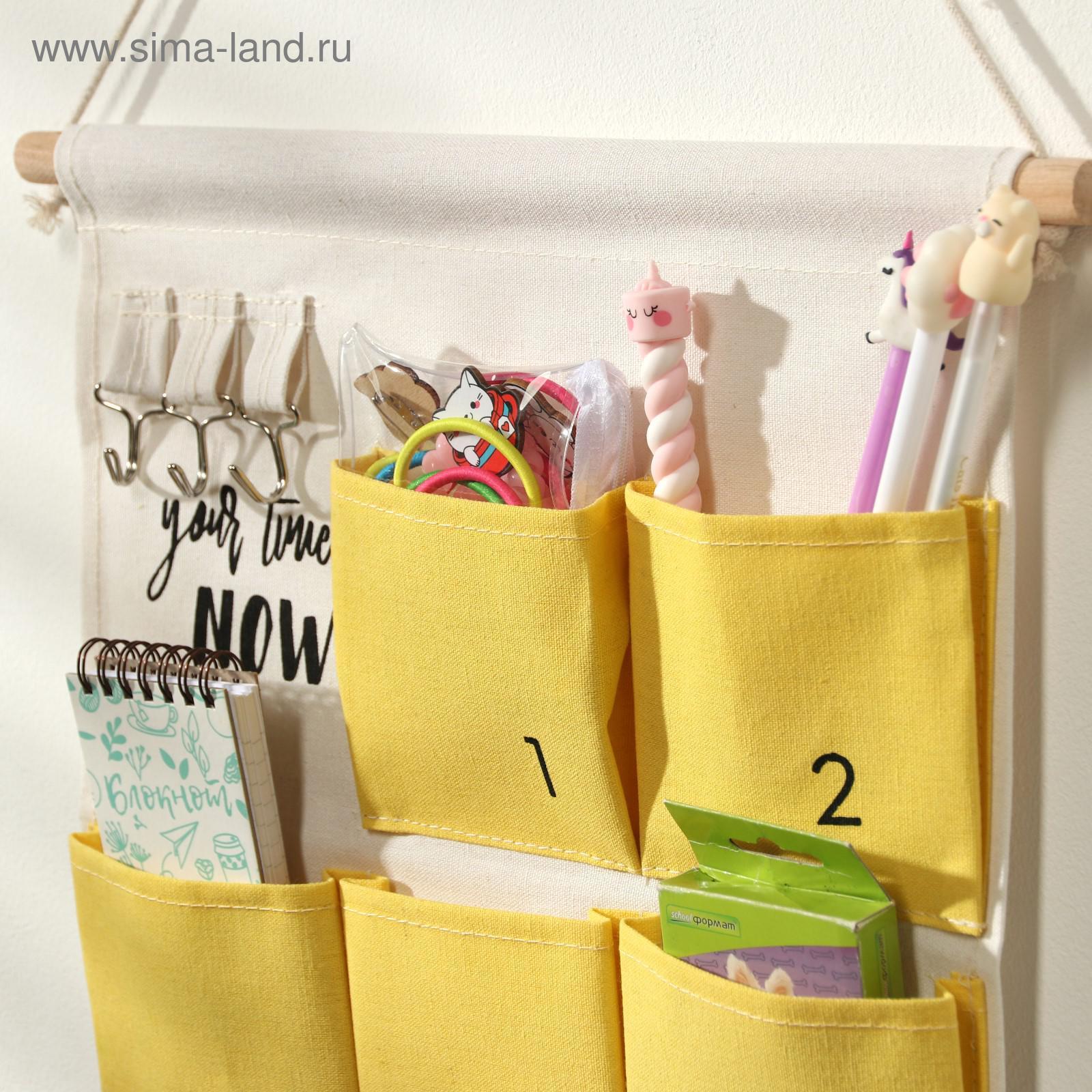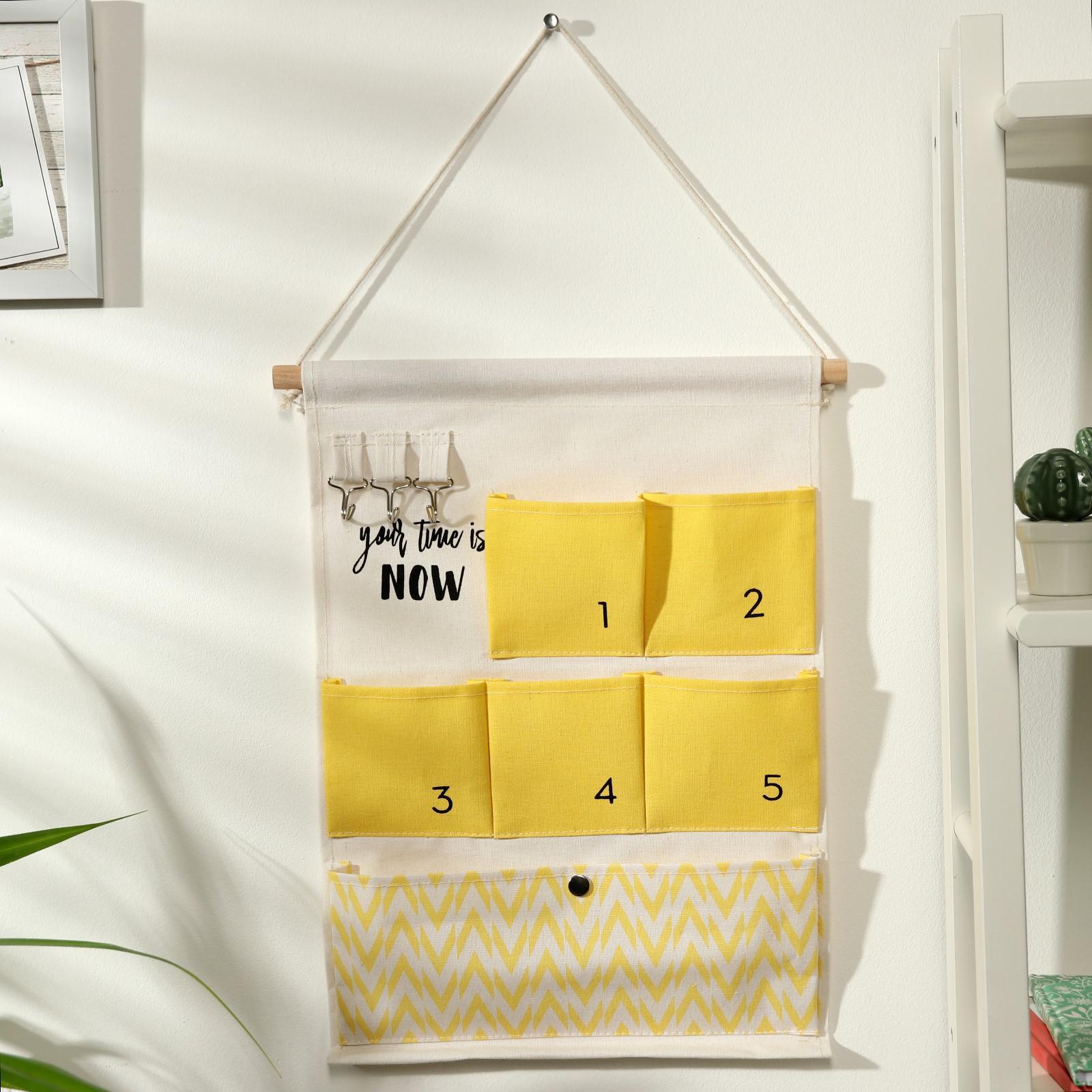 Органайзер подвесной с карманами доляна «время», 6 отделений, 49x35 см, цвет жёлтый