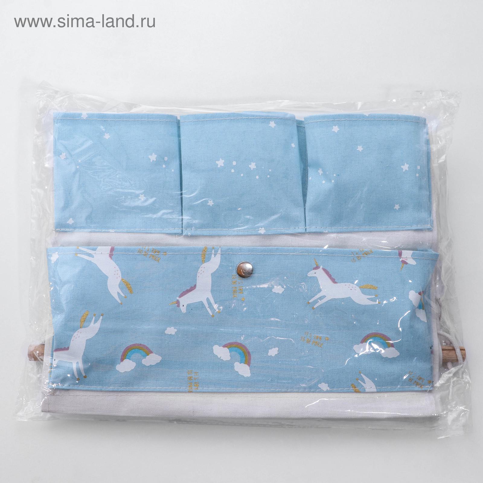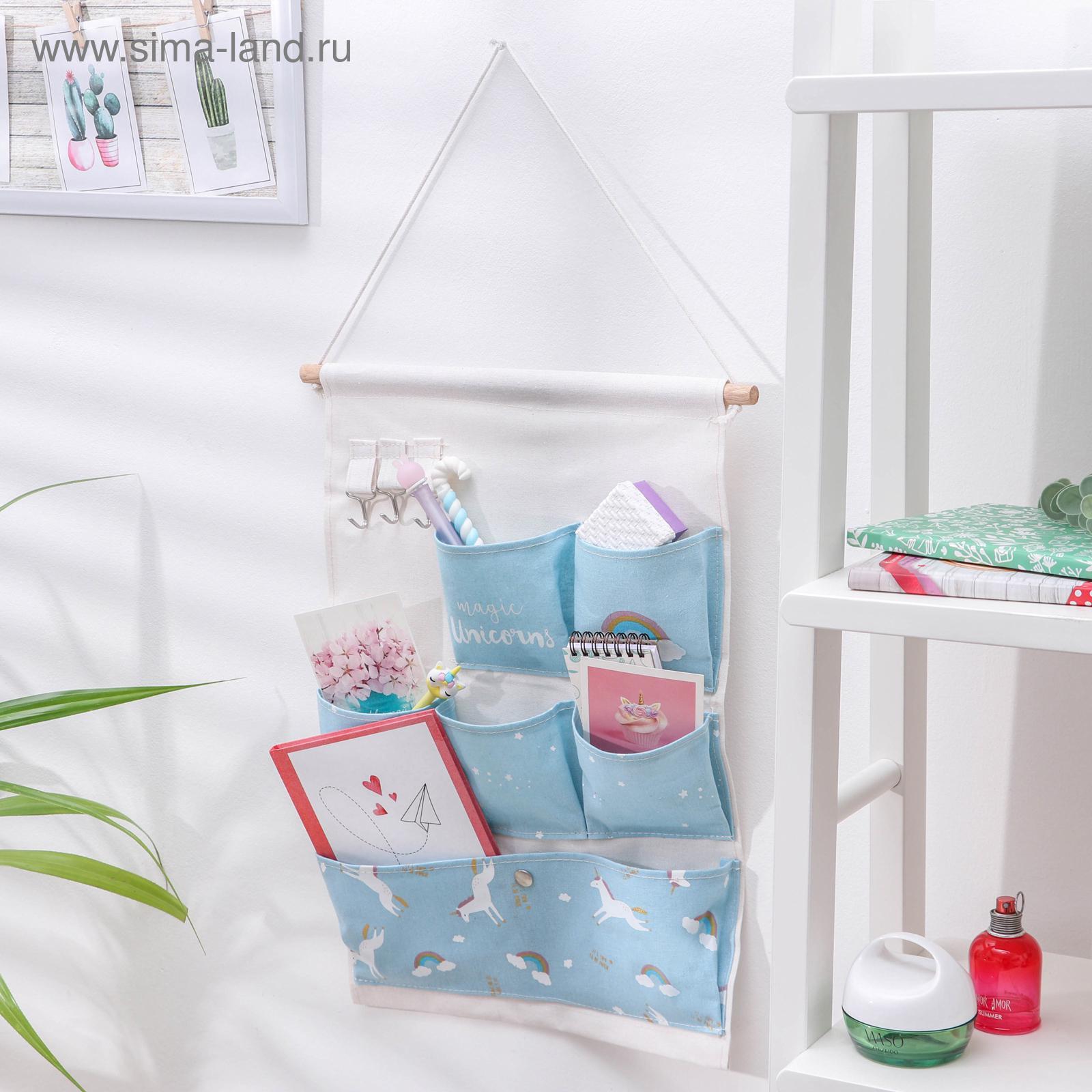 Органайзер подвесной с карманами доляна «единорожек» 6 отделений, 50x35 см, цвет голубой
