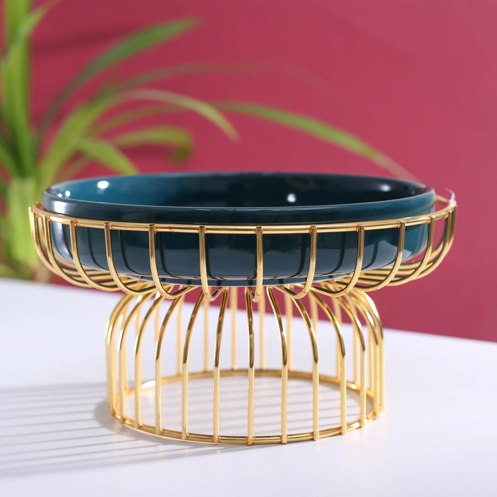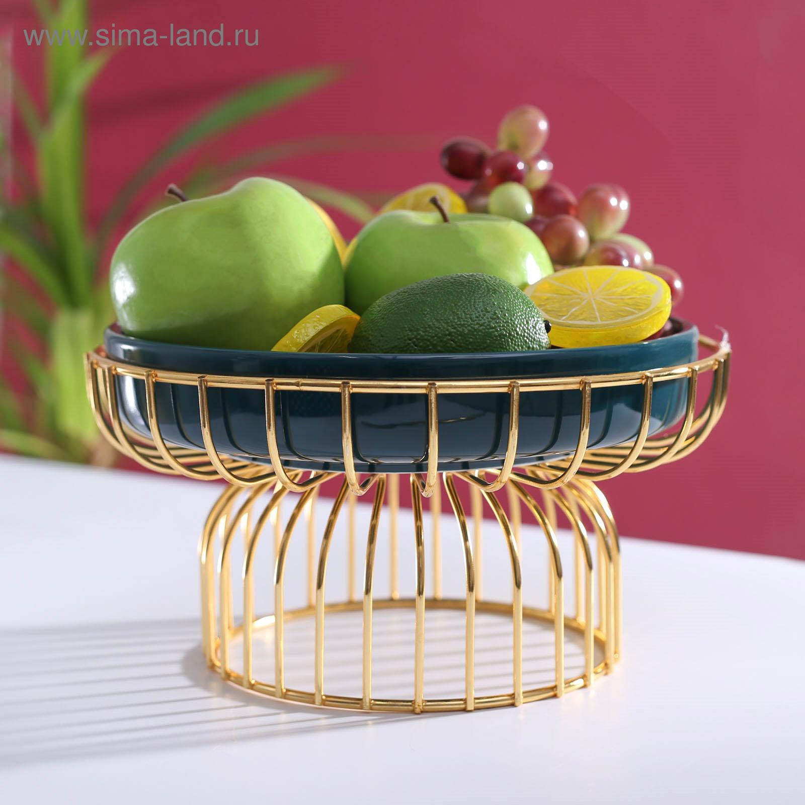 Подставка для десертов керамическая на металлической подставке «изумруд», 23x12 см, цвет зелёный