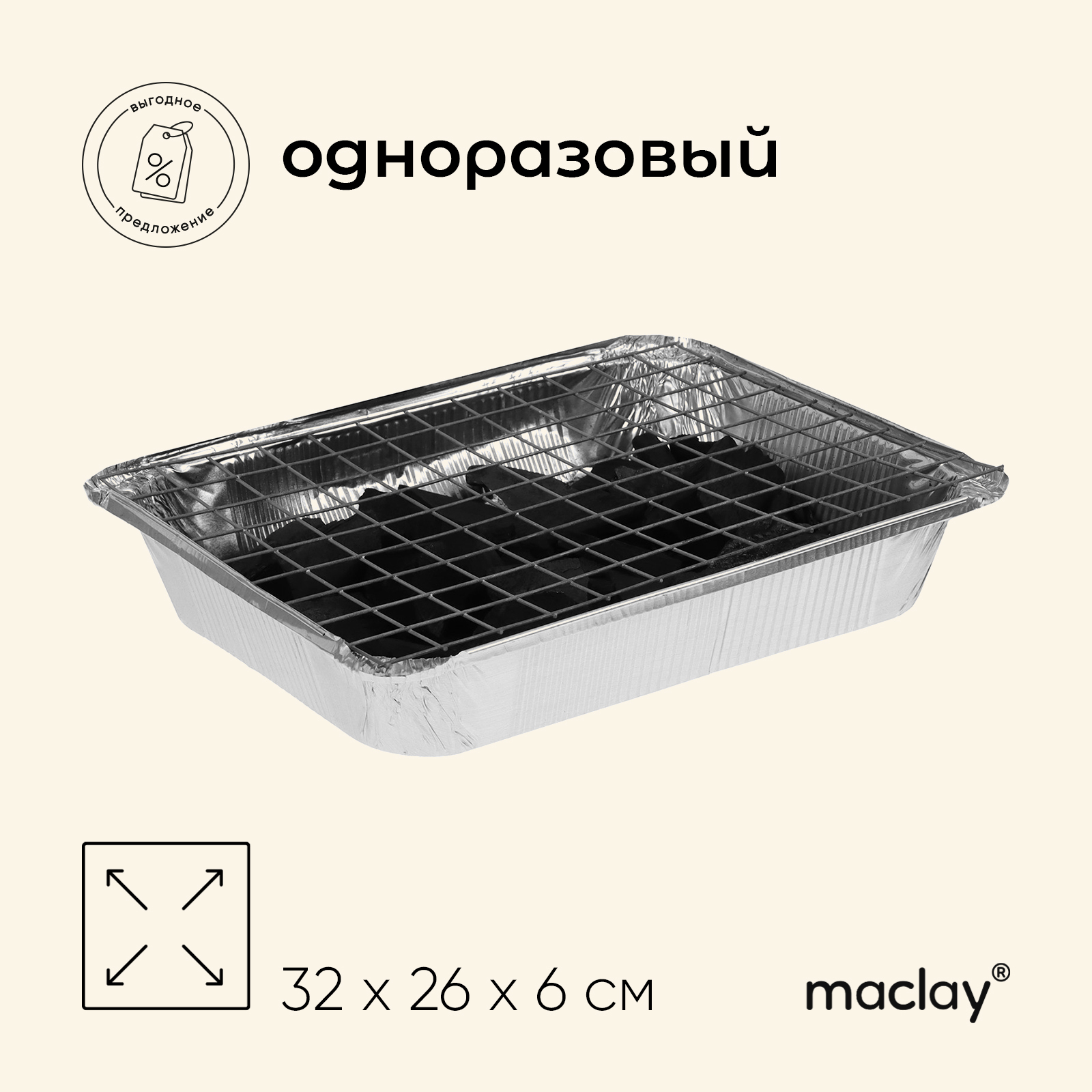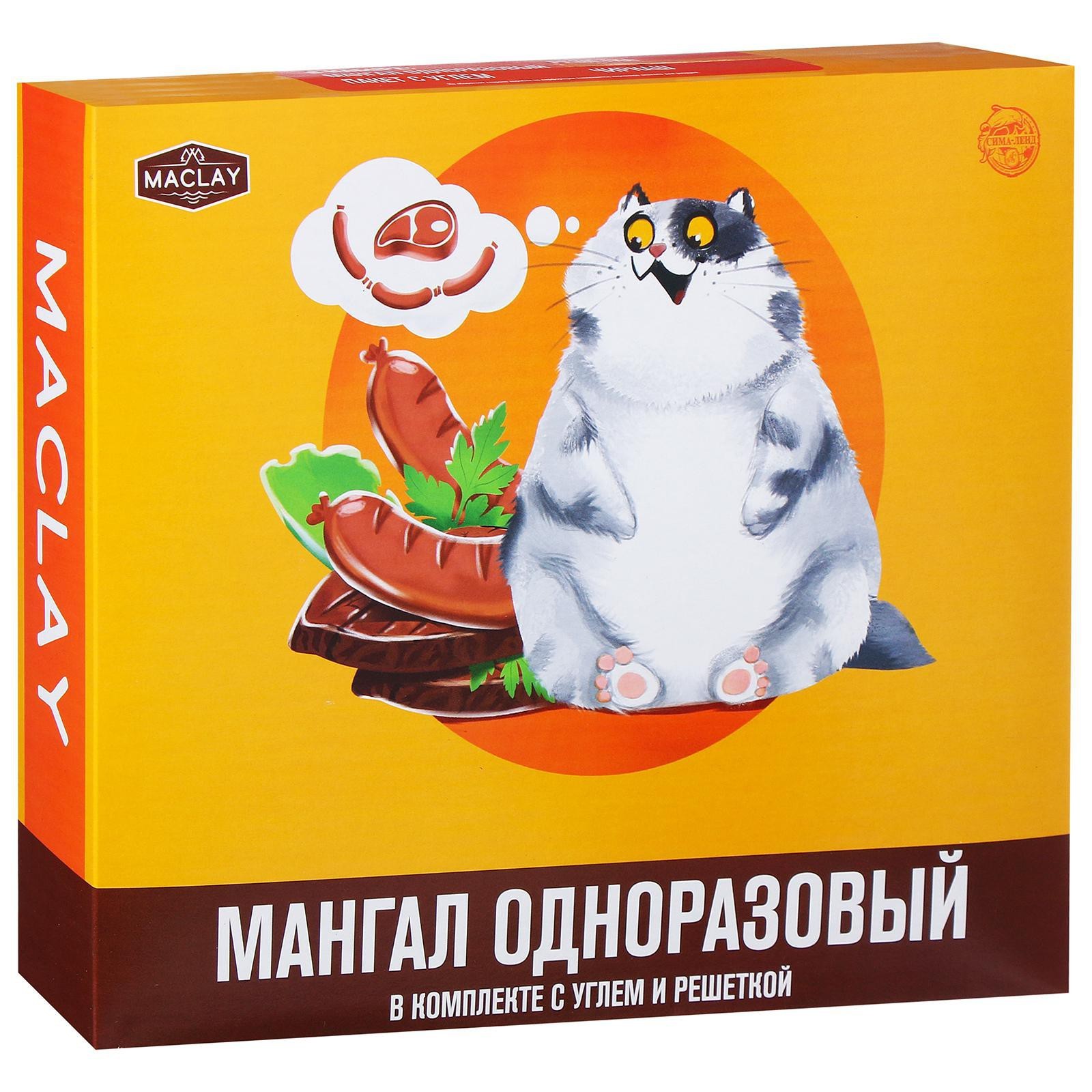 Мангал Maclay, одноразовый, 32х26х6 см, в комплекте: уголь, решётка «сосиски»