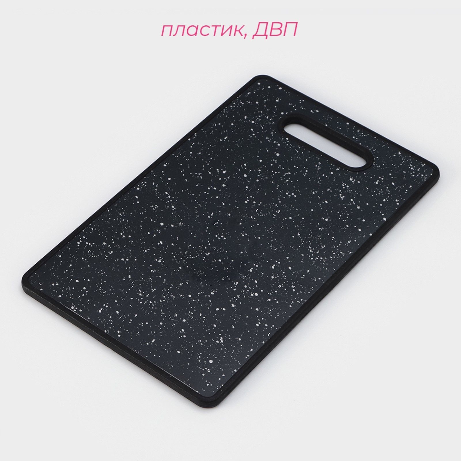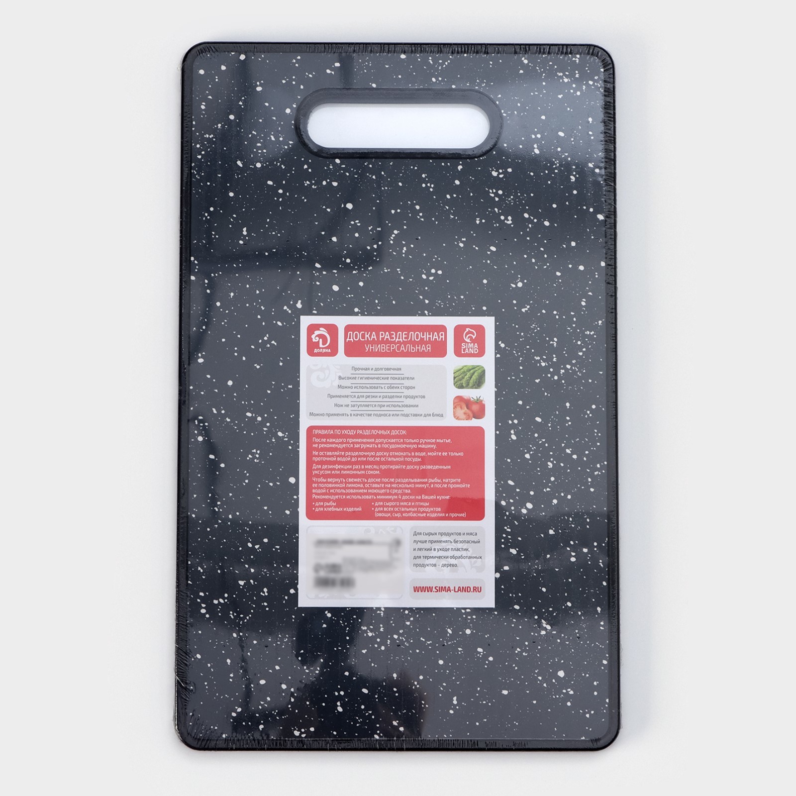 Доска разделочная пластиковая прямоугольная доляна «звёздное небо», 36,5x23 см. В приготовлении блюд разделочная доска играет не меньшую роль, чем сковорода, нож или плита. Качественная разделочная доска поможет получить от процесса приготовления пищи максимум пользы. Преимущества: Имеет оптимальный размер, многофункционально и при необходимости может заменить подставку для горячих сковород. Подойдет для разделки рыбы, мяса курицы или говядины, шашлыка, овощей, хлеба, теста, фруктов, продуктов, нарезок сыра и колбасы, картофеля, картошки. Материал легко очищается от грязи и жира, более экологичен, чем деревянное покрытие, которое впитывает запахи и влагу. Кроме того, разделочные доски можно использовать в качестве оригинального элемента сервировки стола - подать сыр к вину, фрукты, овощи, мясные закуски. Цвет: Разноцветный Форма: Прямоугольная Длина, см: 36.5 Ширина, см: 23 Материал: Пластик Тип доски: Стандартная Тип нанесения рисунка: Ламинация Можно мыть в посудомоечной машине: Нет Особенности: Подвесная  развернуть описание ▼