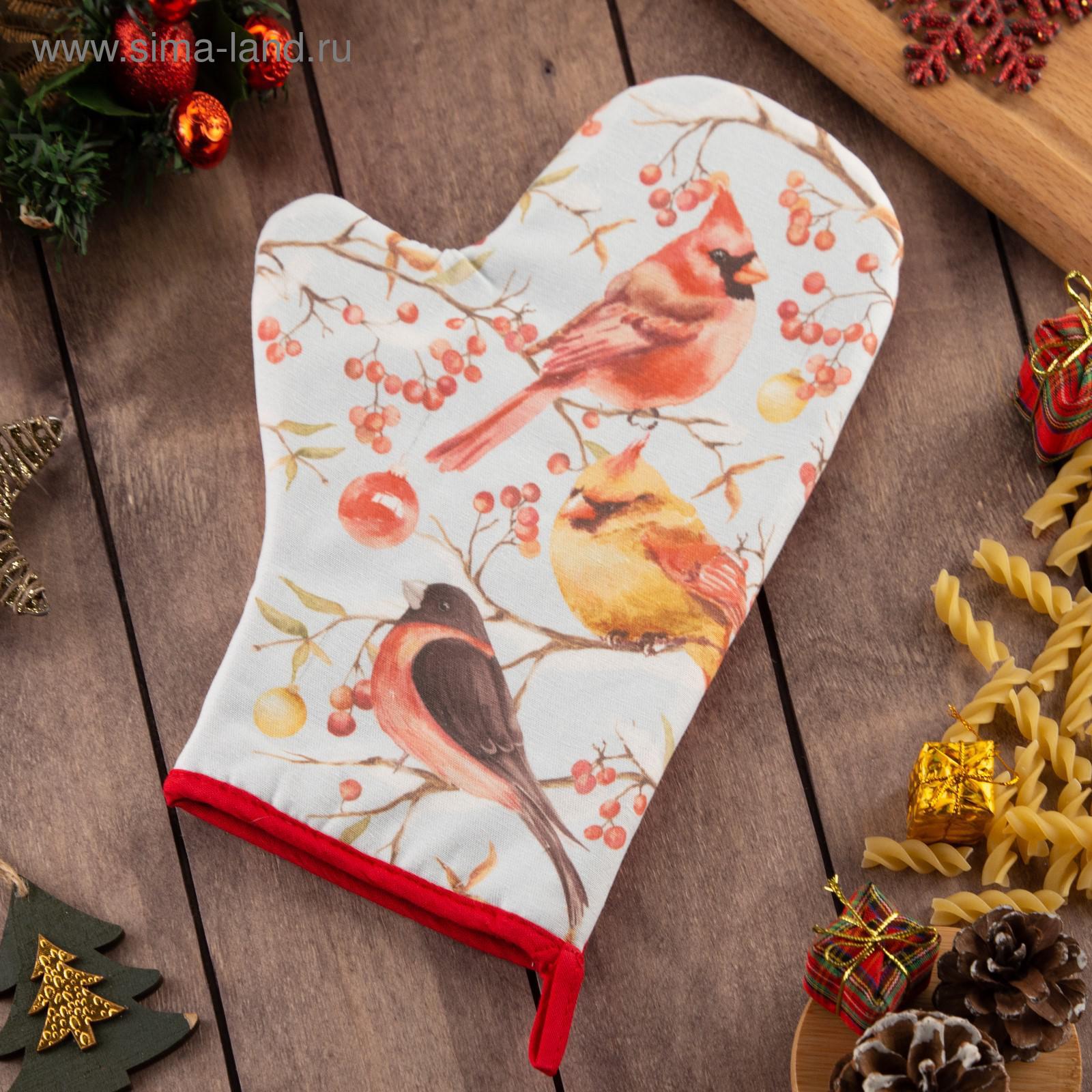 Варежка-прихватка "Winter Birds" 20х28см, саржа, 100% хлопок, ватин 250г/м2
