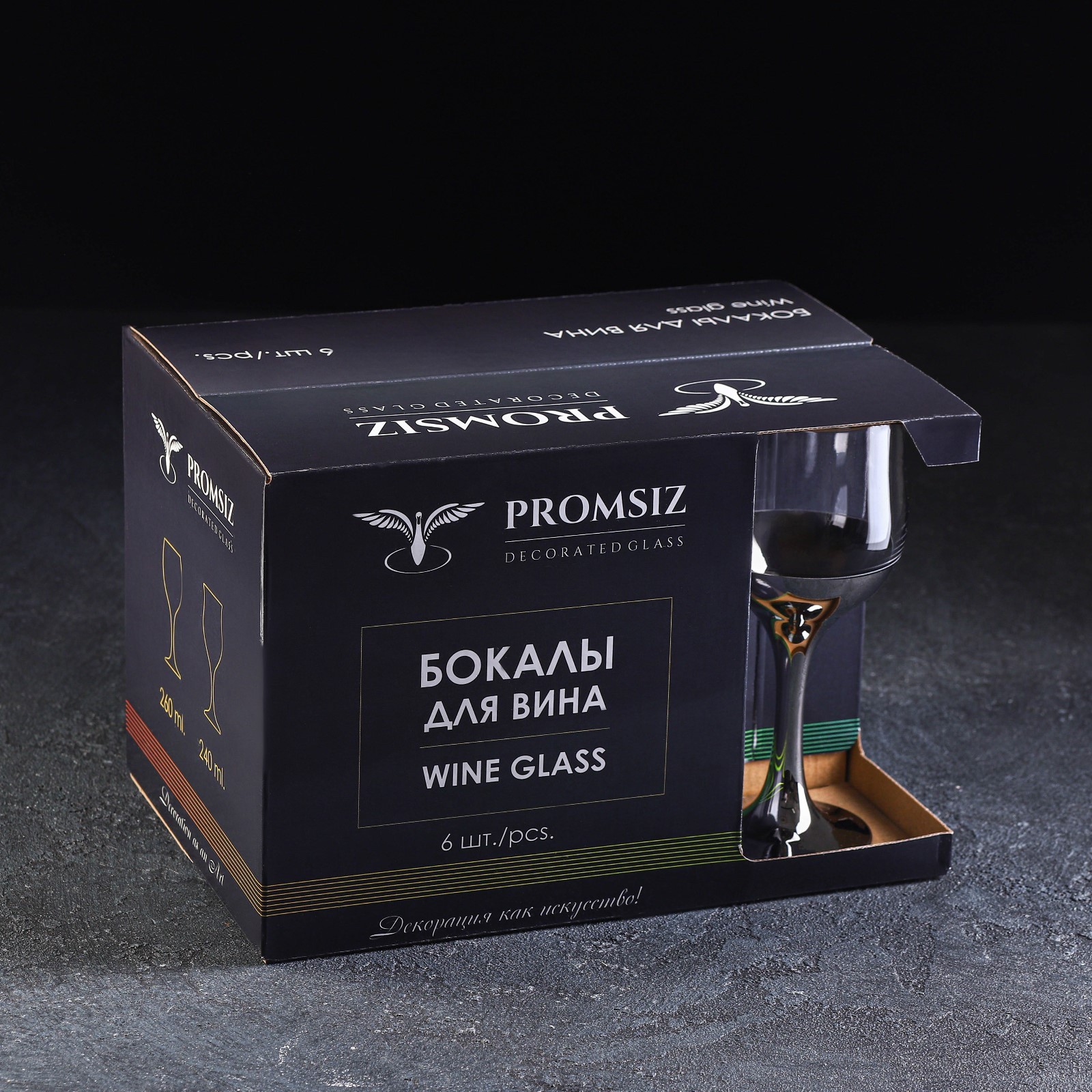Набор бокалов для вина «поло», 250 мл, 6 шт, цвет серебряный