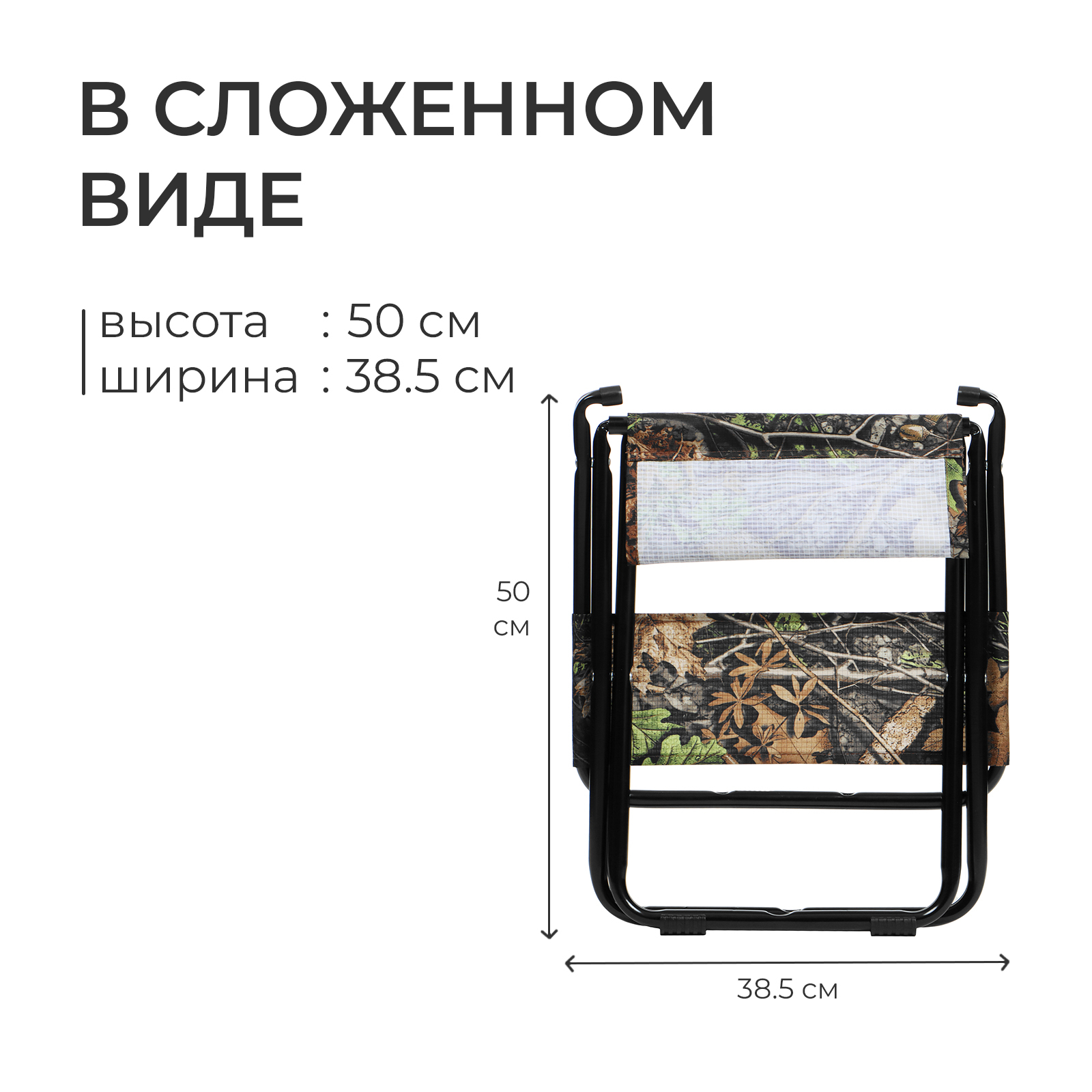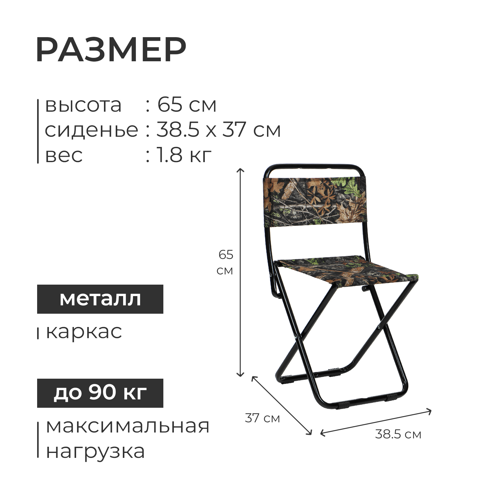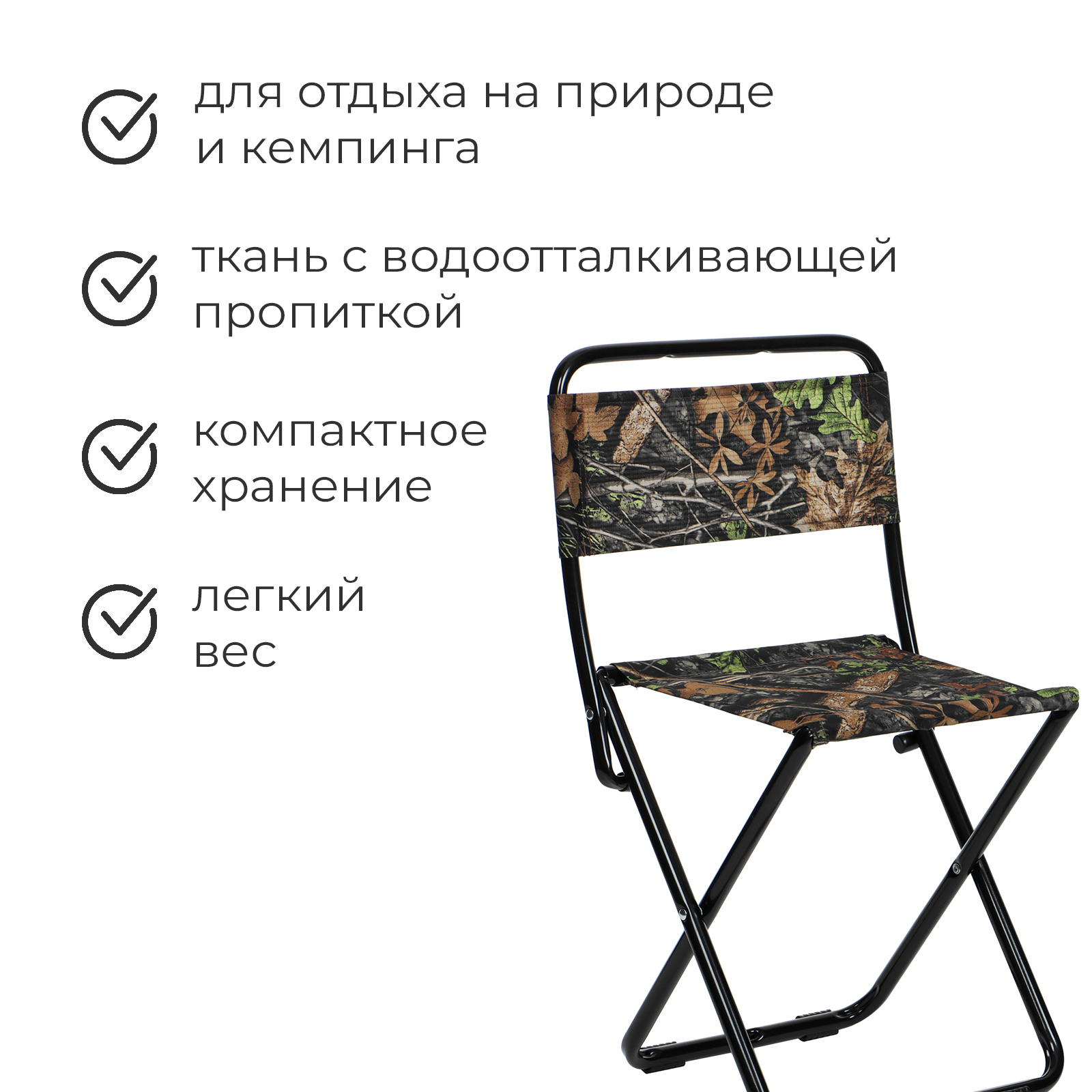 Стул складной nika, 38 х 36 х 65 см, принт дубовые листья. Цвет: Чёрный Maксимальная нагрузка, кг: 90 Материал: Оксфорд Материал: Сталь Раскладная мебель: Да Вид: Стул Температурное ограничение: Нет Особенности: Без особенностей  развернуть описание ▼