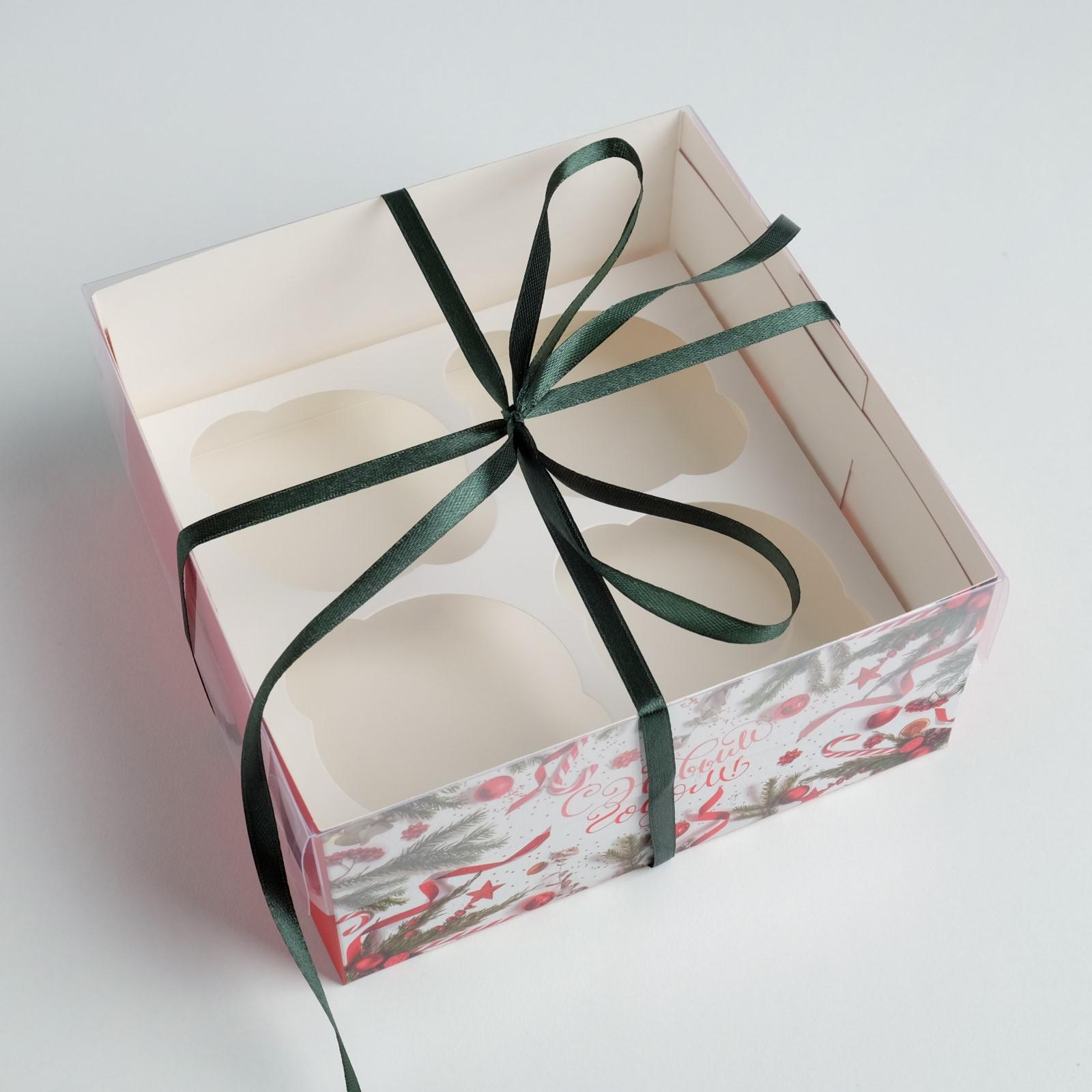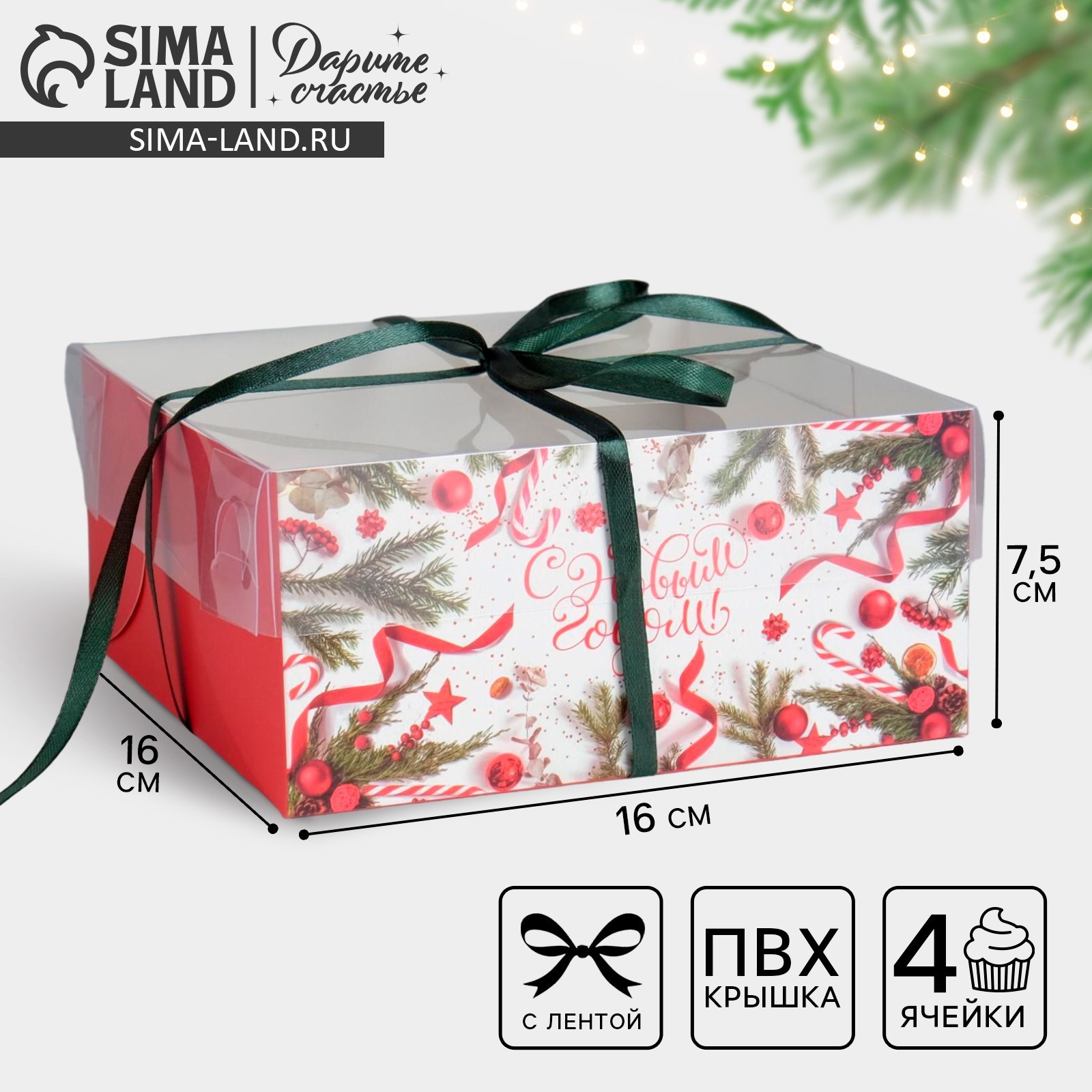 Коробка для капкейка «с новым годом!», 16 х 16 х 7.5 см. Размер одной ячейки, без учёта выемки под пальцы, ~6,5 см.Вид упаковки:Для капкейков|Цвет:Красный|Цвет:Белый|Форма:Квадратная|Плотность, г/м :250|Длина, см:16|Ширина, см:16|Высота, см:7.5|Вместимость, шт.:4|Допустимый вес вложения, г:600|Тематика:Новогодняя|Символ года:Нет|Тематика праздника:Новый год|Материал:Пластик|Материал:Картон|Вид ручки:Без ручки|Вид:Кондитерские коробки|Вид еды:Для десертов|Размер:Малый (11-17 см)|Страна:Китай  развернуть описание ▼