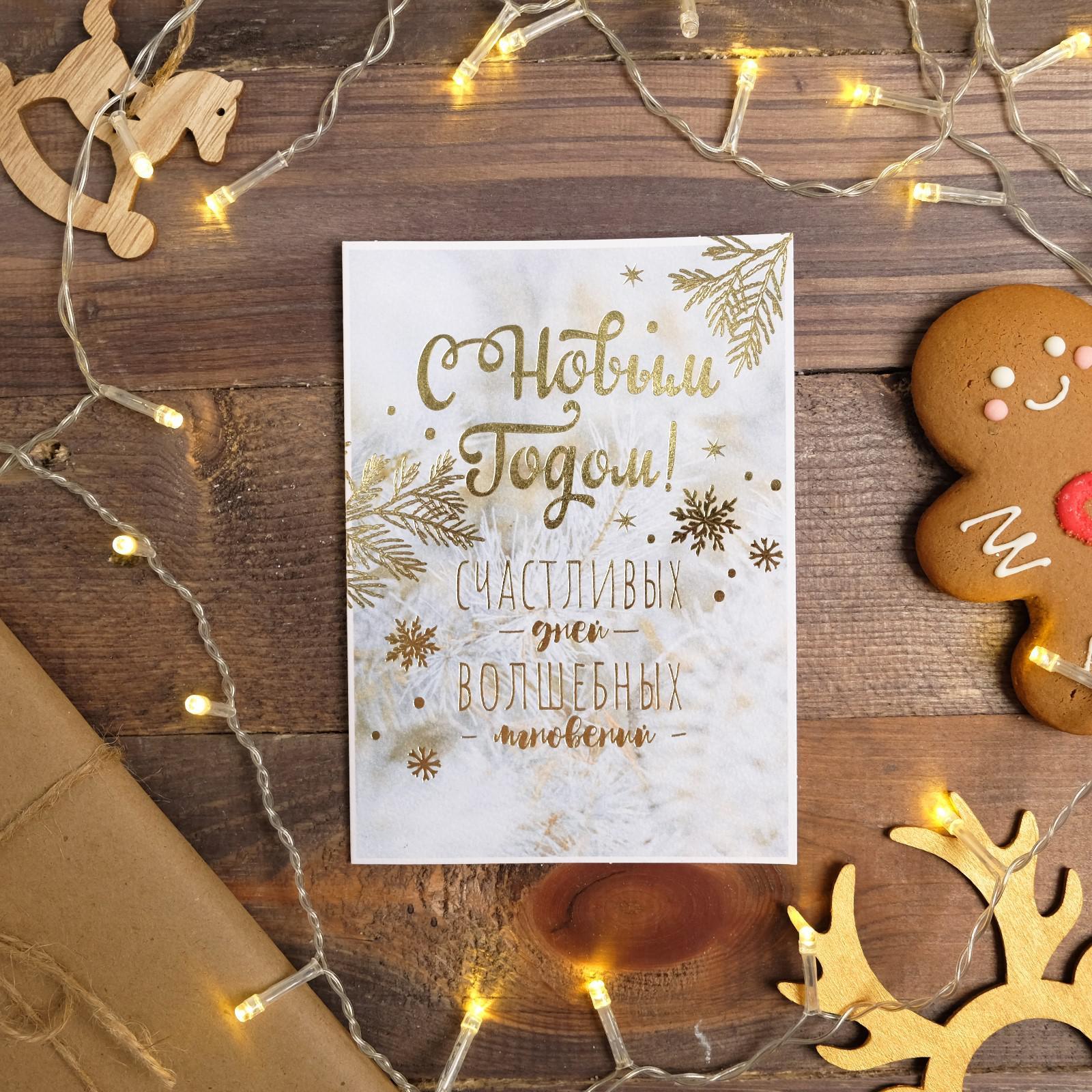 Открытка с новым годом на акварельном картоне «счастливых дней», тиснение, 11.5 х 16 см. Отделка:Без отделки|Символ года:Нет|Тематика праздника:Новый год|Адресат:Без адресата|Размер:Средний (16-21 см)|Форма:Стандарт|Страна:Китай
