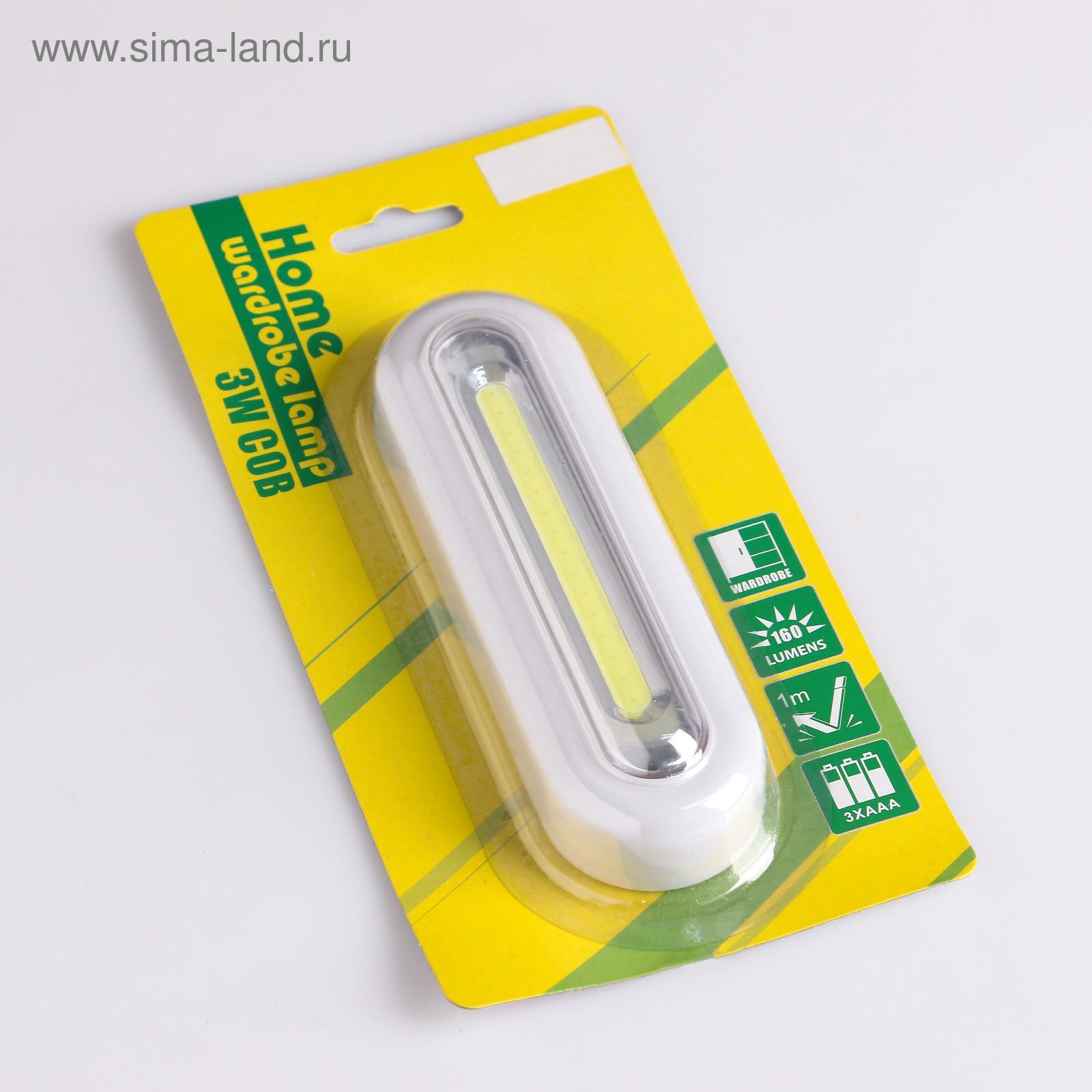 Фонарь-светильник, 3 вт, 160 лм, Cob, 3 ааа, клейкая основа, 4.4 х 2.8 х 13.8 см