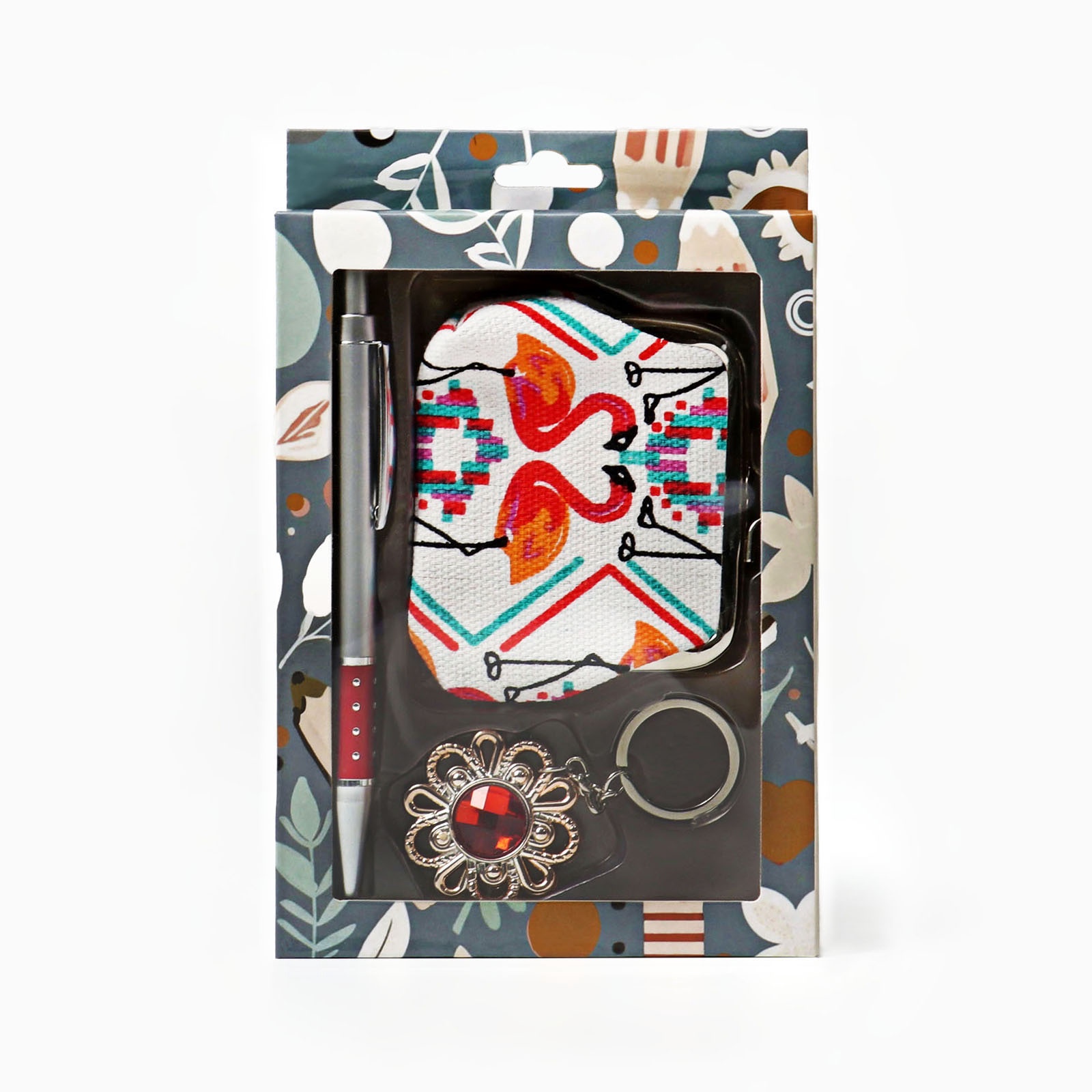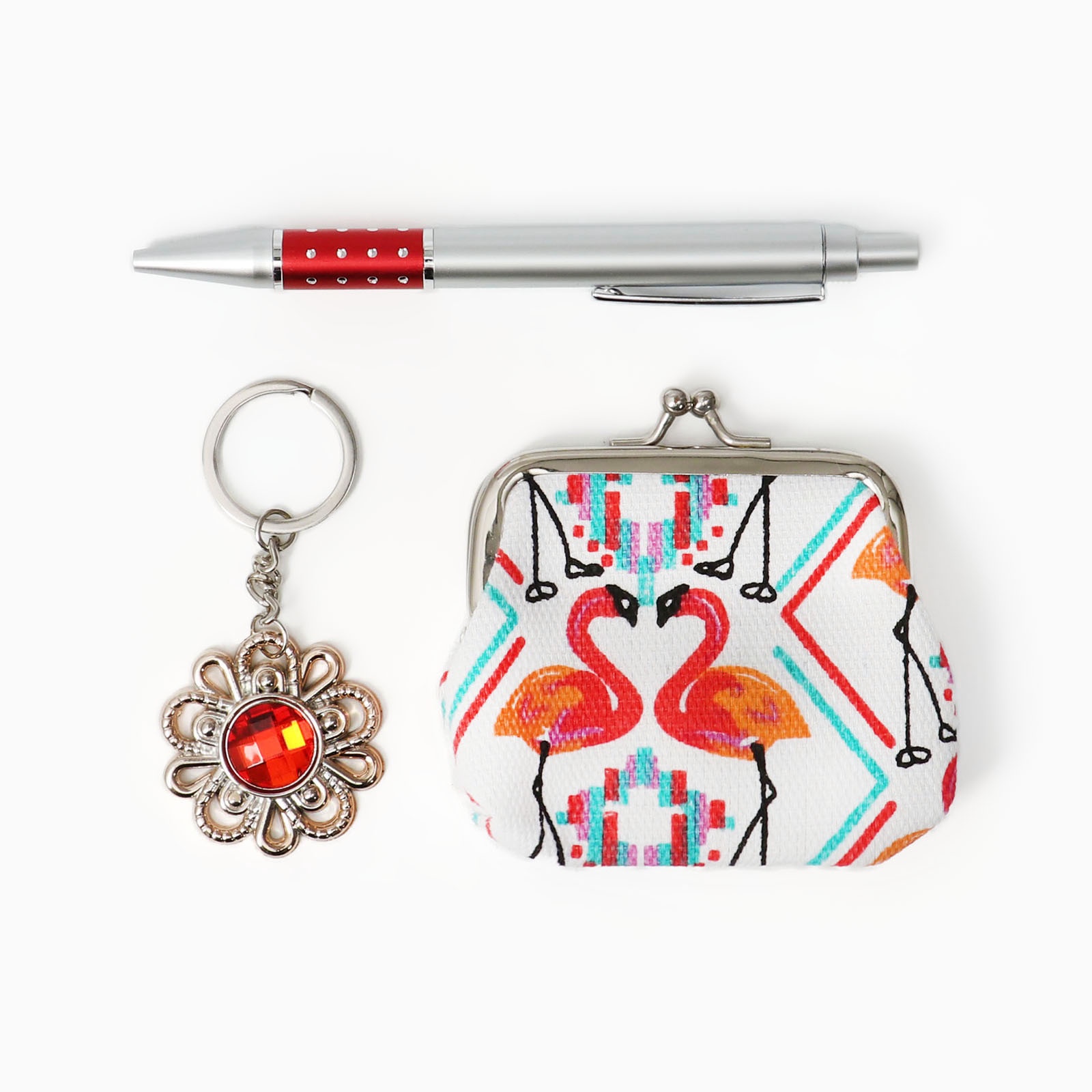 Набор подарочный 3 в 1, ручка, кошелек, брелок. Для кого:Для женщины|Для кого:Для девочки|В наборе, шт.:3|Вид упаковки:Коробка картонная|Символ года:Нет|Тематика праздника:8 Марта|Тематика праздника:Новый год|Адресат:Учителю|Адресат:Школьнику|Составляющие набора:Ручка|Составляющие набора:Брелок|Составляющие набора:Кошелёк|Возраст:Для взрослых|Возраст:Для детей|Страна:Китай  развернуть описание ▼