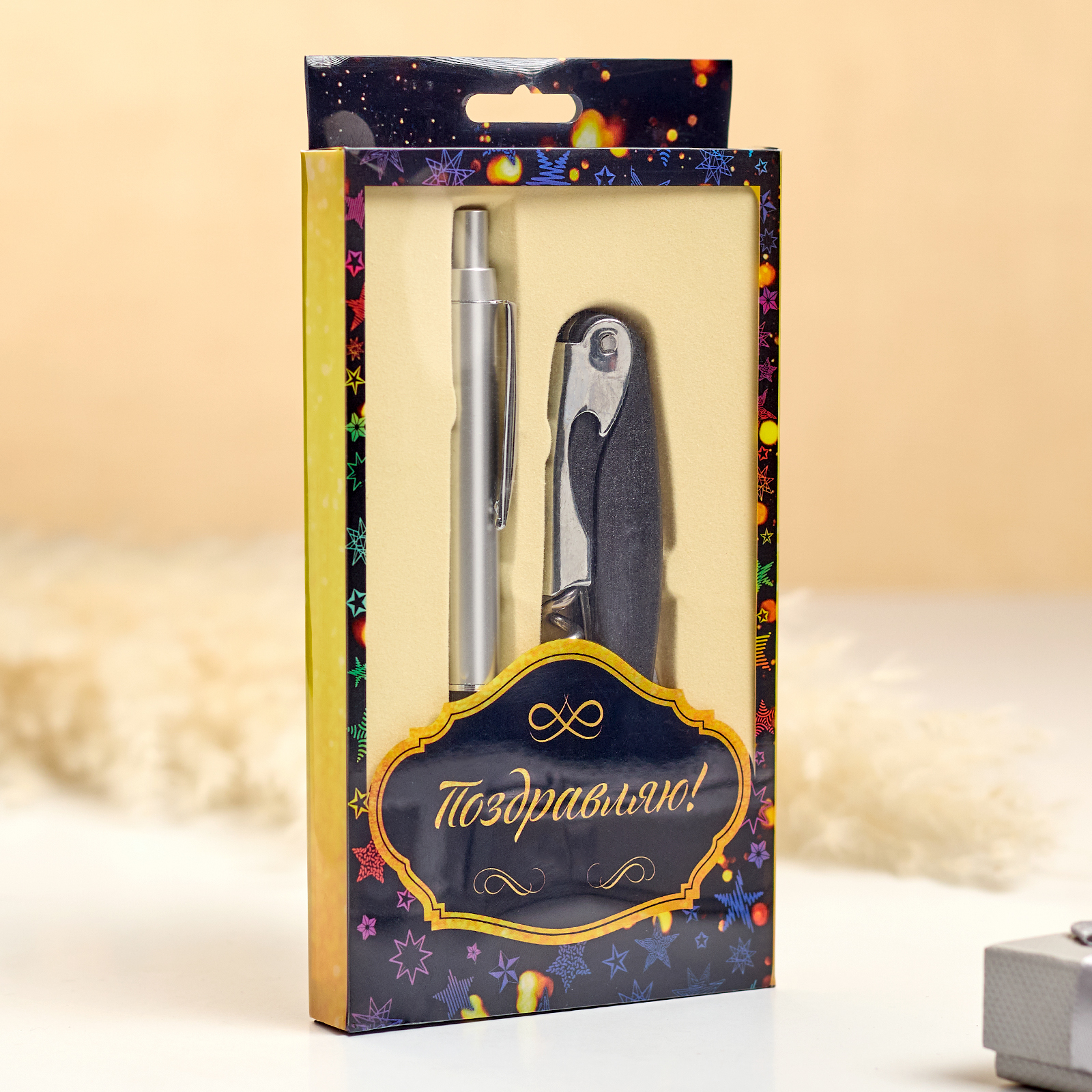 Набор подарочный 2 в 1, ручка, открывалка-штопор