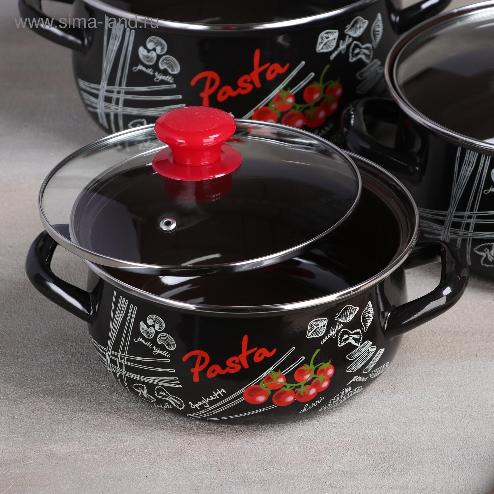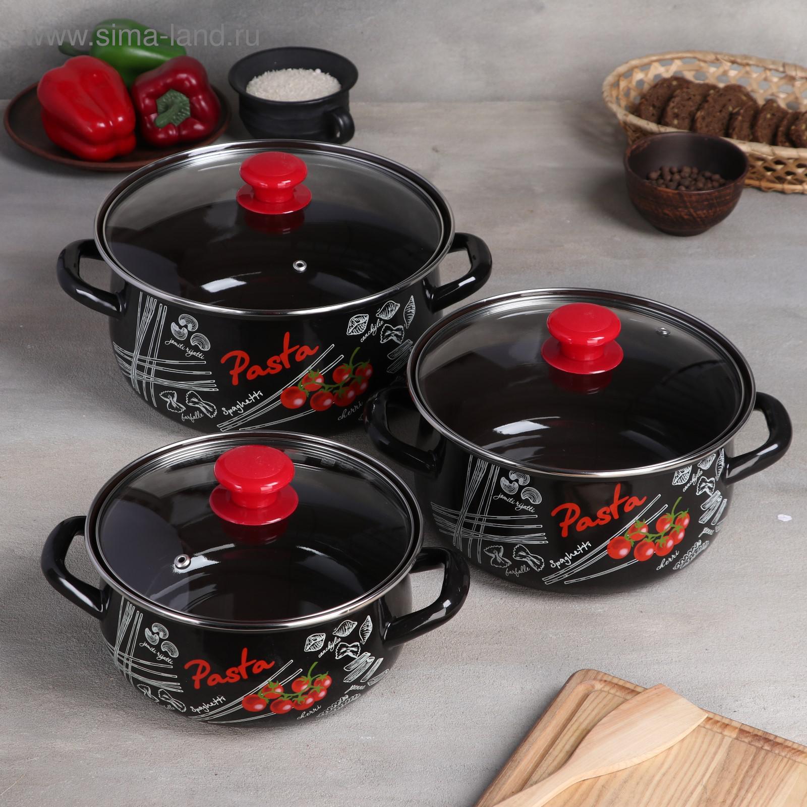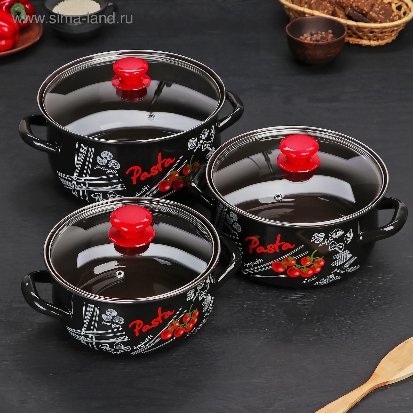 Набор кастрюль «болоньезе», 3 предмета: 2 л, 3 л, 4 л, D=20,5/23/26 см, стеклянные крышки, индукция