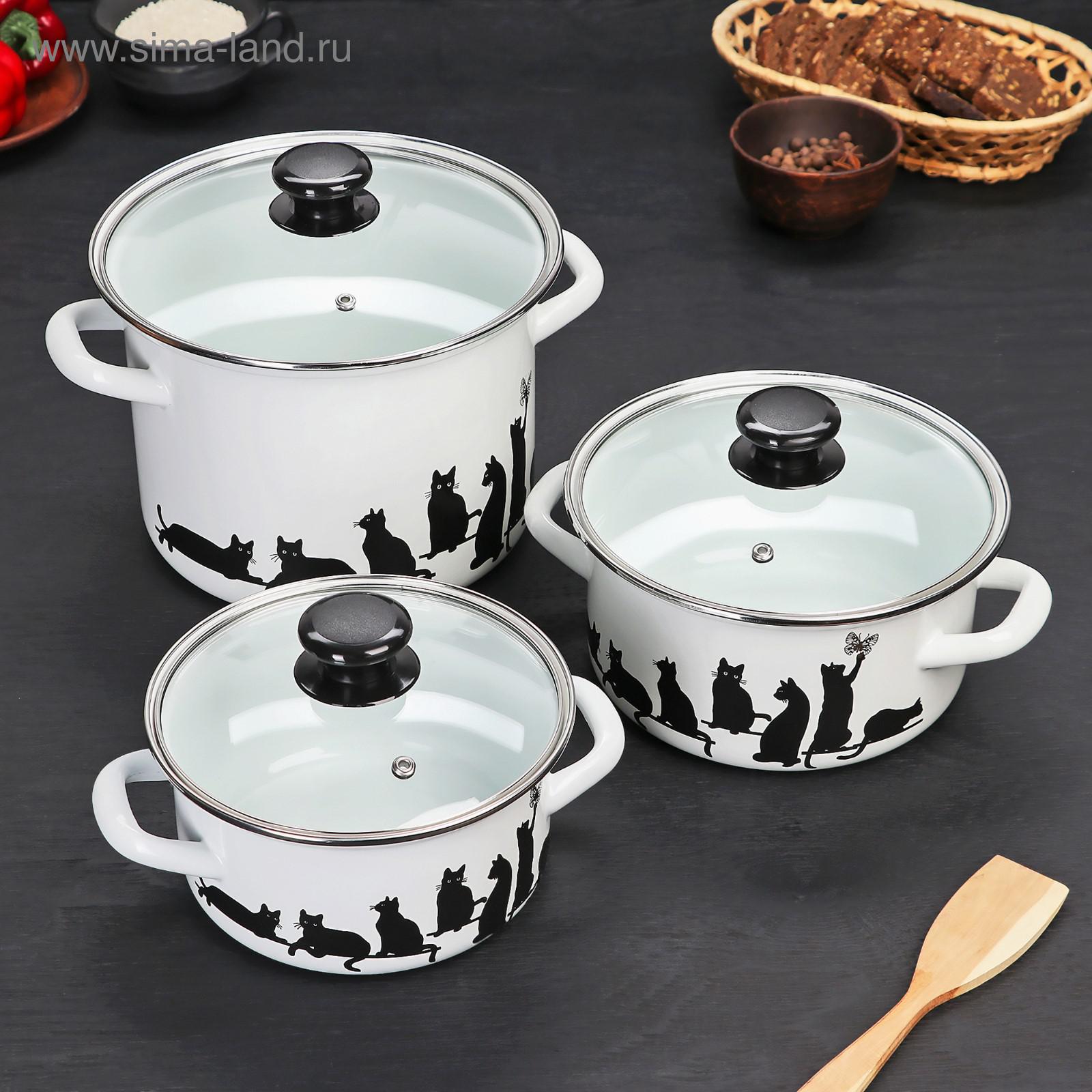 Набор кастрюль «кошечки», 3 предмета: 1,5 л, 2,3 л, 5 л, индукция