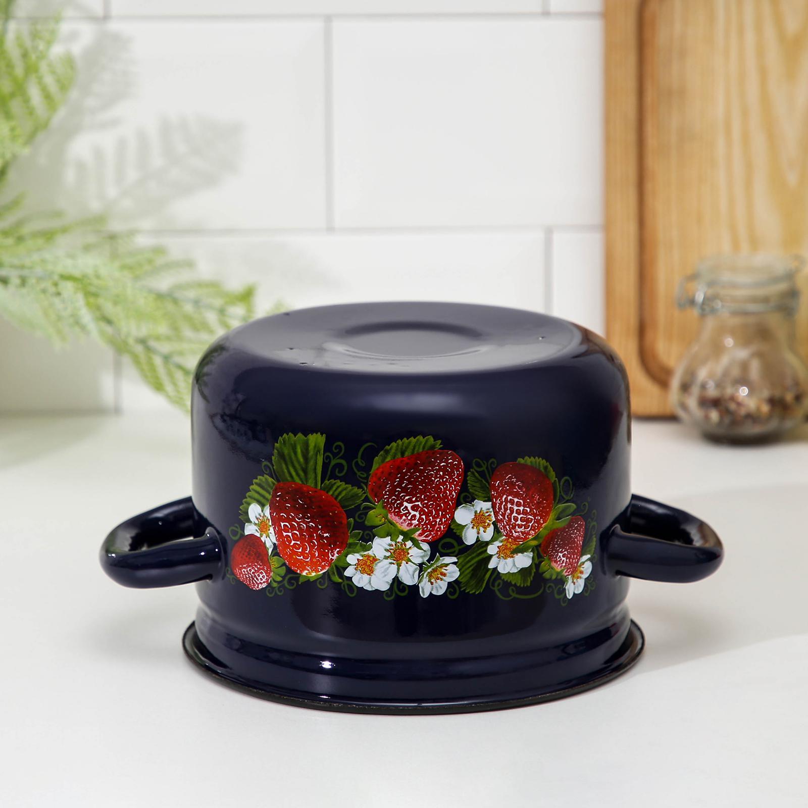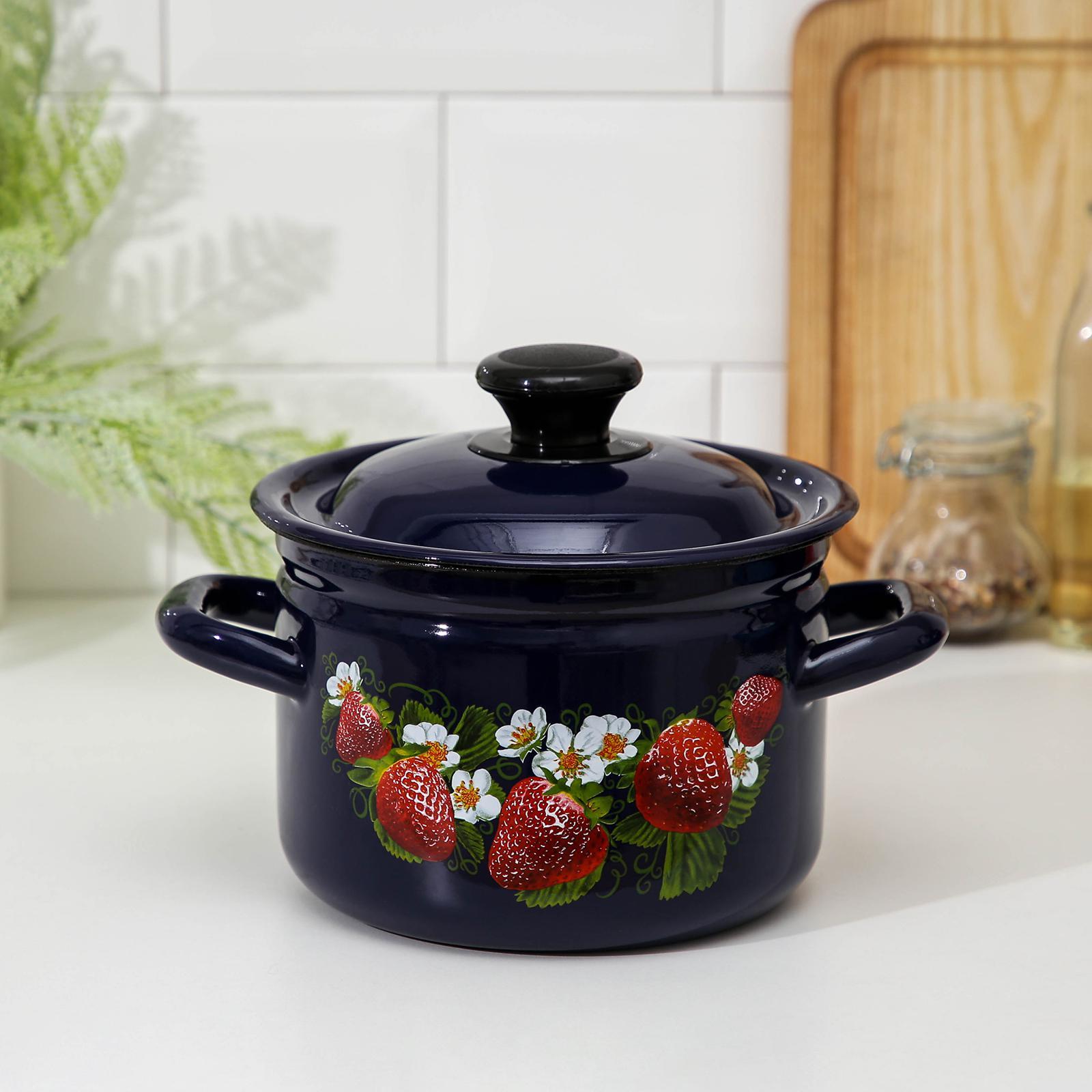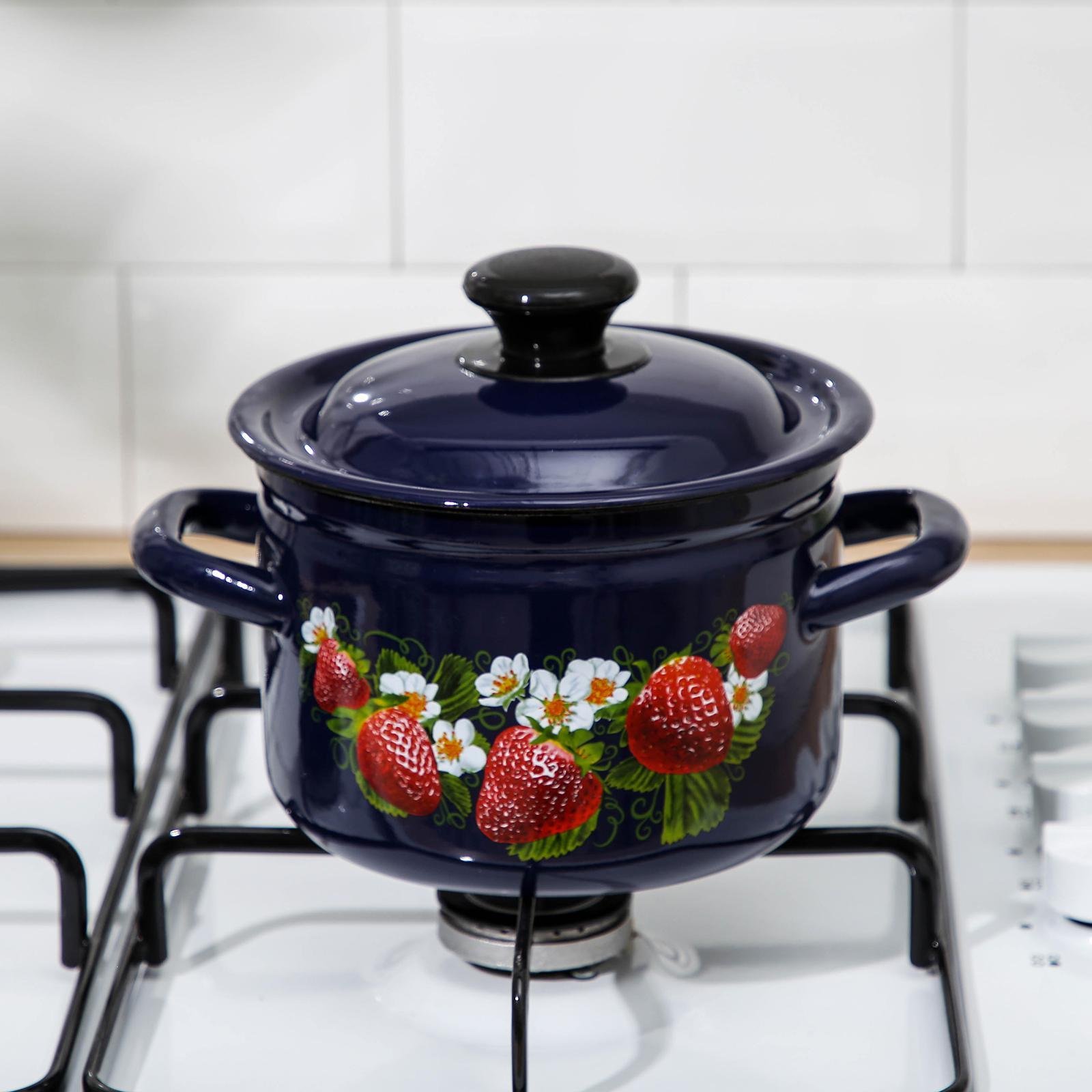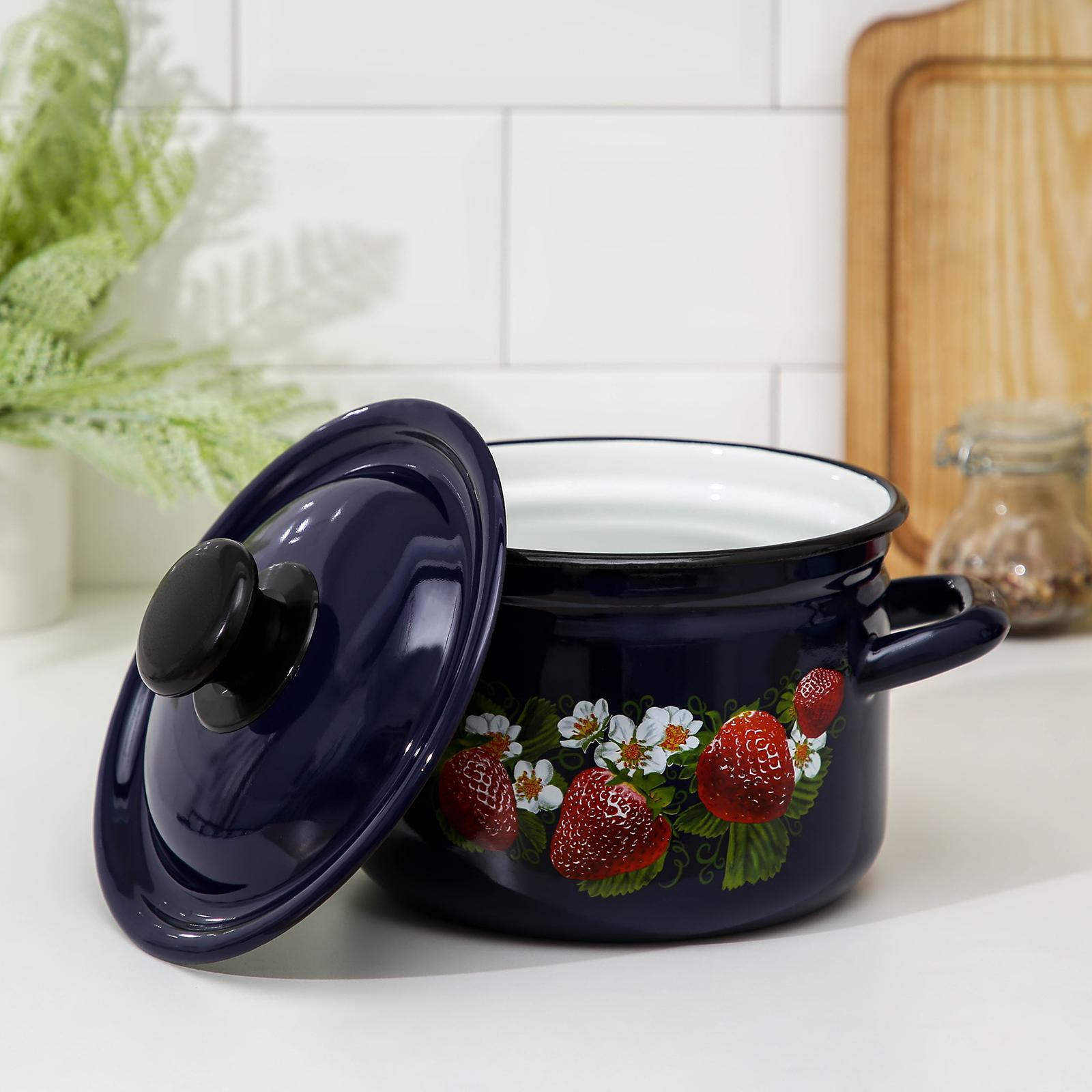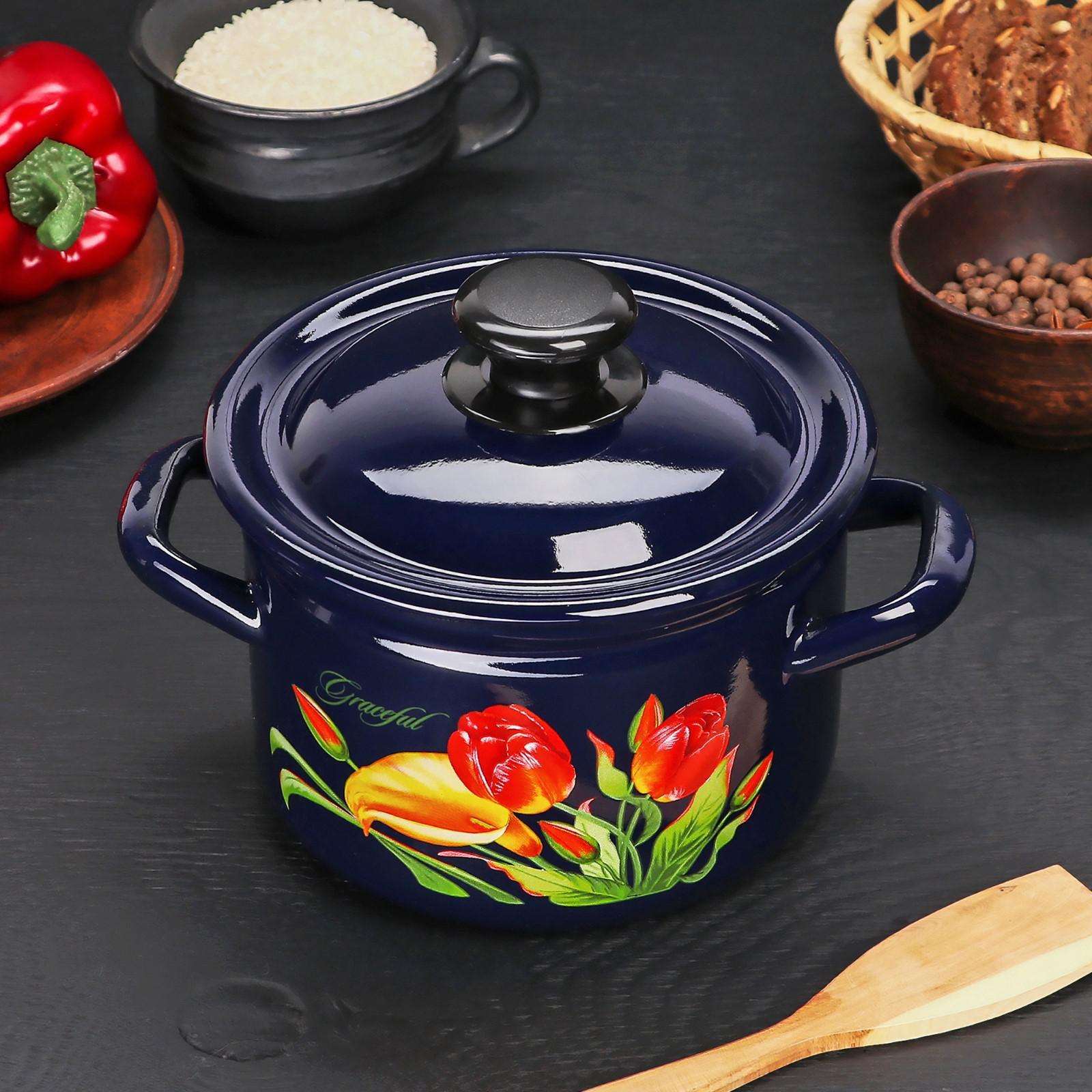 Кастрюля цилиндрическая, 2 л, металлическая крышка, индукция, деколь микс, цвет синий