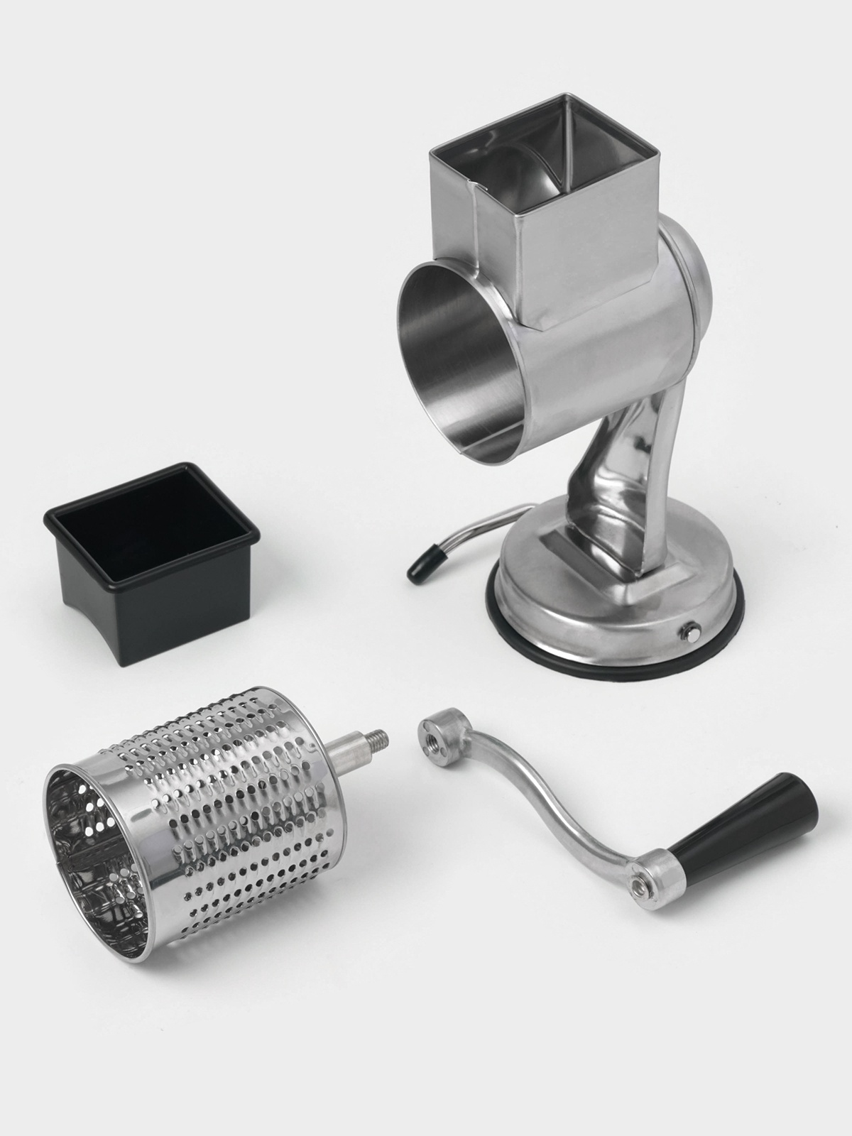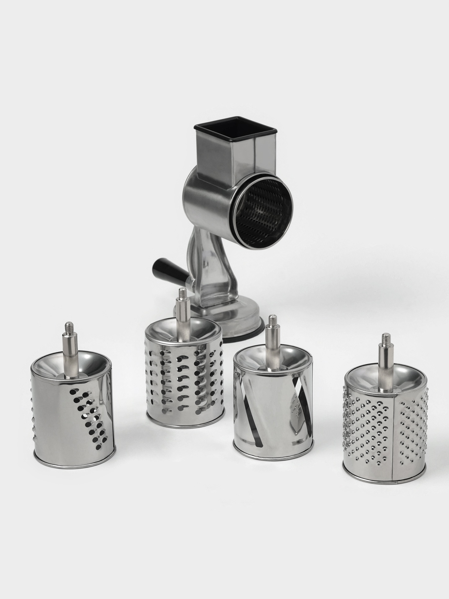 Многофункциональный ручной комбайн timbersaw, 5 насадок, нержавеющая сталь. Многофункциональный ручной комбайн быстро нарежет продукты для самых разнообразных блюд. Прибор работает по принципу мясорубки — острые лезвия измельчают продукты, когда вы прокручиваете ручку. Благодаря широкому дозатору и 5 разным насадкам можно мелко натереть орехи, шоколад, сыр, порезать крупной соломкой или слайсами фрукты и овощи. Насадки легко снимаются и моются. Преимущества Идеально подходит для измельчения овощей, фруктов, сыра, орехов и других продуктов в домашних условиях. Изделие выполнено из нержавеющей стали высокого качества. 5 съёмных барабанов. Удобная ручка и вакуумный крепёж. Цвет: Хромированный parts count: 0 Материал: Пластик Материал: Нержавеющая сталь Материал: Резина  развернуть описание ▼