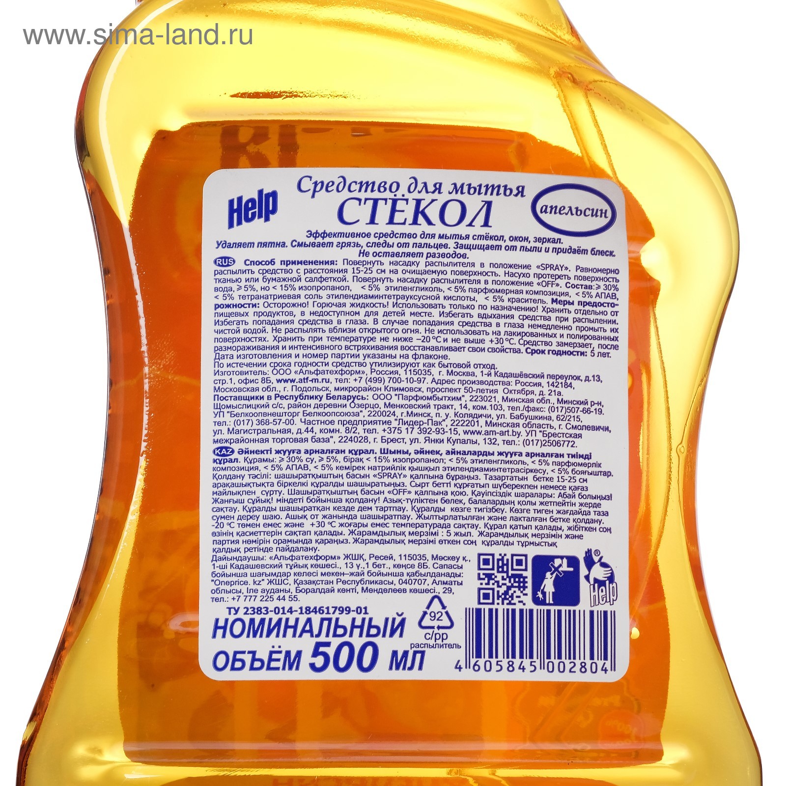 Средство для мытья стёкол и зеркал Help, апельсин, 500 мл