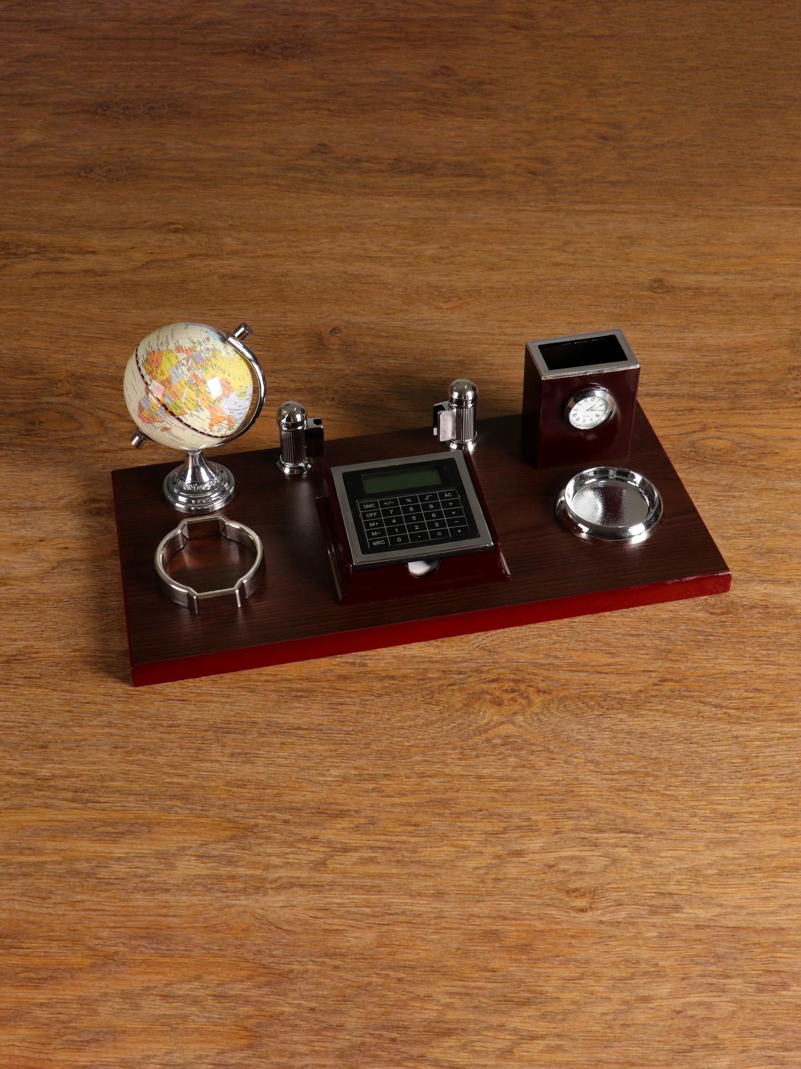 Набор настольный 7 в 1, (карандашница с часами, визитница, глобус, подставка, калька, подставка для мелочей)