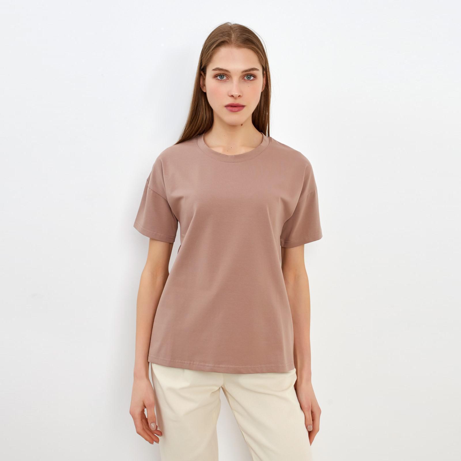 Футболка женская однотонная Minaku Regular Fit: цвет коричневый, р-р 42