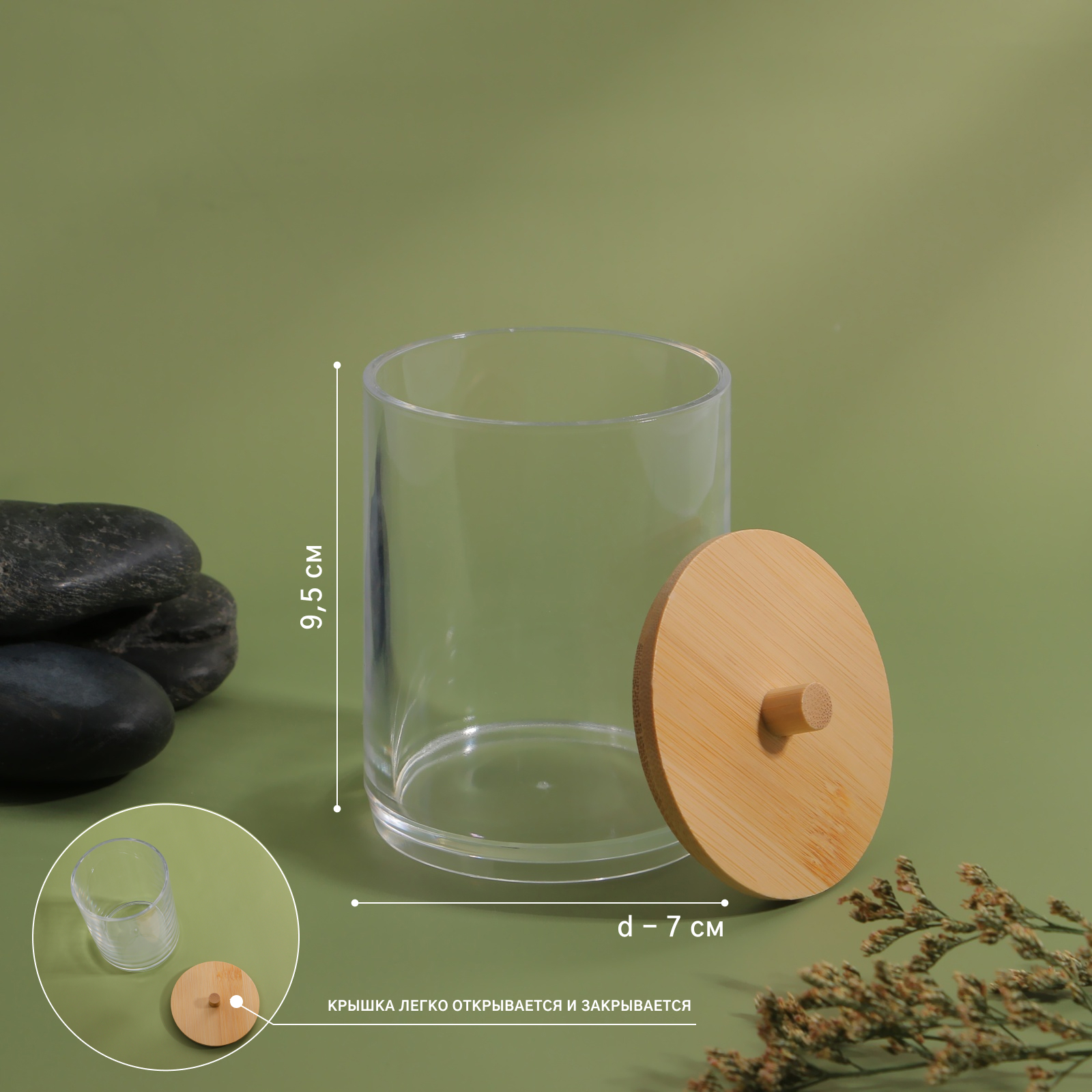 Органайзер для хранения «bamboo», с крышкой, 7 X 7 X 9,5 см, в картонной коробке, цвет прозрачный/коричневый