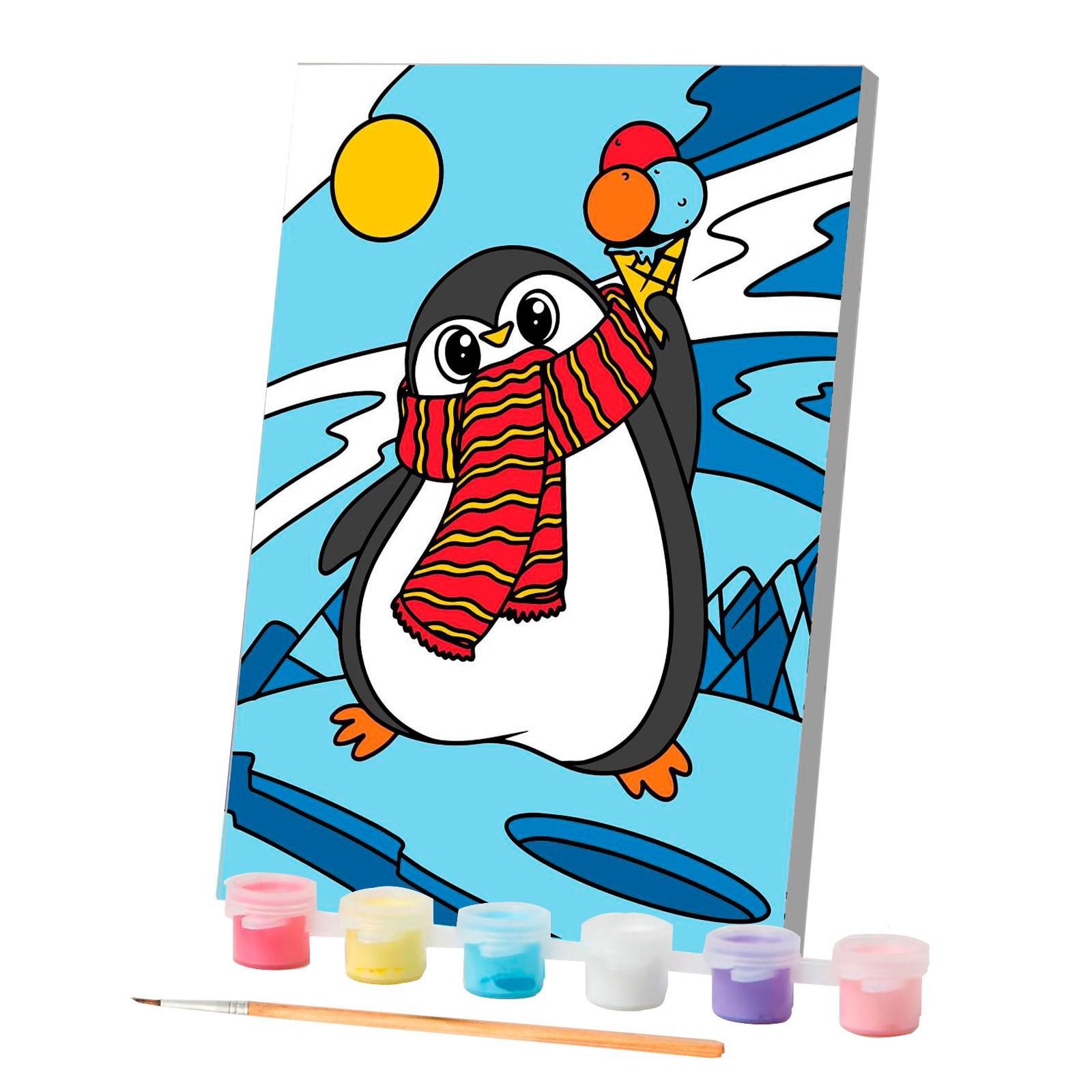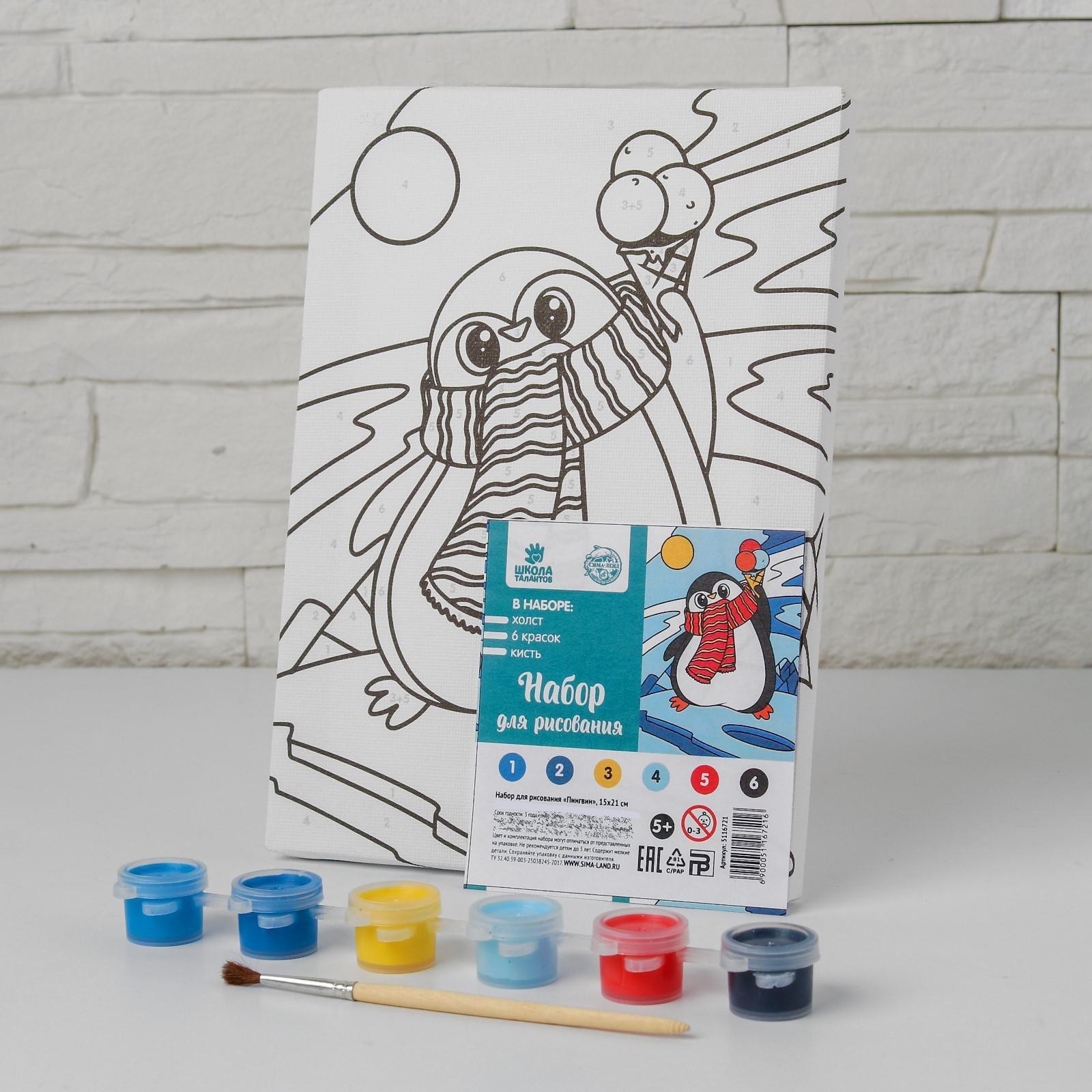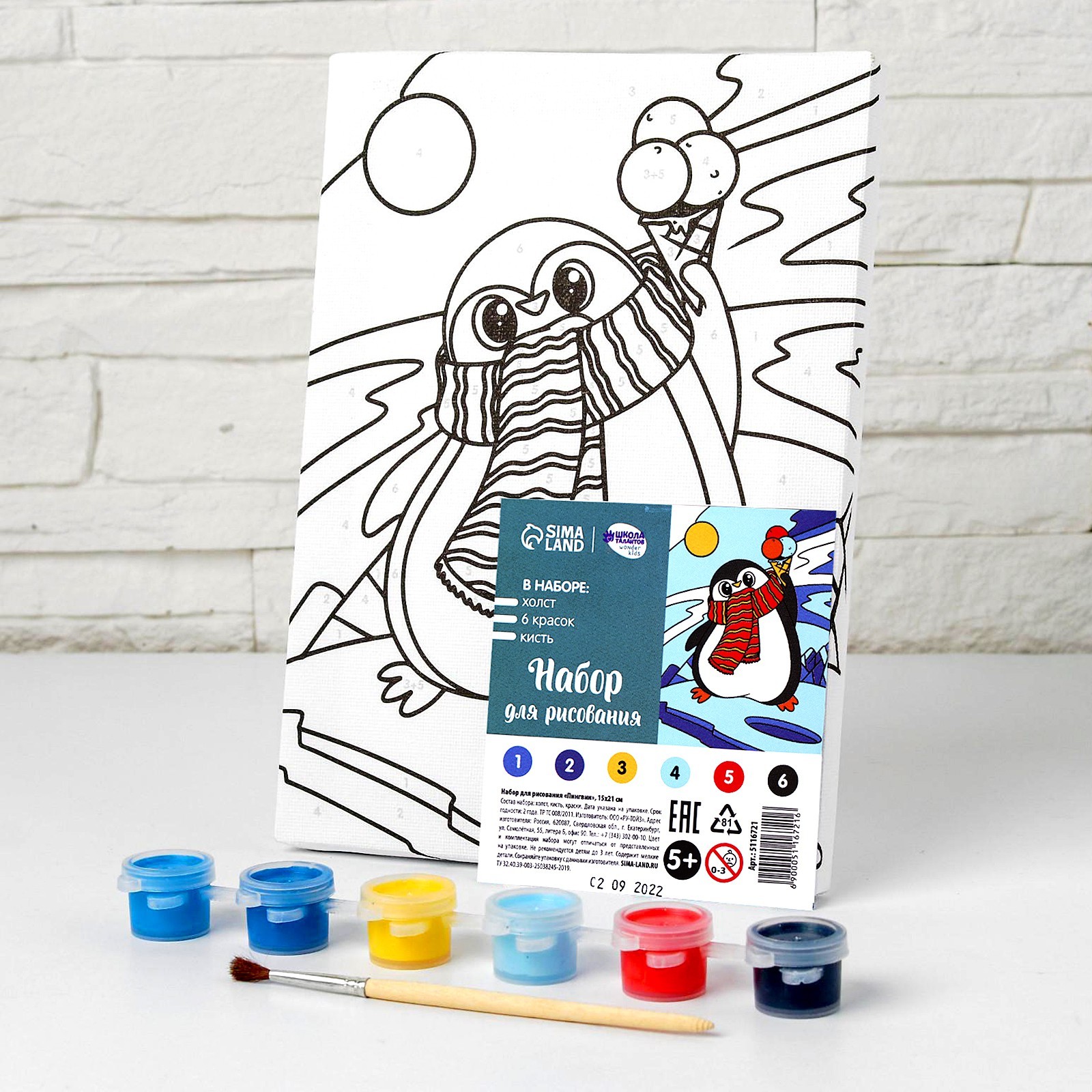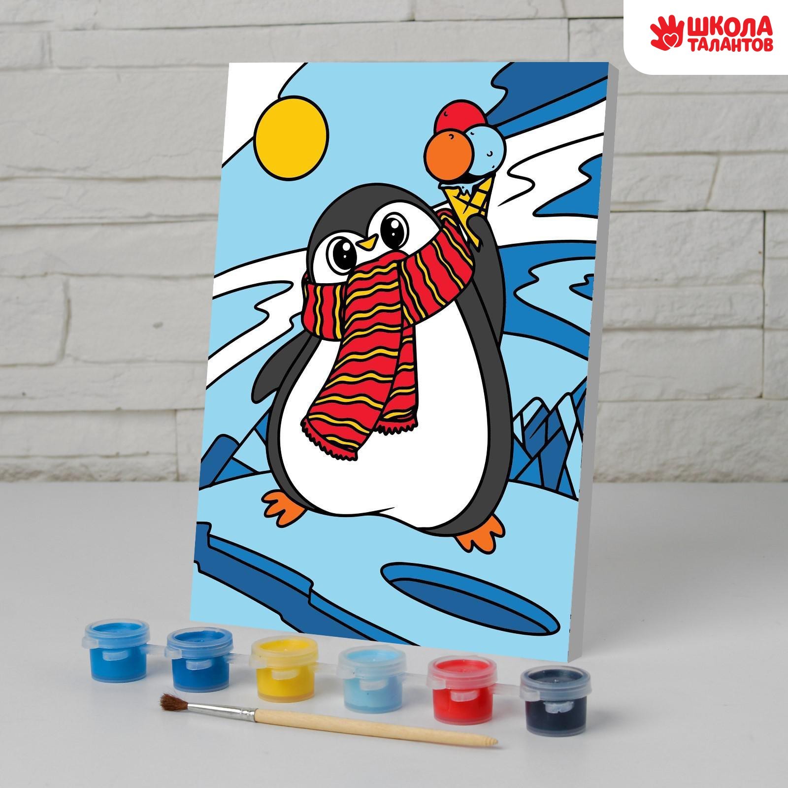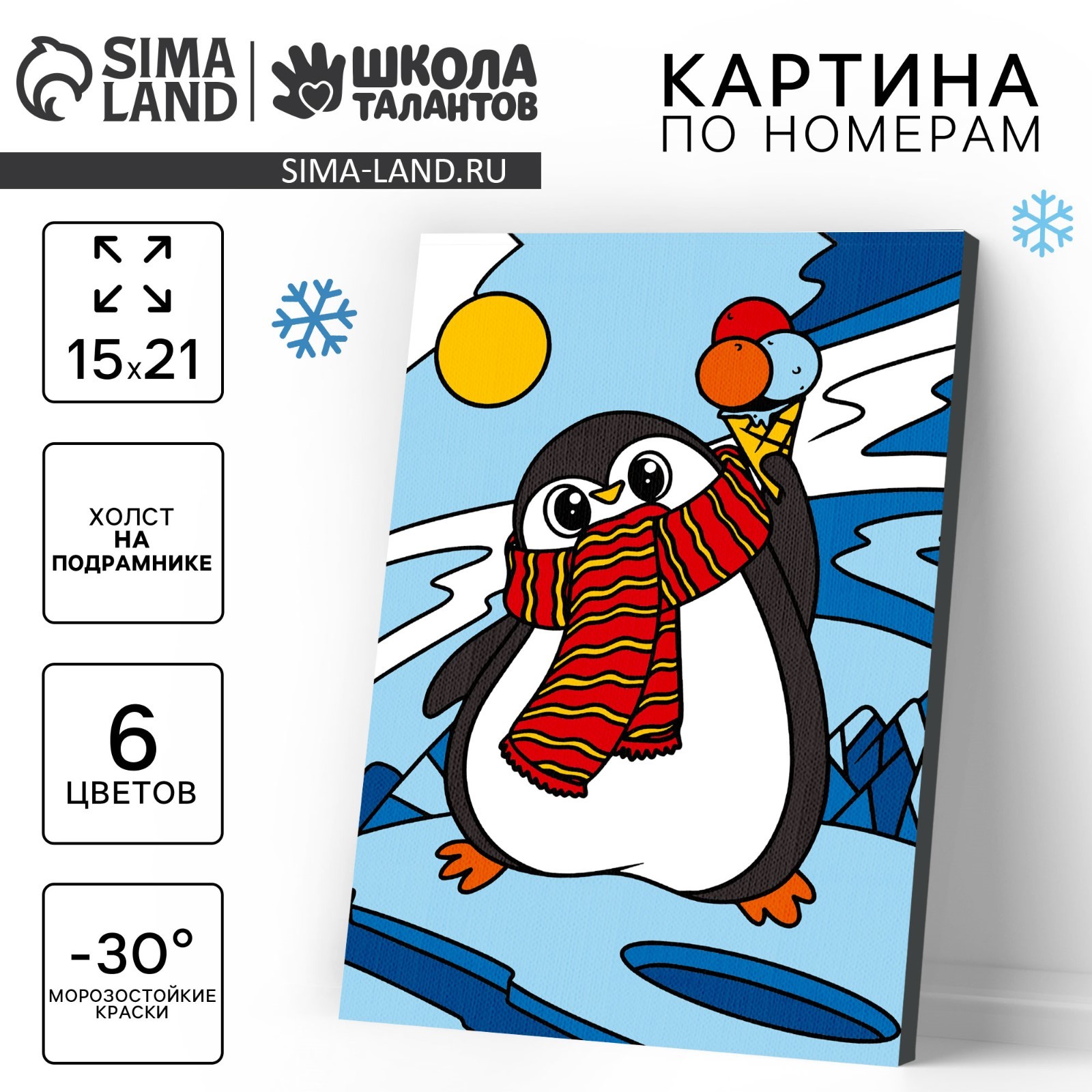 Картина по номерам на холсте с подрамником на новый год «пингвин», 21 15 см. Создаём картину с новогодним сюжетом своими руками!Подарите маленькому художнику картину по номерам, и он сразу почувствует приближение самого волшебного праздника! Рисунок представляет собой знакомую ребёнку раскраску. В каждом секторе рисунка есть цифра, которая обозначает цвет краски. Можете пользоваться подсказкой для раскрашивания, а можете вместе фантазировать и смешивать краски! Новогодняя картина по номерам украсит детскую комнату или станет оригинальным подарком близкому человеку. Для кого:Унисекс|Размер, см:21 х 15|Возраст:От 5 лет|Тематика:Детская|Тематика:Новогодняя|Символ года:Нет|Тематика праздника:Новый год|Ориентация изображения:Вертикально|Вид:Холст под роспись|Темпер. ограничение НЕ НИЖЕ :-30|Уровень сложности:Лёгкий|Комплектация набора:С красками|Комплектация набора:С кисточками|Страна:Россия  развернуть описание ▼