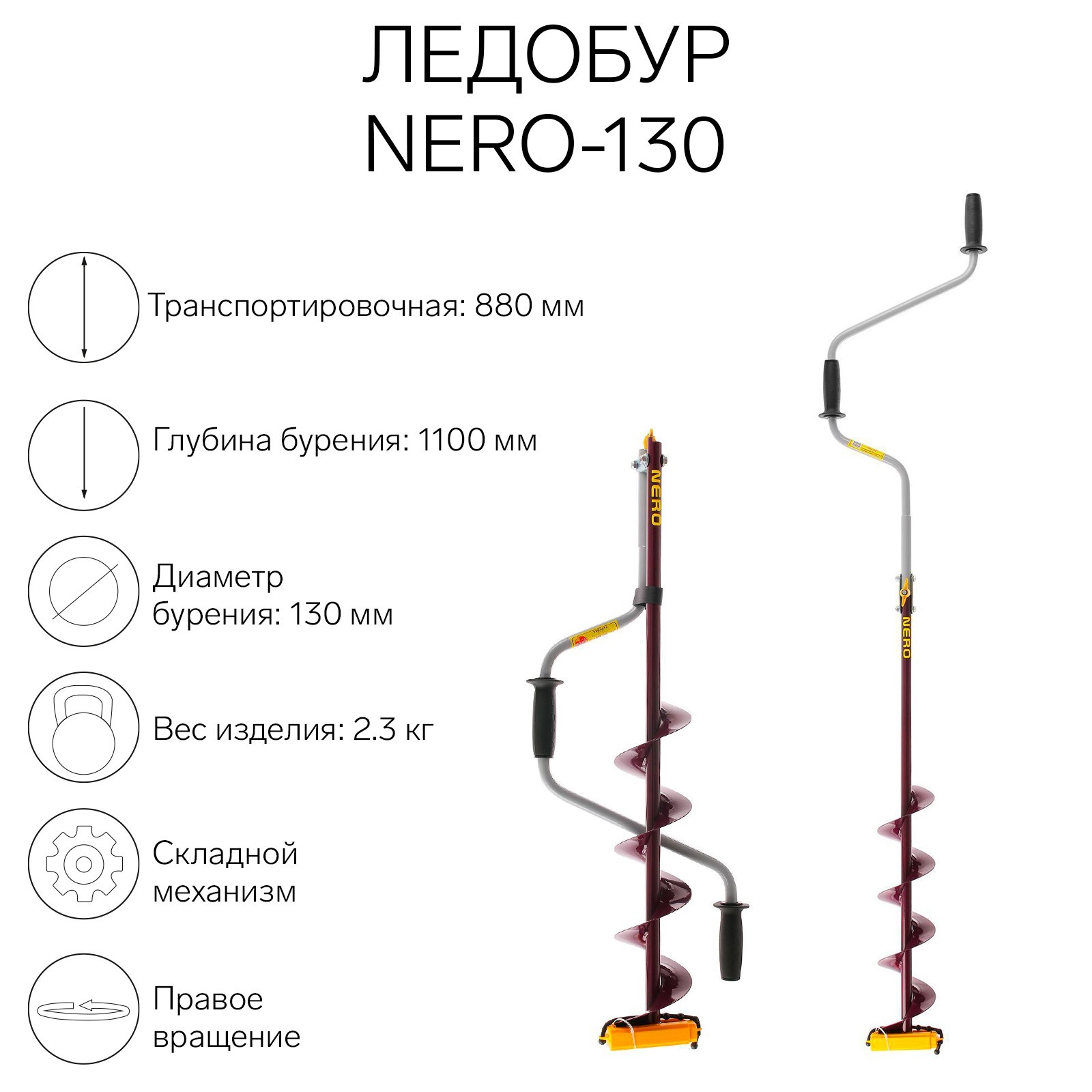 Ледобур (пв) Nero-130, L-шнека 0.5 м, L-транспортировочная 0.88 м, L-рабочая 1.1 м, 2.3 кг