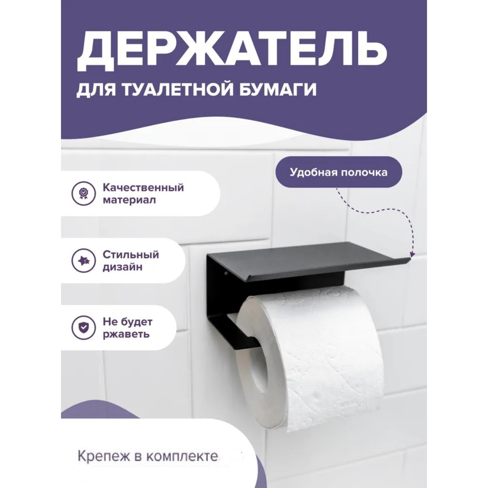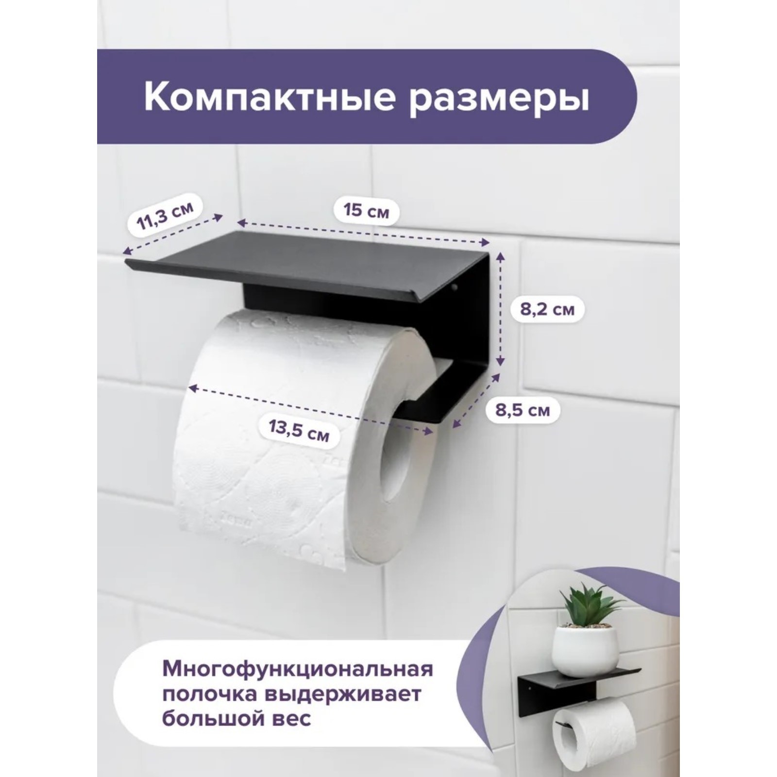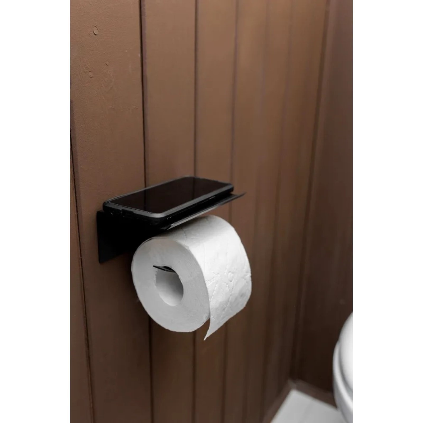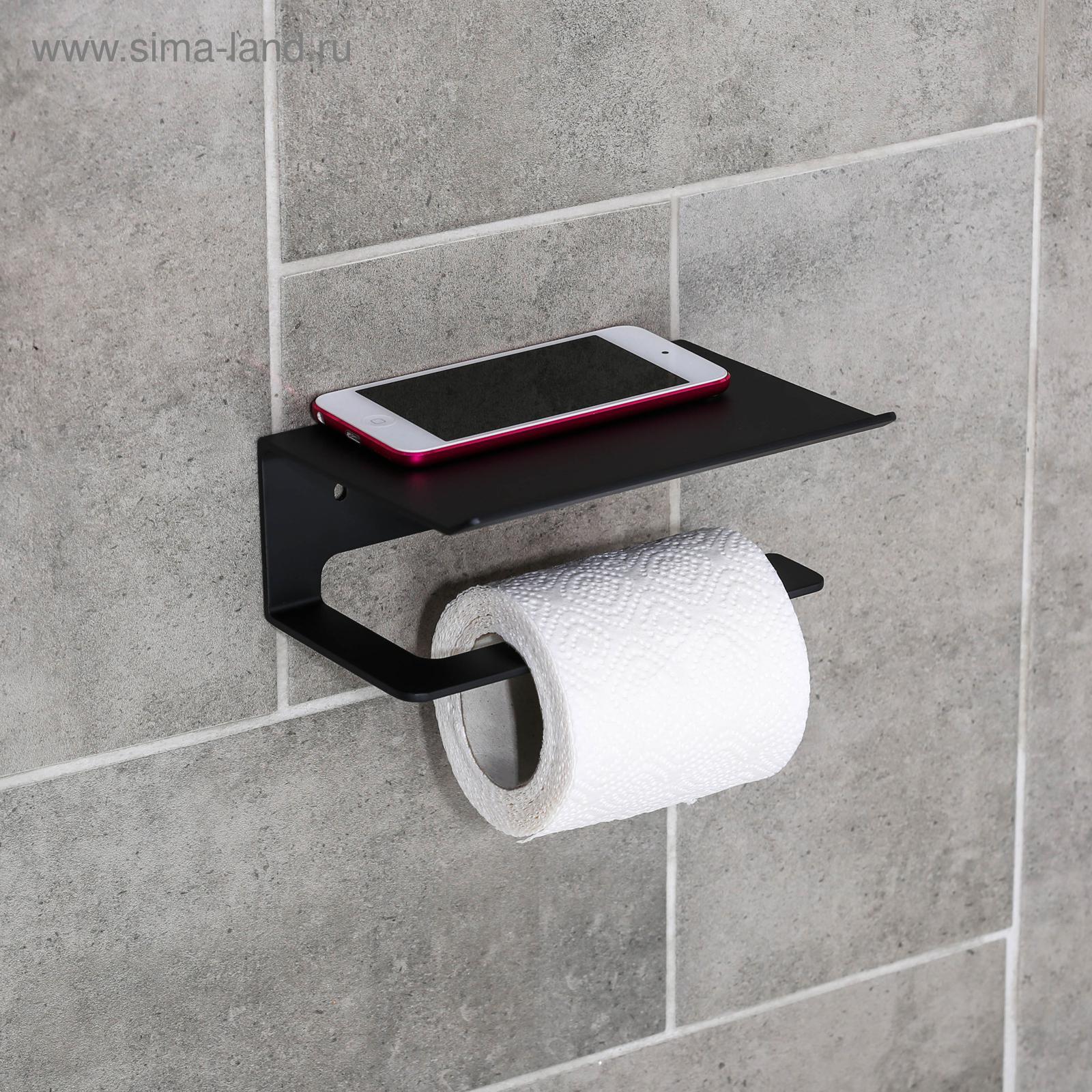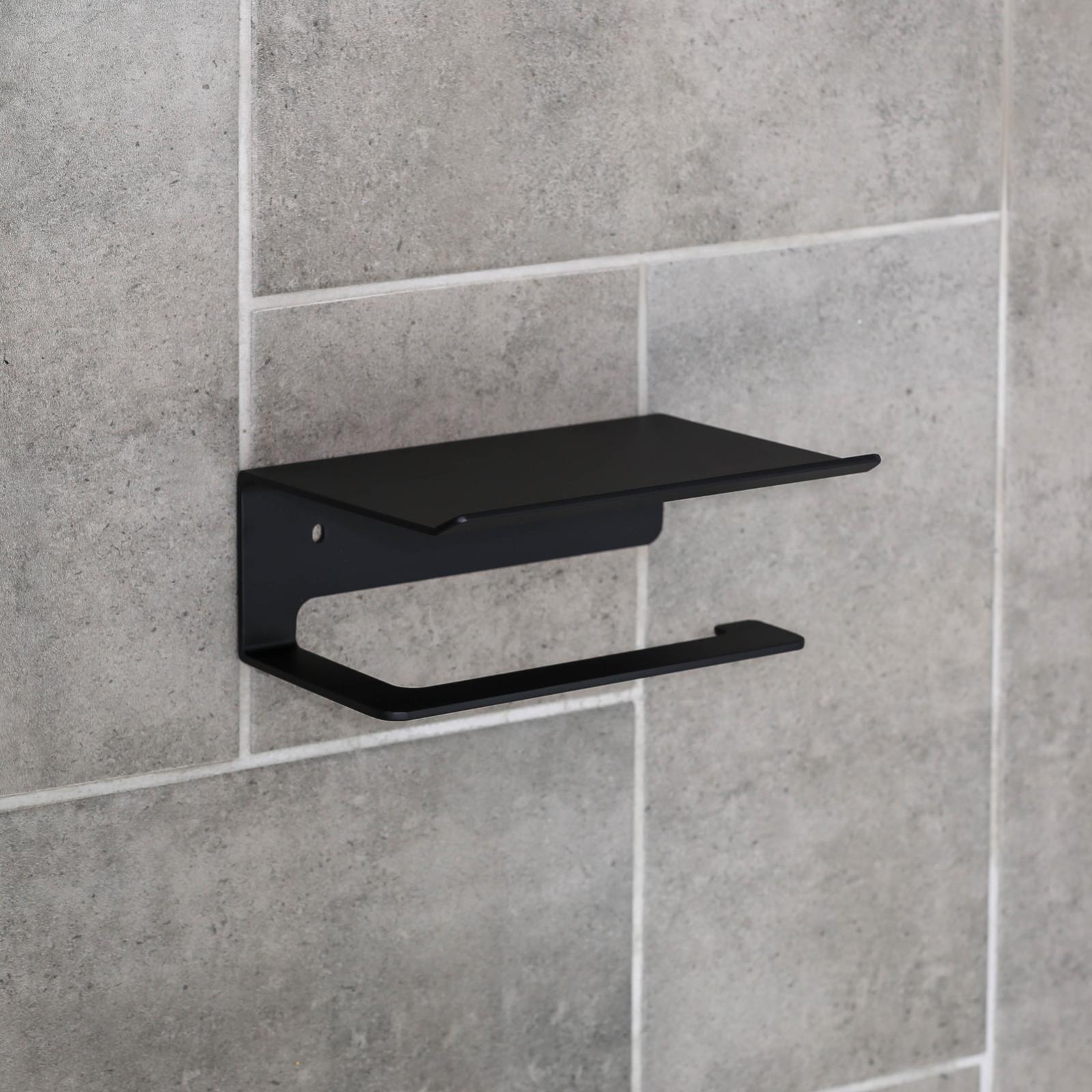 Держатель для туалетной бумаги с полочкой 6,5x16x11,5 см, цвет чёрный