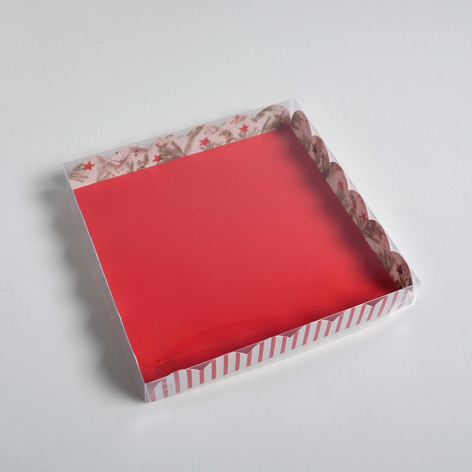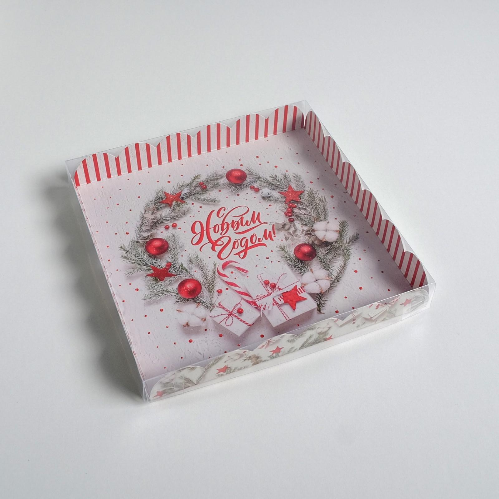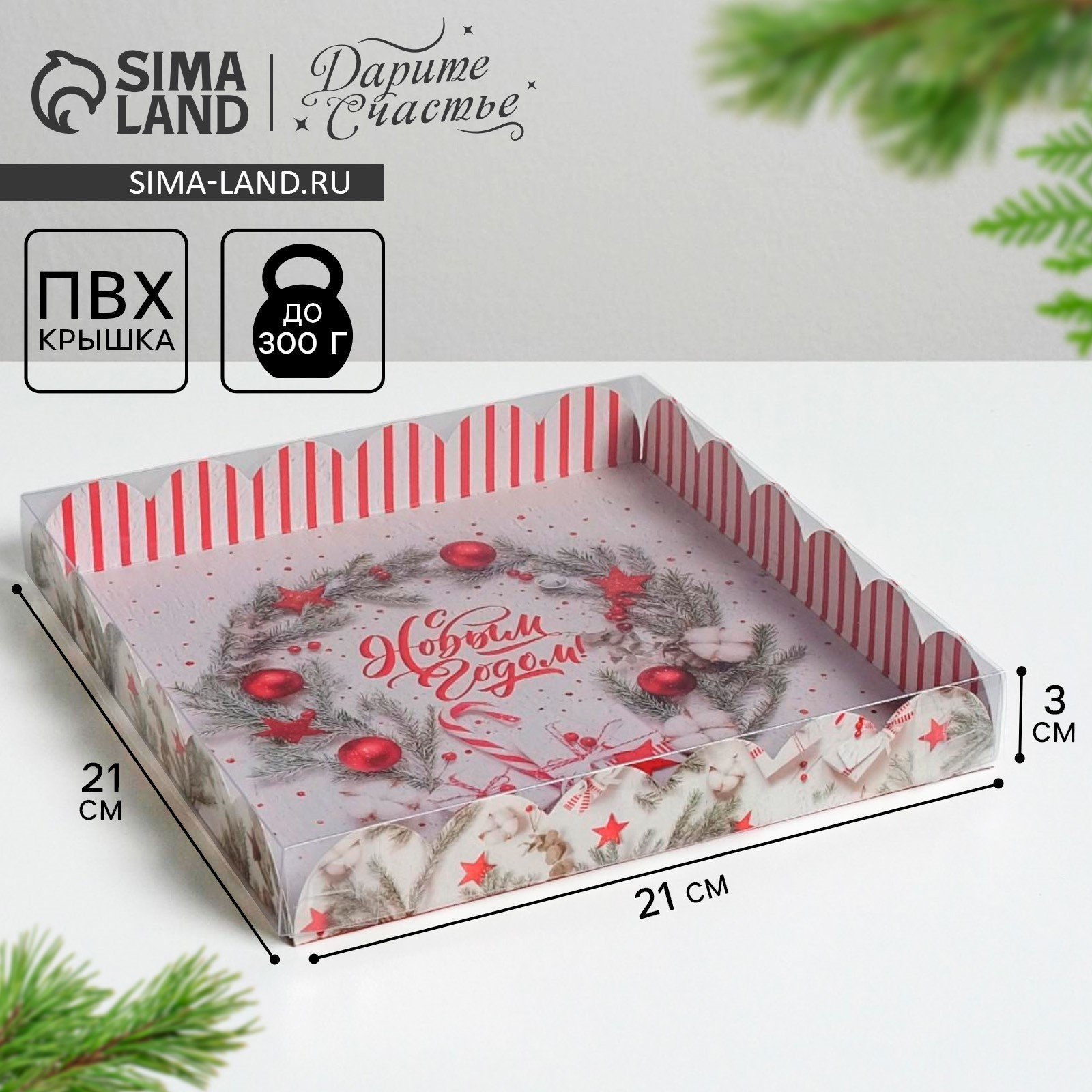 Коробка для кондитерских изделий с пластиковой крышкой «с новым годом!», 21 х 21 х 3 см. Вид упаковки:Для печенья|Вид упаковки:Универсальная|Цвет:Красный|Цвет:Белый|Форма:Квадратная|Плотность, г/м :280|Длина, см:21|Ширина, см:21|Высота, см:3|Допустимый вес вложения, г:300|Тематика:Растительный орнамент|Тематика:Зима|Тематика:Новогодняя|Символ года:Нет|Тематика праздника:Новый год|Материал:Картон|Материал:Пластик|Вид ручки:Без ручки|Вид:Кондитерские коробки|Вид еды:Для печенья|Страна:Китай  развернуть описание ▼