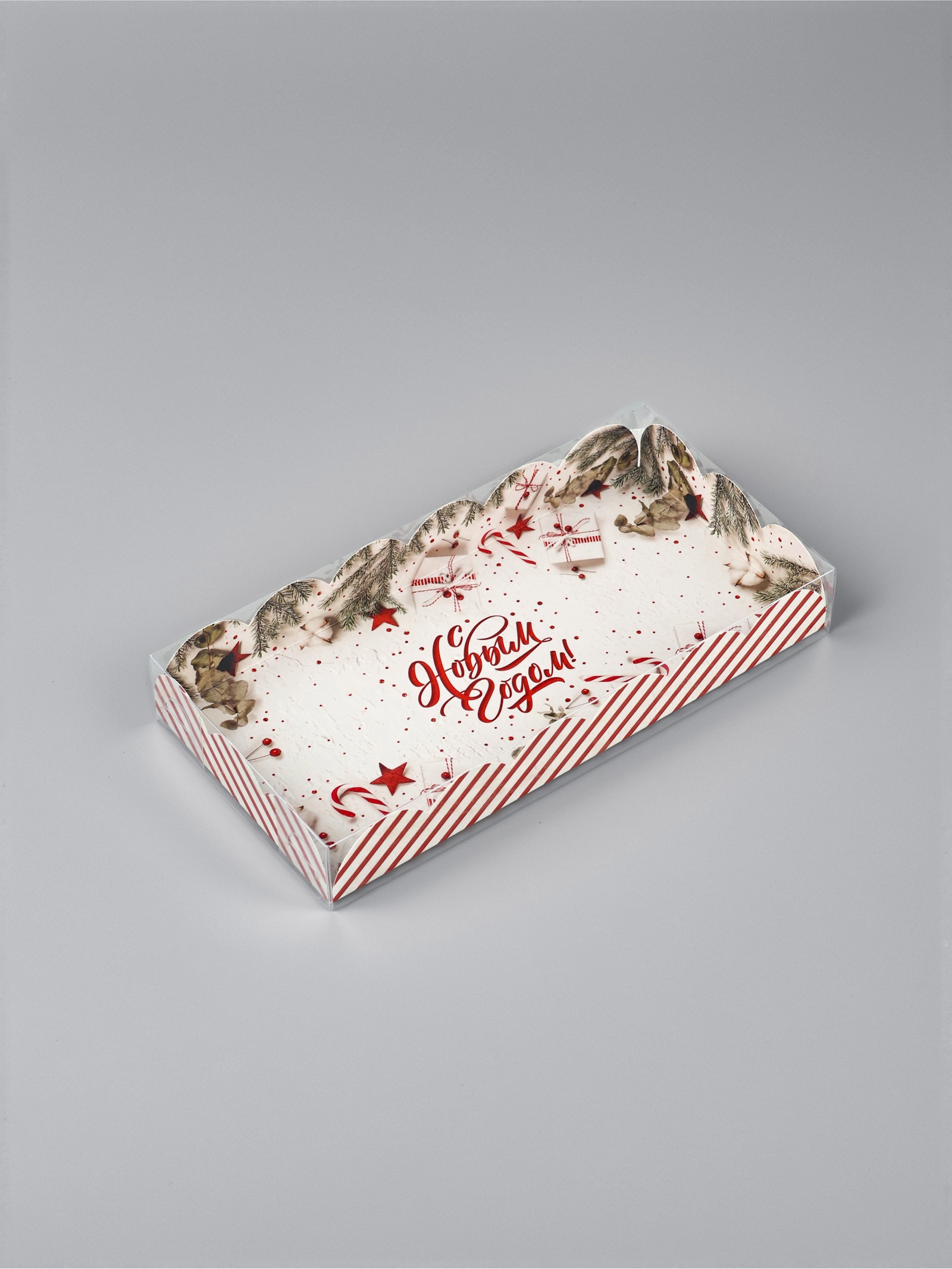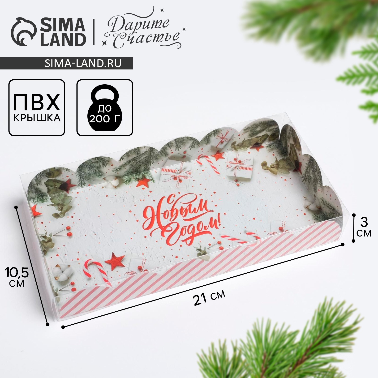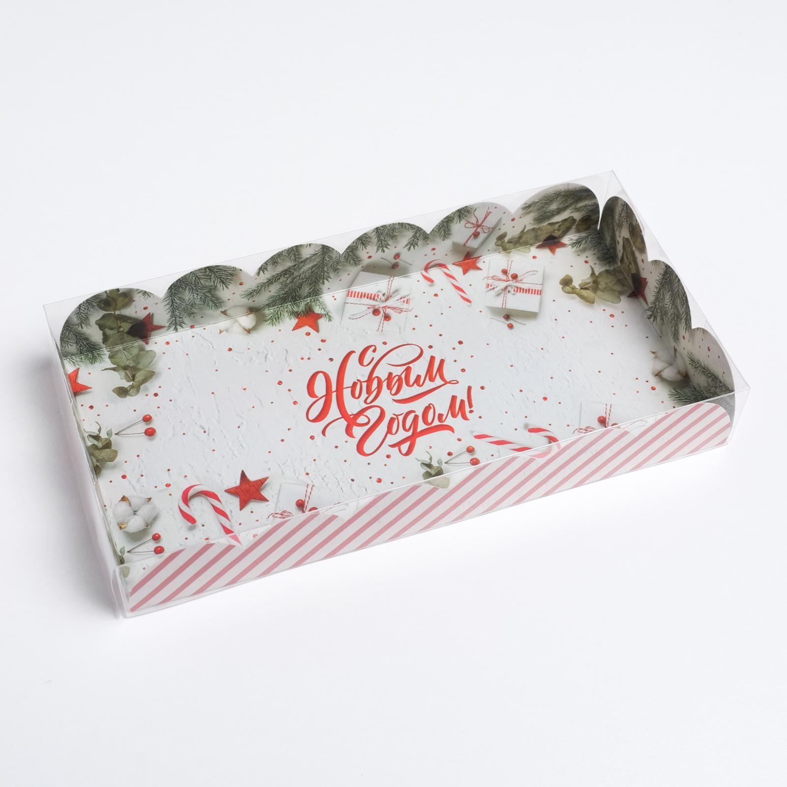 Коробка для кондитерских изделий с пластиковой крышкой «с новым годом!», 10.5 х 21 х 3 см. Вид упаковки:Для печенья|Вид упаковки:Универсальная|Цвет:Белый|Цвет:Красный|Форма:Прямоугольная|Плотность, г/м :280|Длина, см:21|Ширина, см:10.5|Высота, см:3|Допустимый вес вложения, г:200|Тематика:Новогодняя|Тематика:Растительный орнамент|Символ года:Нет|Тематика праздника:Новый год|Материал:Пластик|Материал:Картон|Вид:Кондитерские коробки|Вид еды:Для печенья|Страна:Китай  развернуть описание ▼