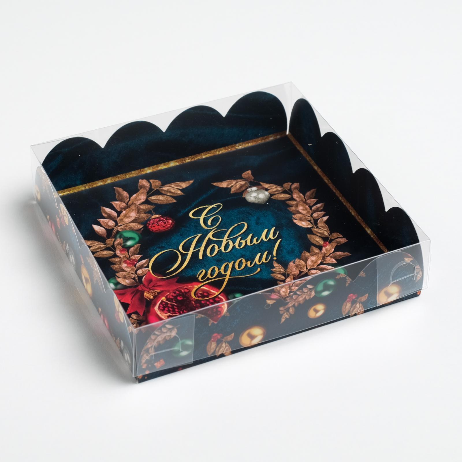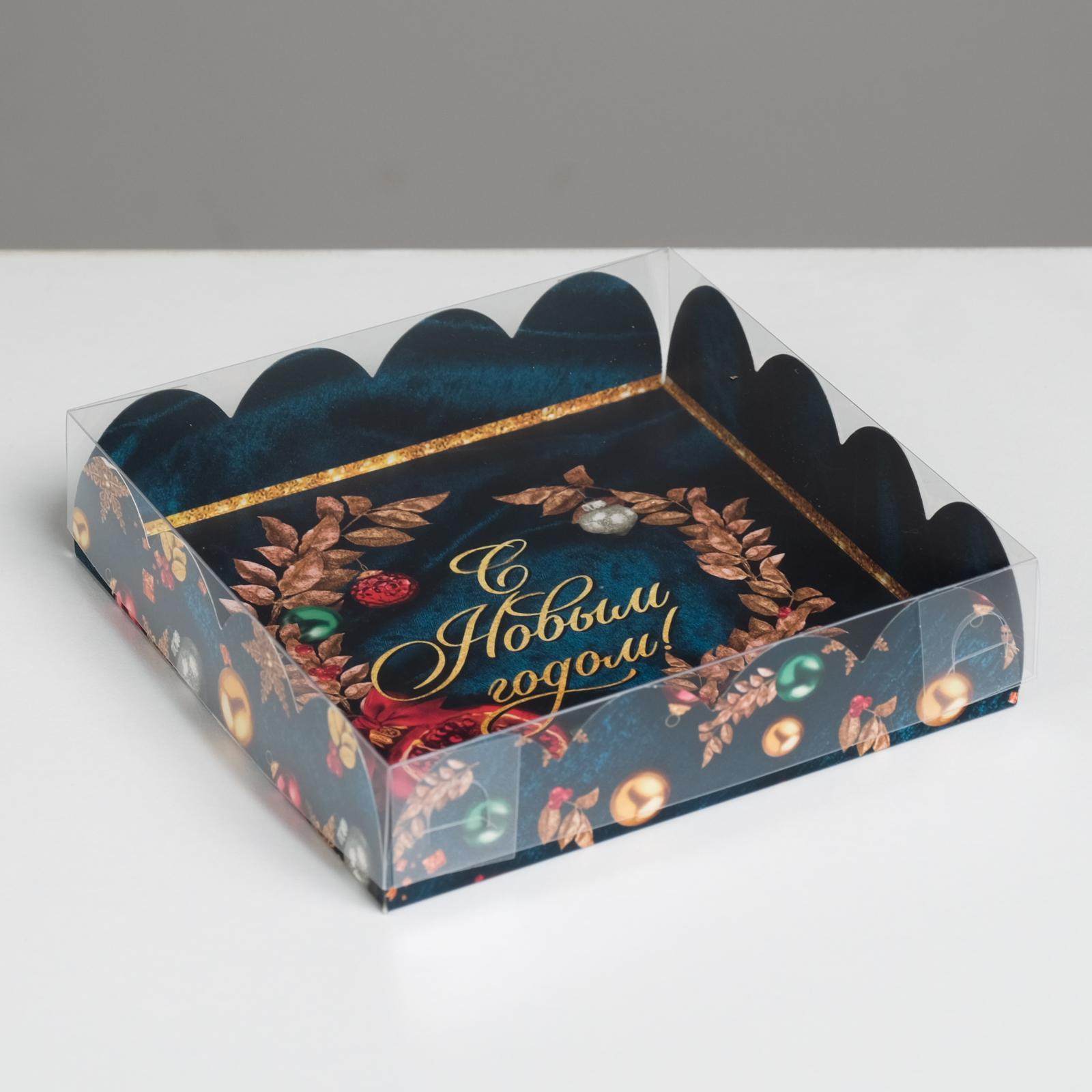 Коробка для кондитерских изделий с пластиковой крышкой «с новым годом!», 13 х 13 х 3 см. Вид упаковки:Для печенья|Вид упаковки:Универсальная|Цвет:Золотистый|Цвет:Бирюзовый|Форма:Квадратная|Плотность, г/м :280|Длина, см:13|Ширина, см:13|Высота, см:3|Допустимый вес вложения, г:200|Тематика:Зима|Тематика:Новогодняя|Тематика:Растительный орнамент|Символ года:Нет|Тематика праздника:Новый год|Материал:Картон|Материал:Пластик|Вид:Кондитерские коробки|Вид еды:Для печенья|Страна:Китай  развернуть описание ▼