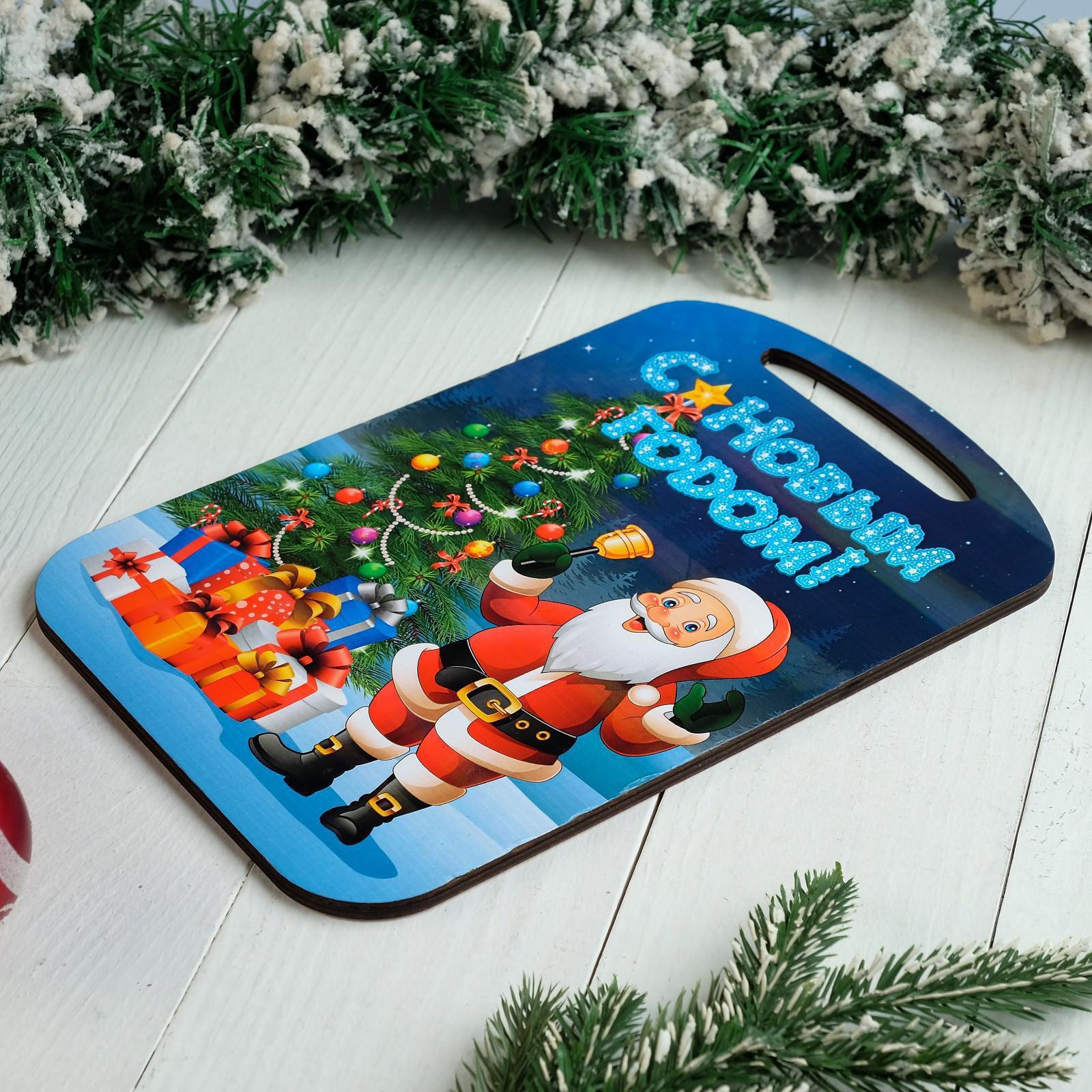 Доска разделочная "новогодняя. с новым годом! дед мороз готов", цветная, 27х18 см