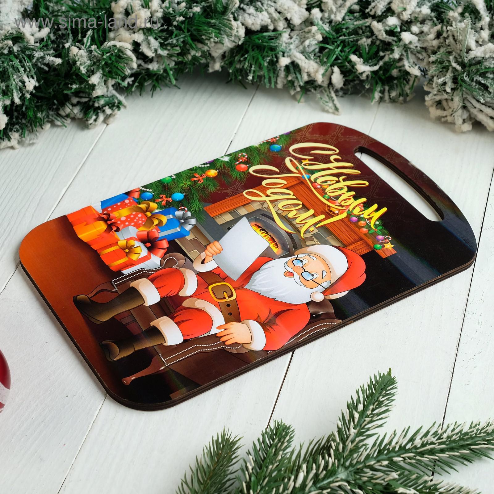 Доска разделочная "новогодняя. с новым годом! дед мороз читает сказку", цветная, 27х18 см