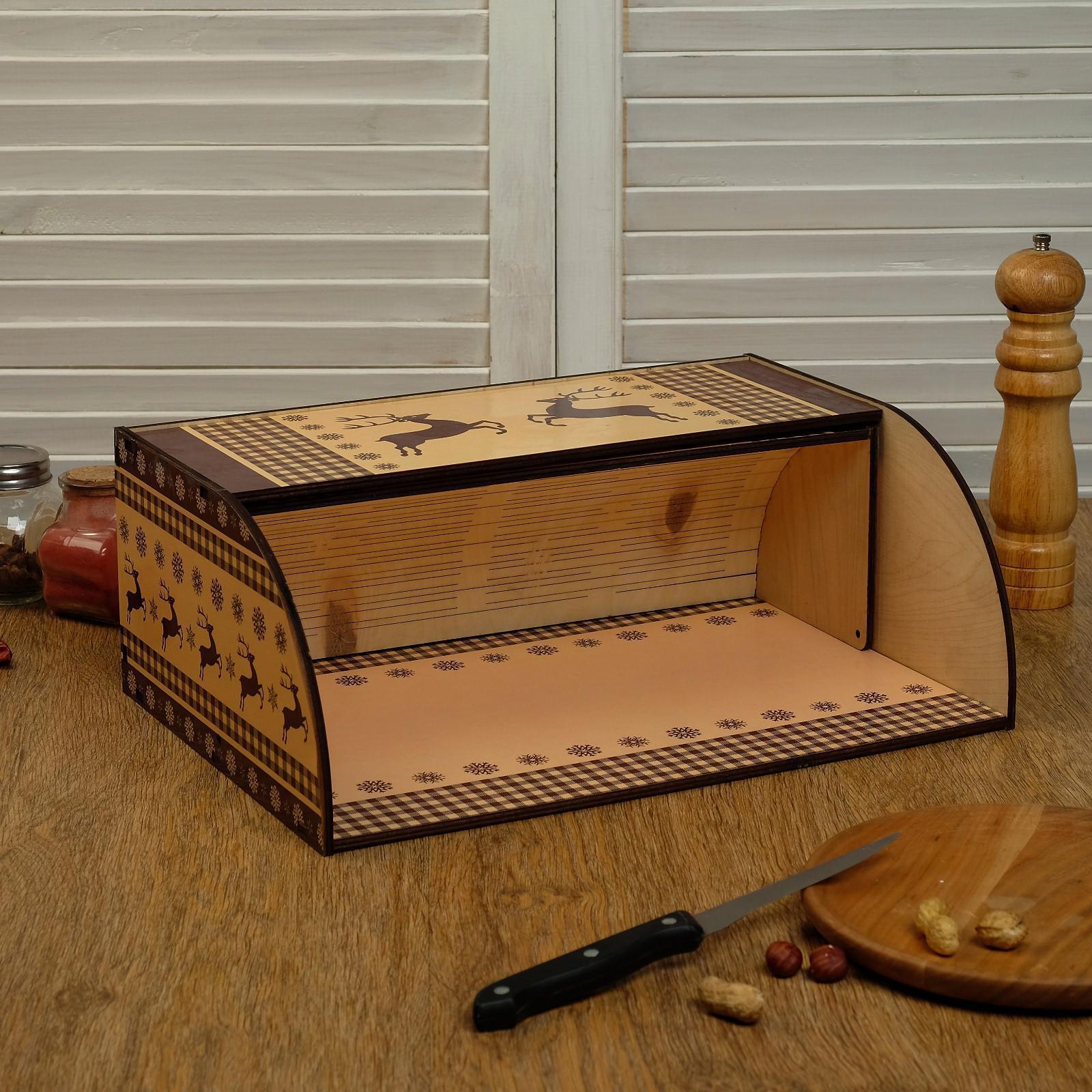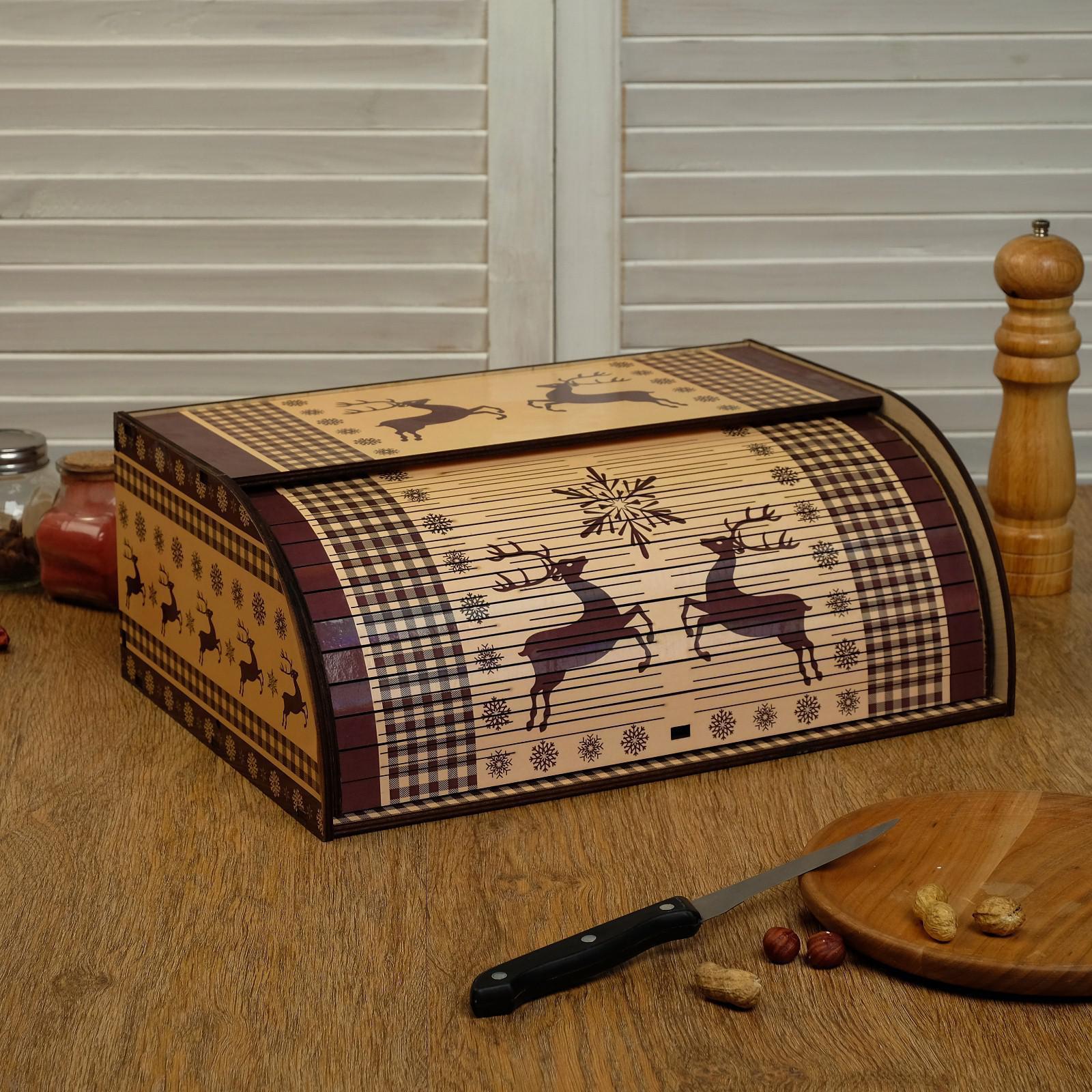 Хлебница деревянная "орнамент с оленями", цветная, 38х26х14 см