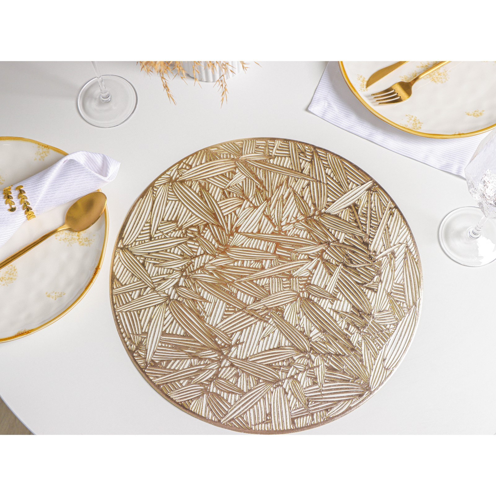 Набор салфеток сервировочных на стол доляна «листья», D=38 см, 4 шт, цвет золотой