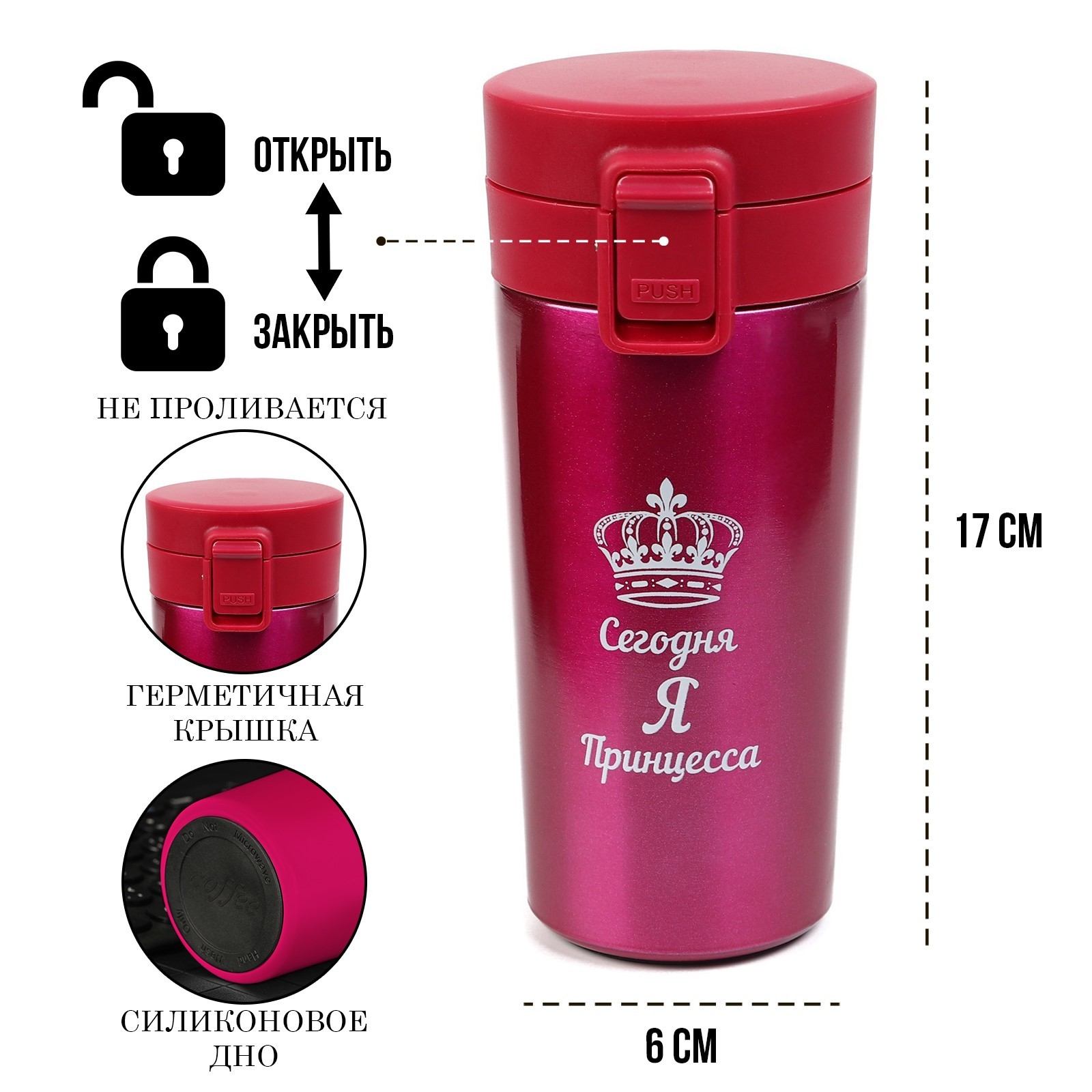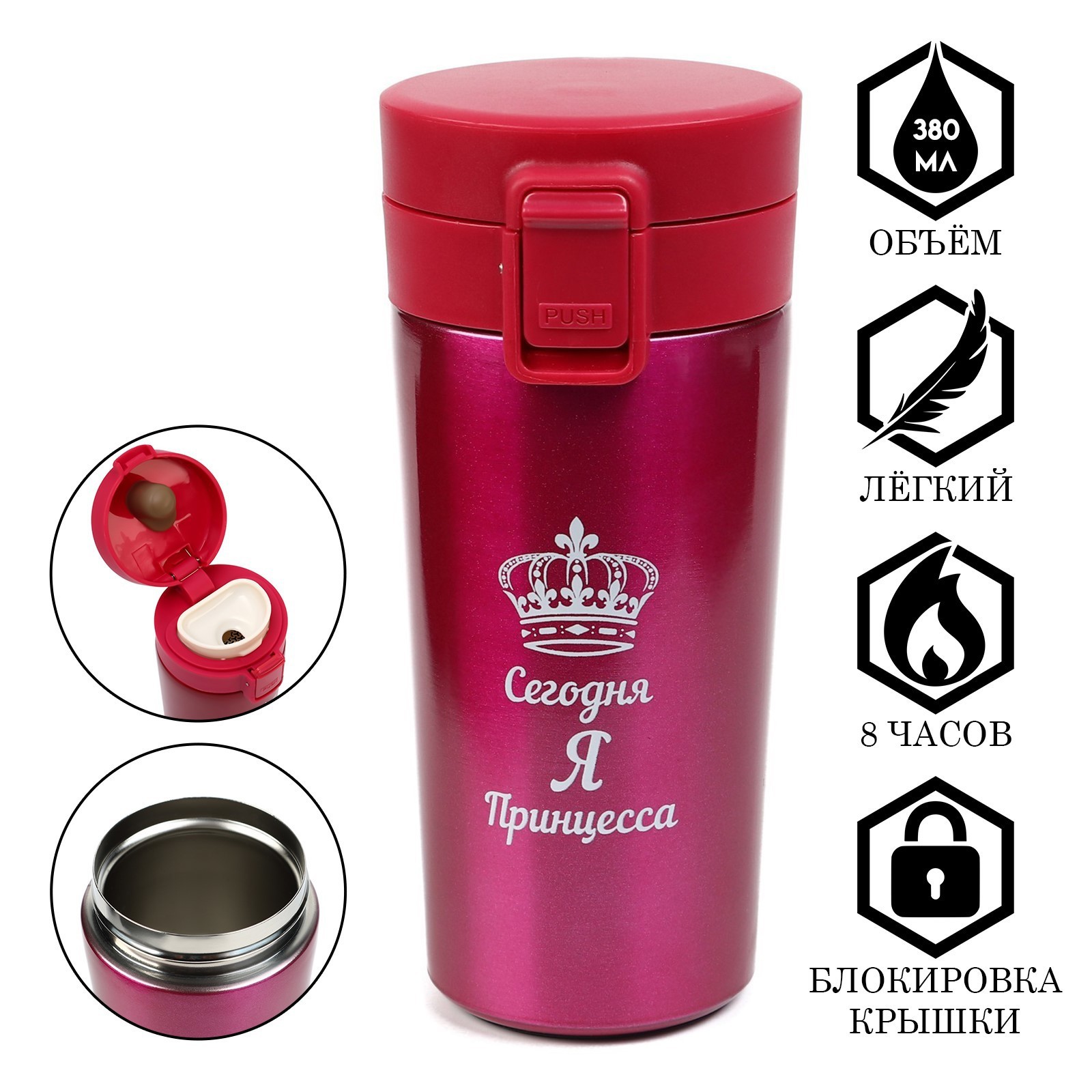 Термокружка, 380 мл, Style "мастер к. сегодня я принцесса", сохраняет тепло 8 ч, с ситечком