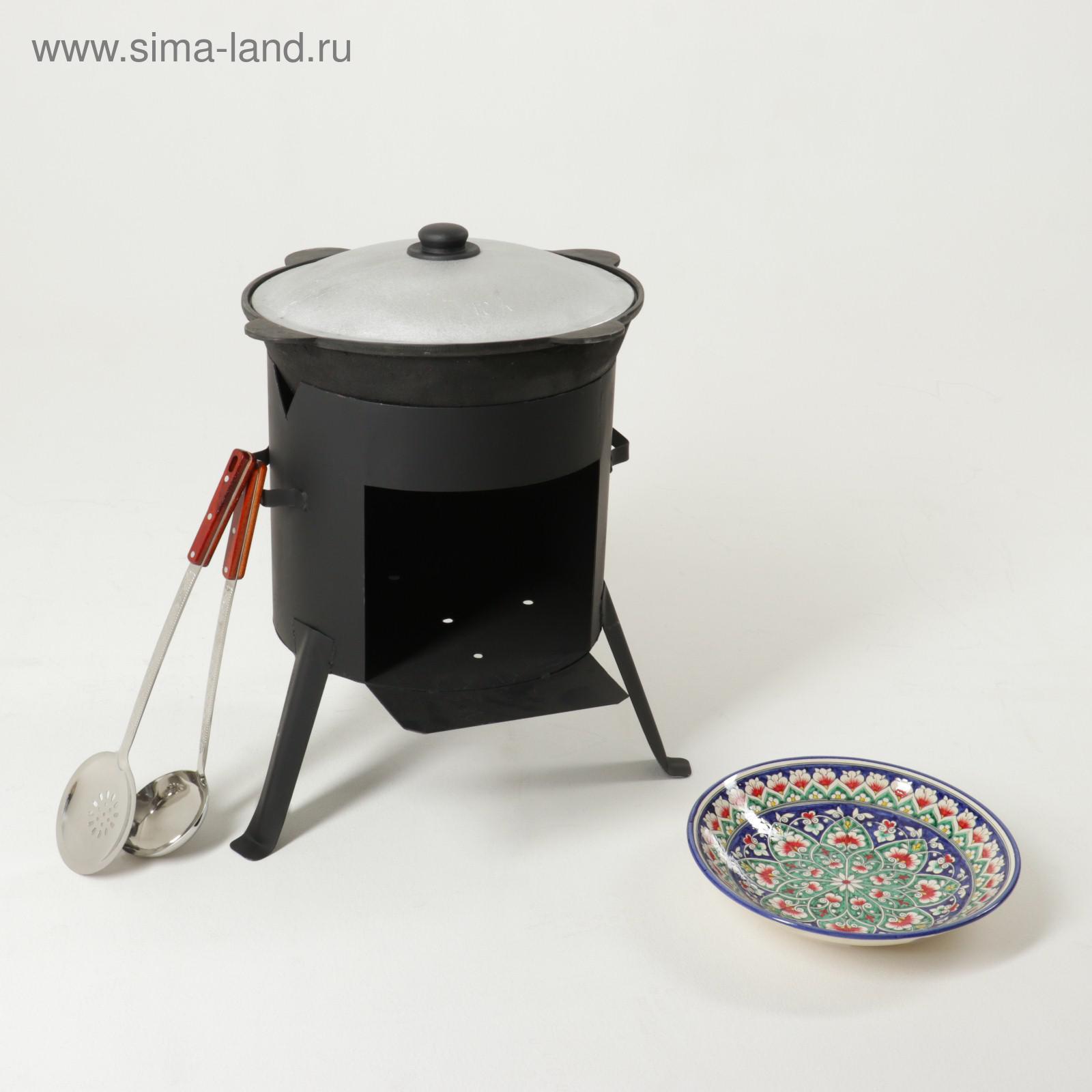 Набор для плова: казан 12л, печь под казан, шумовка 47см, поварешка 47см, ляган 33см