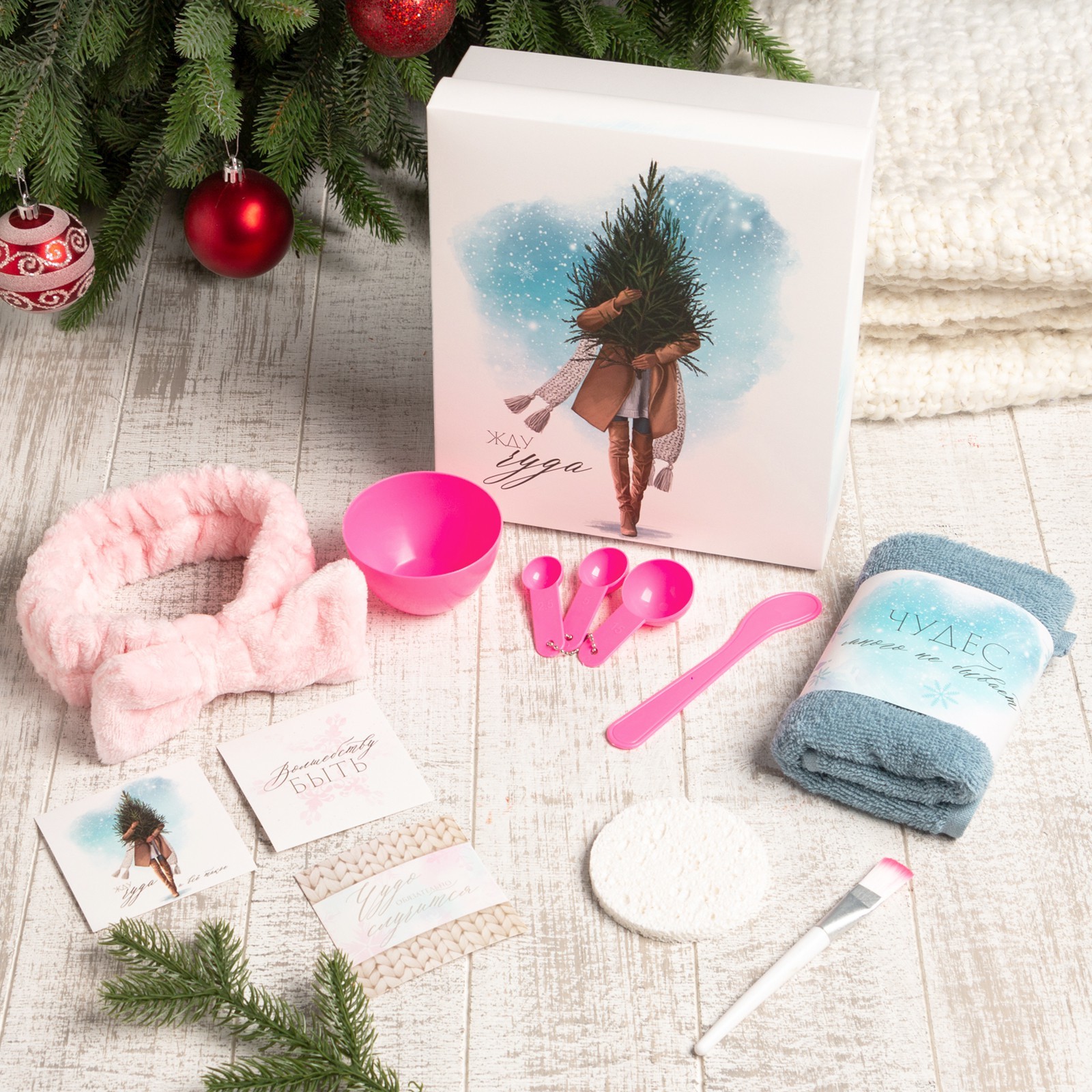 Набор подарочный новогодний жду чудо полотенце и аксессуары (4 предмета). Набор:Да|Цвет:Розовый|Цвет:Голубой|Для кого:Для женщины|Для кого:Для девочки|Ткань:Махра|Плотность, г/м :340|Размер, см:30 х 60|В наборе, шт.:4|Вид упаковки:Подарочная коробка|Символ года:Нет|Тематика праздника:Новый год|Адресат:Без адресата|Возраст:Любой|Рекомендации по уходу:Бережный режим глажки|Рекомендации по уходу:Стирка при 40 °С|Рекомендации по уходу:Не отбеливать|Назначение полотенец:Для рук|Состав ткани:Хлопок|Составляющие набора:Набор мисок|Составляющие набора:Декор|Составляющие набора:Набор мерных ложек|Составляющие набора:Кисть|Составляющие набора:Спонж|Составляющие набора:Полотенце|Составляющие набора:Открытка|Составляющие набора:Повязка|Возраст:Для взрослых|В подарочной упаковке:Да|Стиль:Шебби-шик|Страна:Россия  развернуть описание ▼